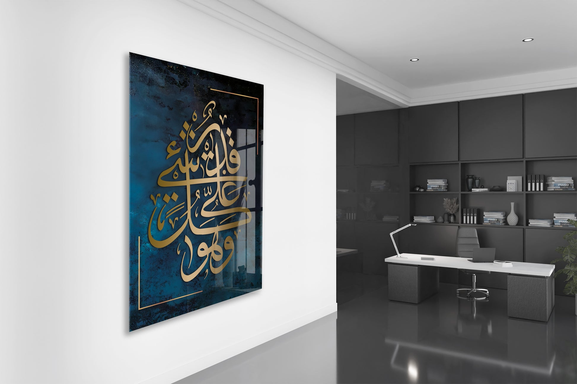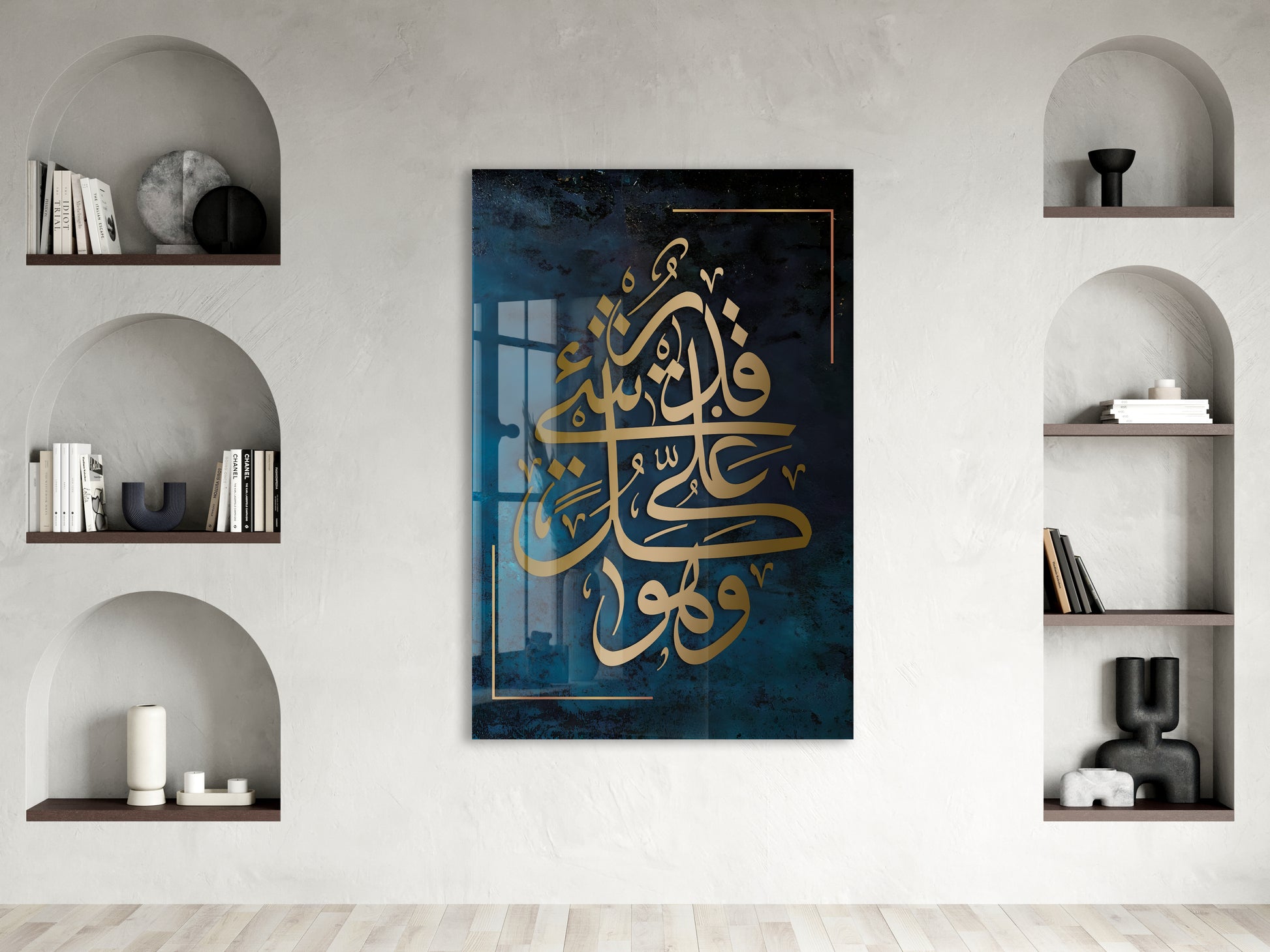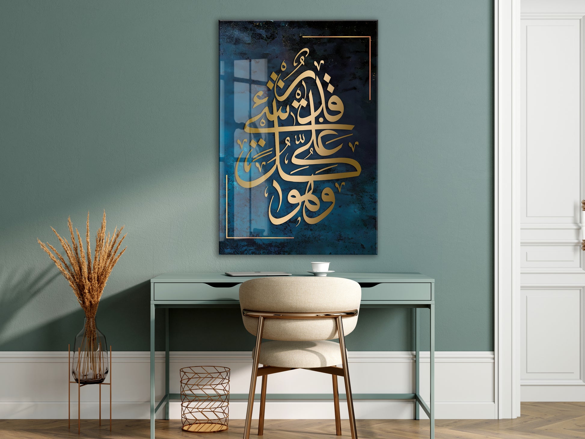 Allah Her Şeye Kadirdir Yazılı İslami Cam Tablo- PeonyDini060