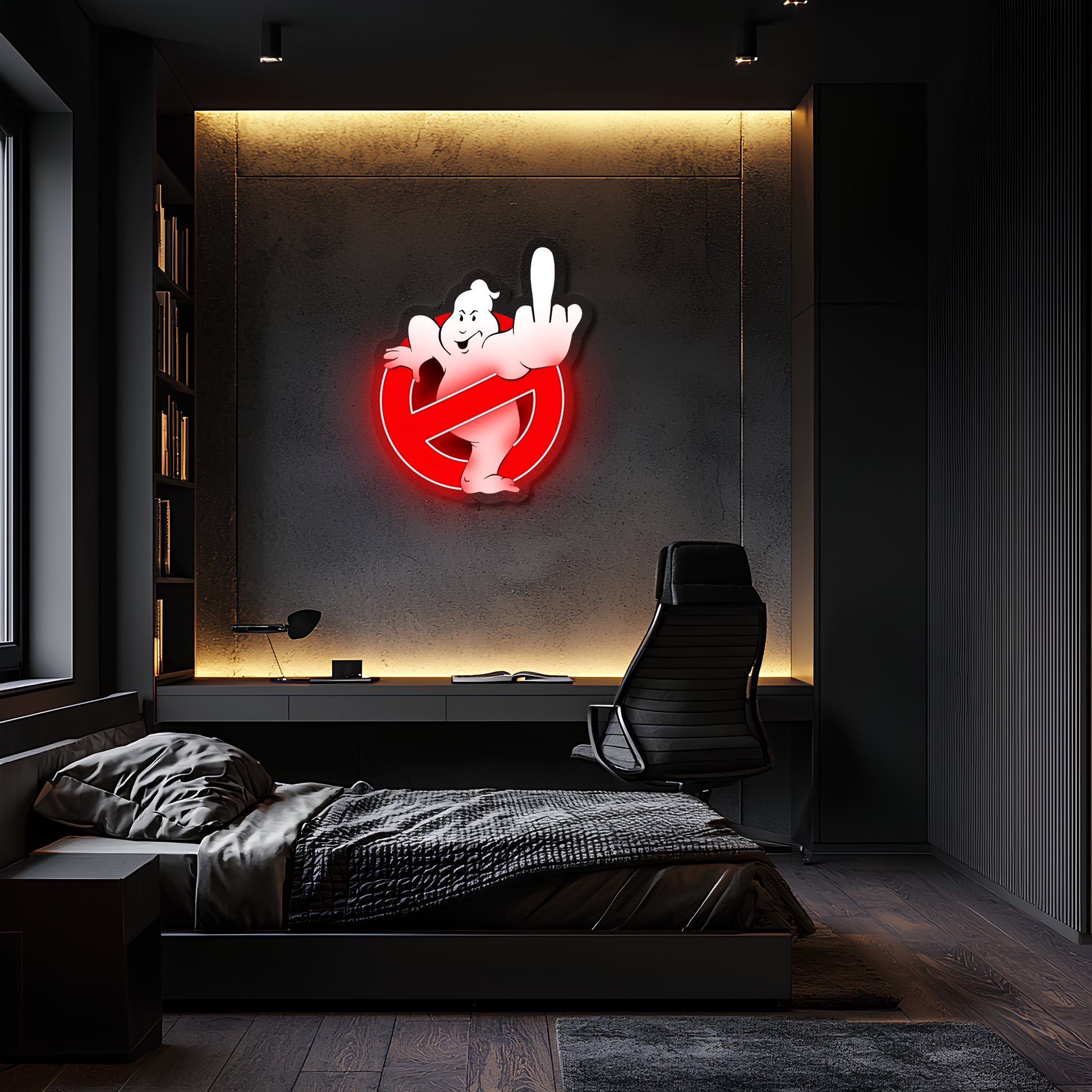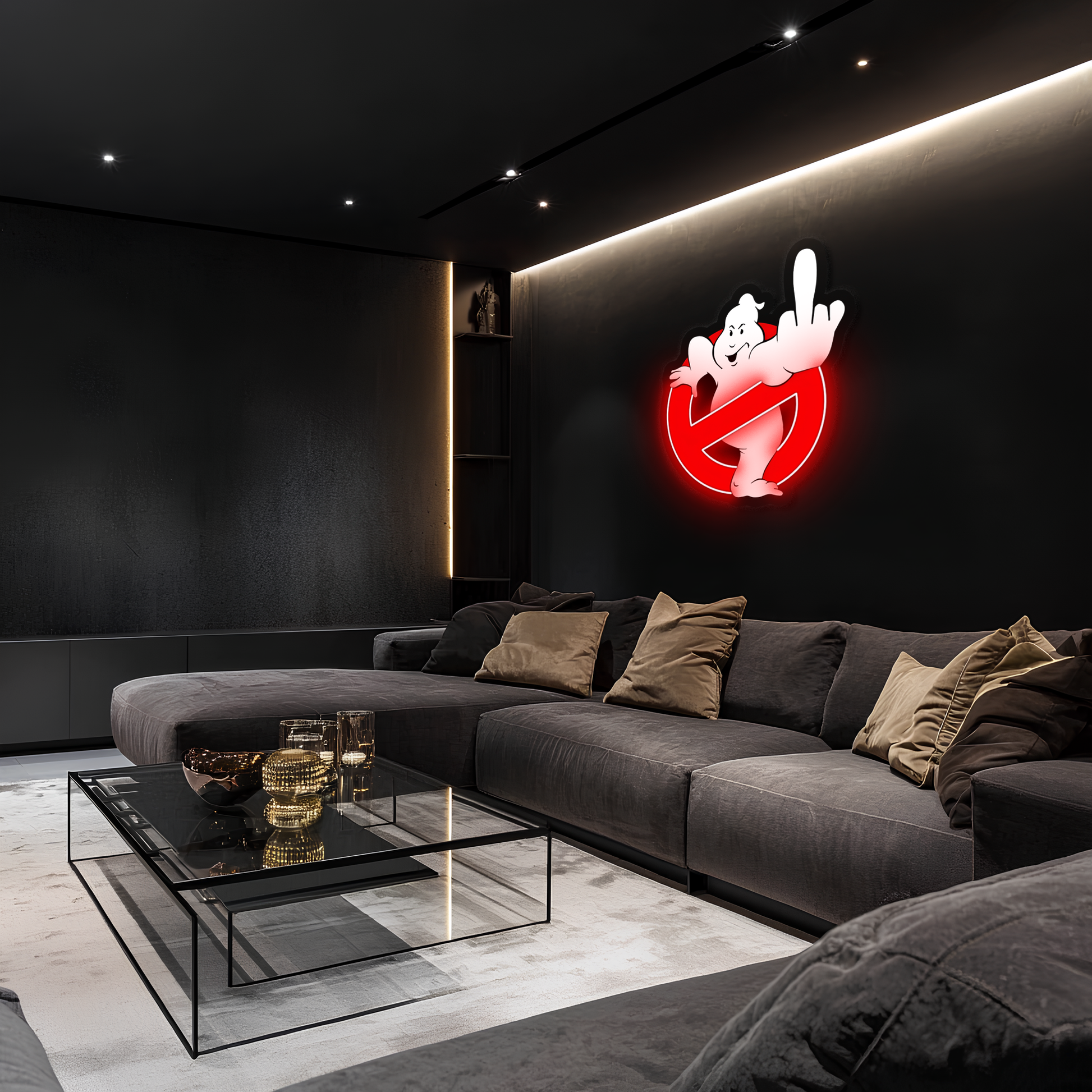 Bu Retro Hayalet Neon Duvar Dekoru, efsanevi 80’ler atmosferini modern bir parodi dokunuşuyla evinize taşır.