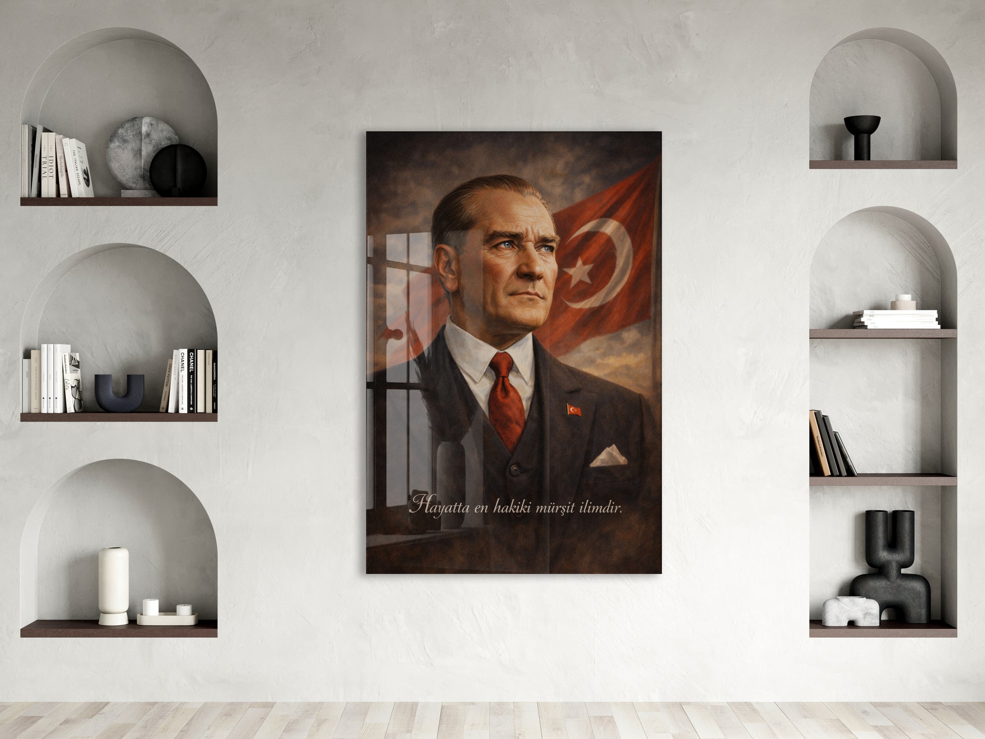 Hayatta En Hakiki Mürşit İlimdir , Mustafa Kemal Atatürk Cam Tablo- PeonyAta001