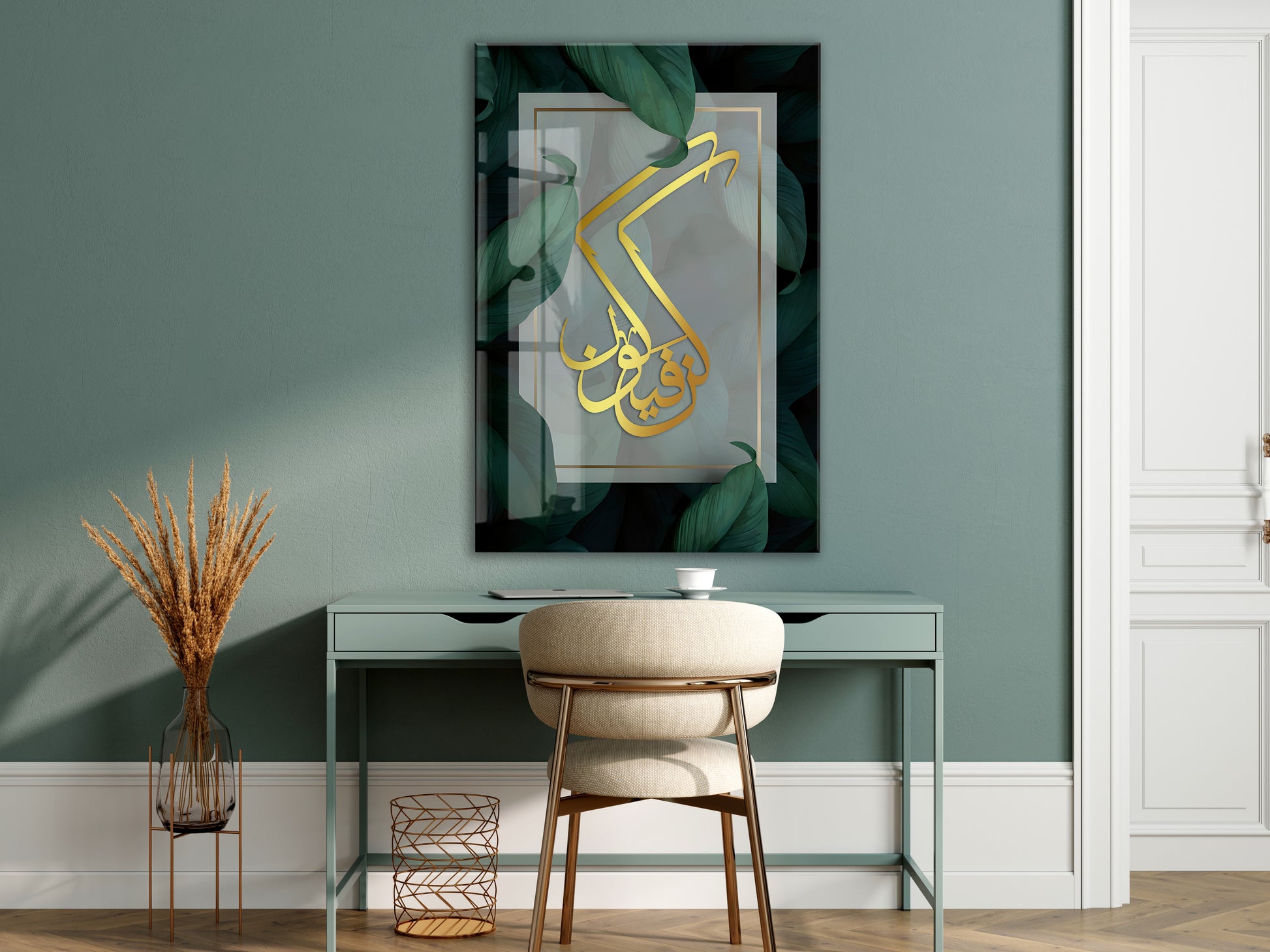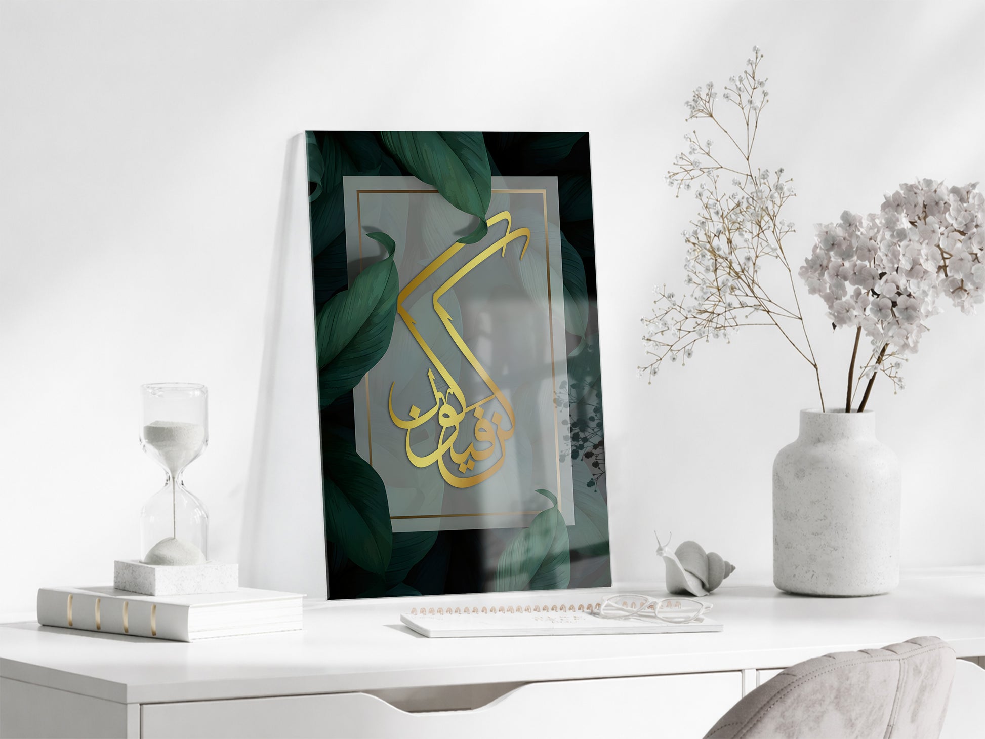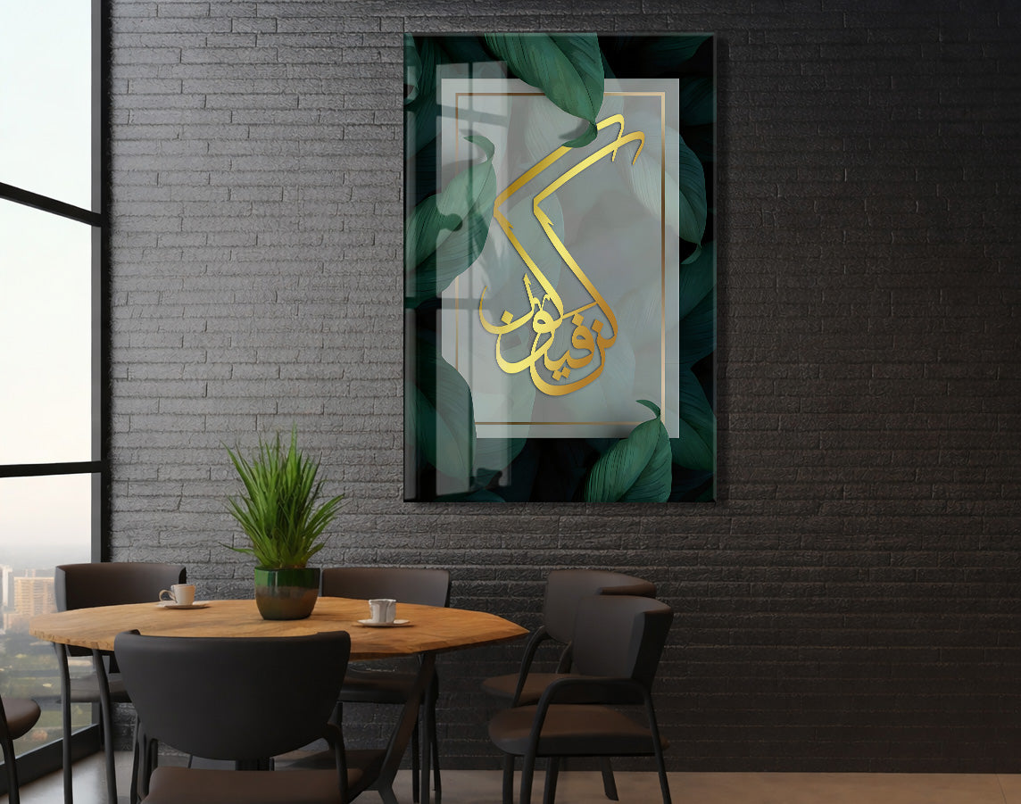 Künfe Yekün Yazılı İslami Cam Tablo- PeonyDini035