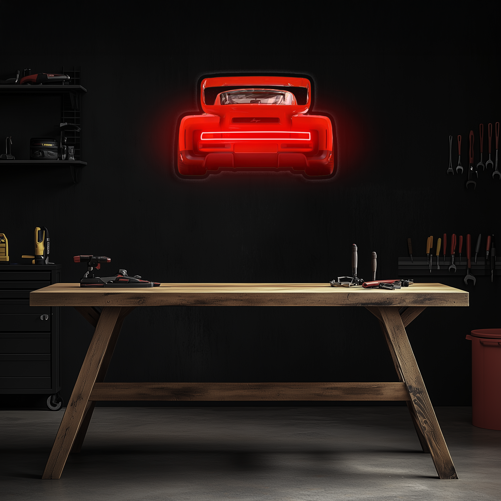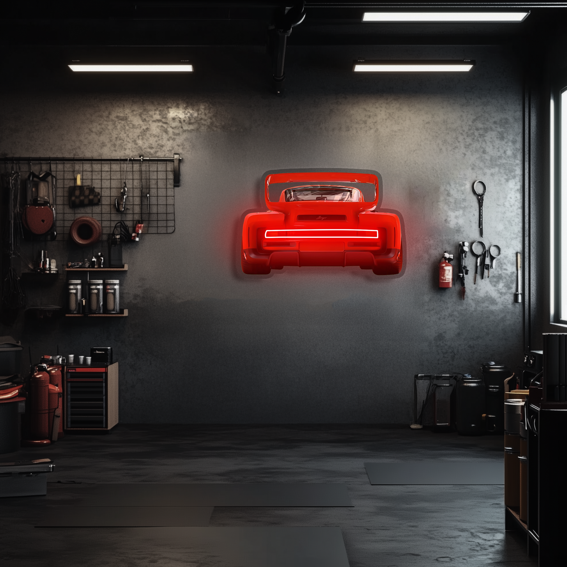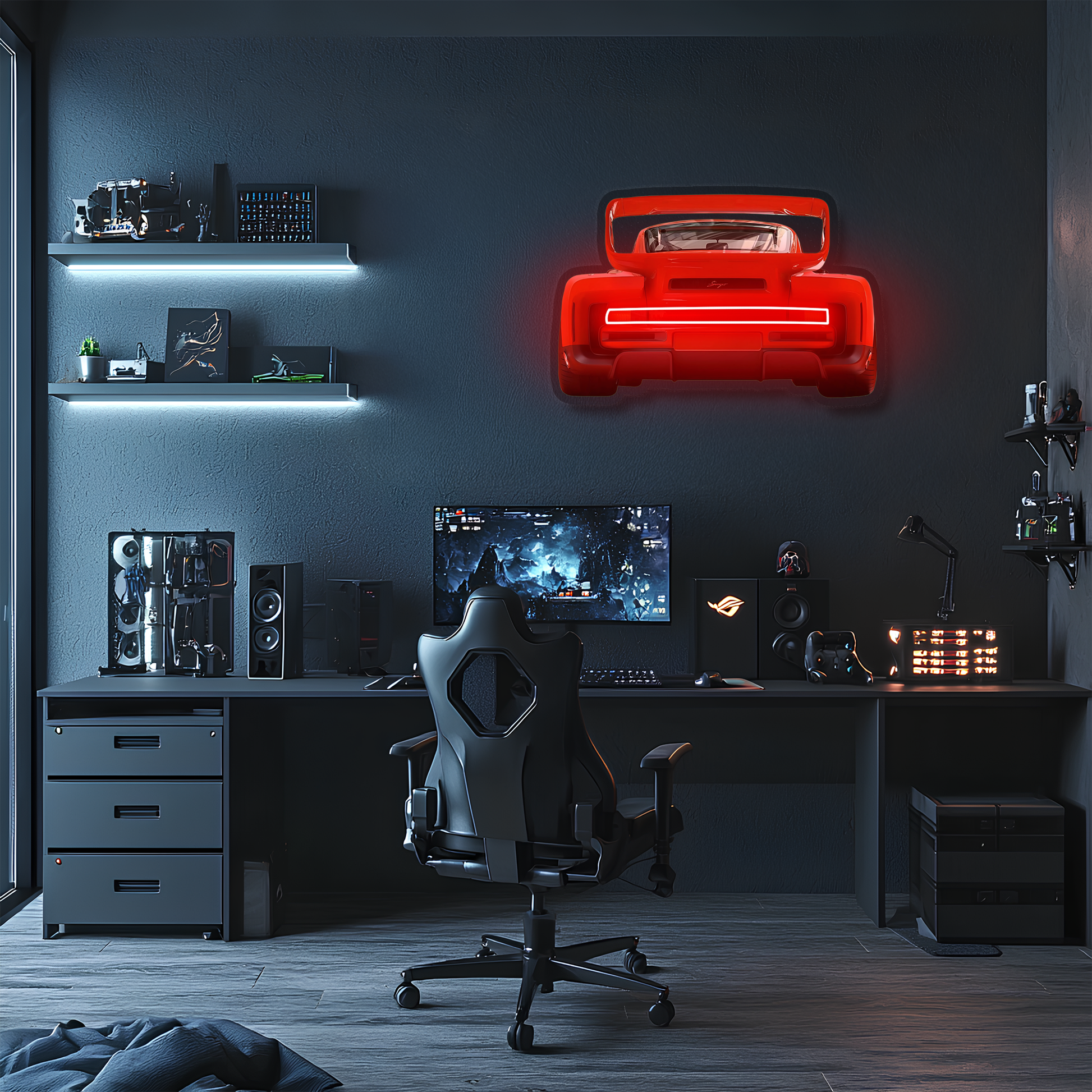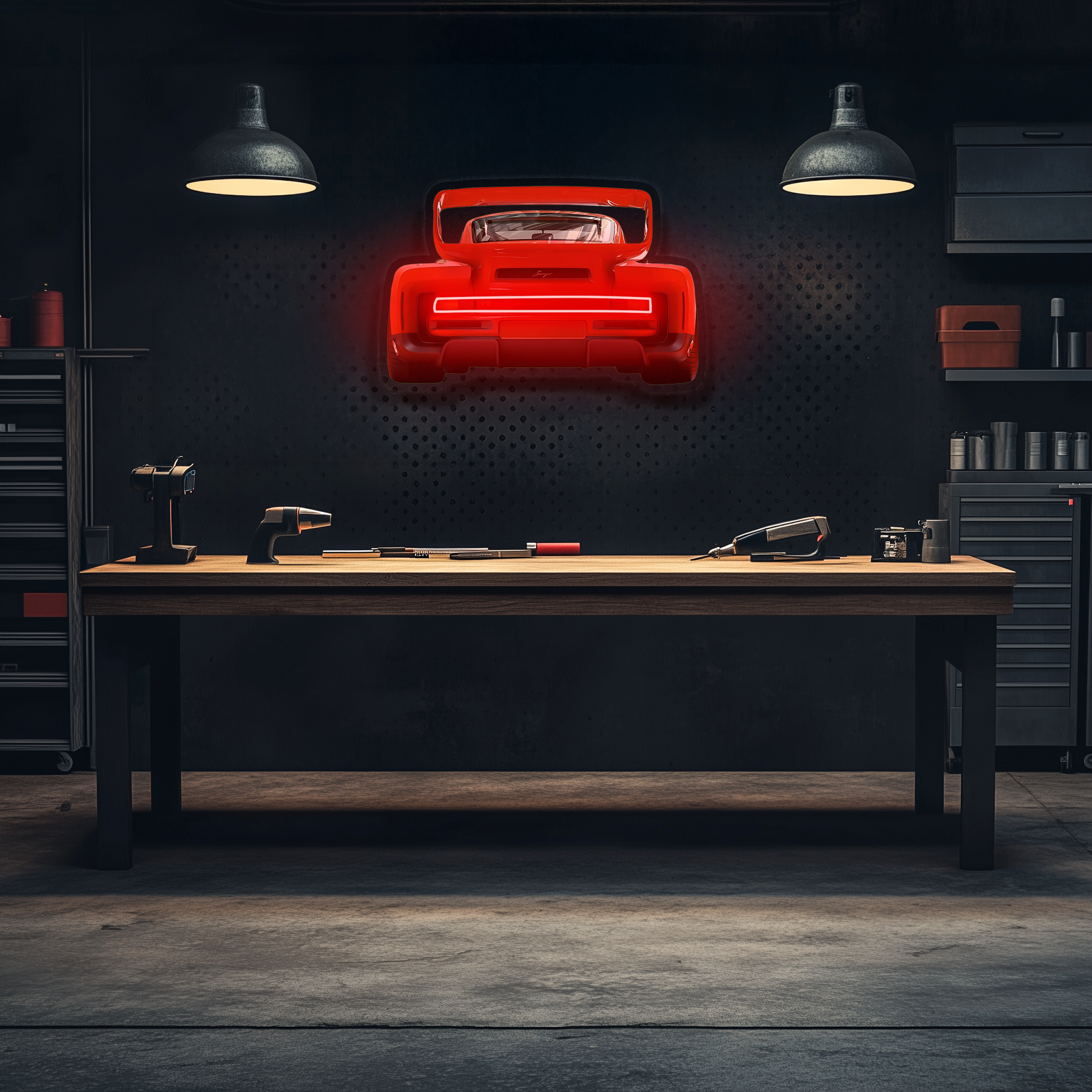 Otomobil tutkunları için tasarlanan bu kırmızı spor araba UV baskı neon duvar dekoru, gücü ve tasarımı aynı karede buluşturuyor.