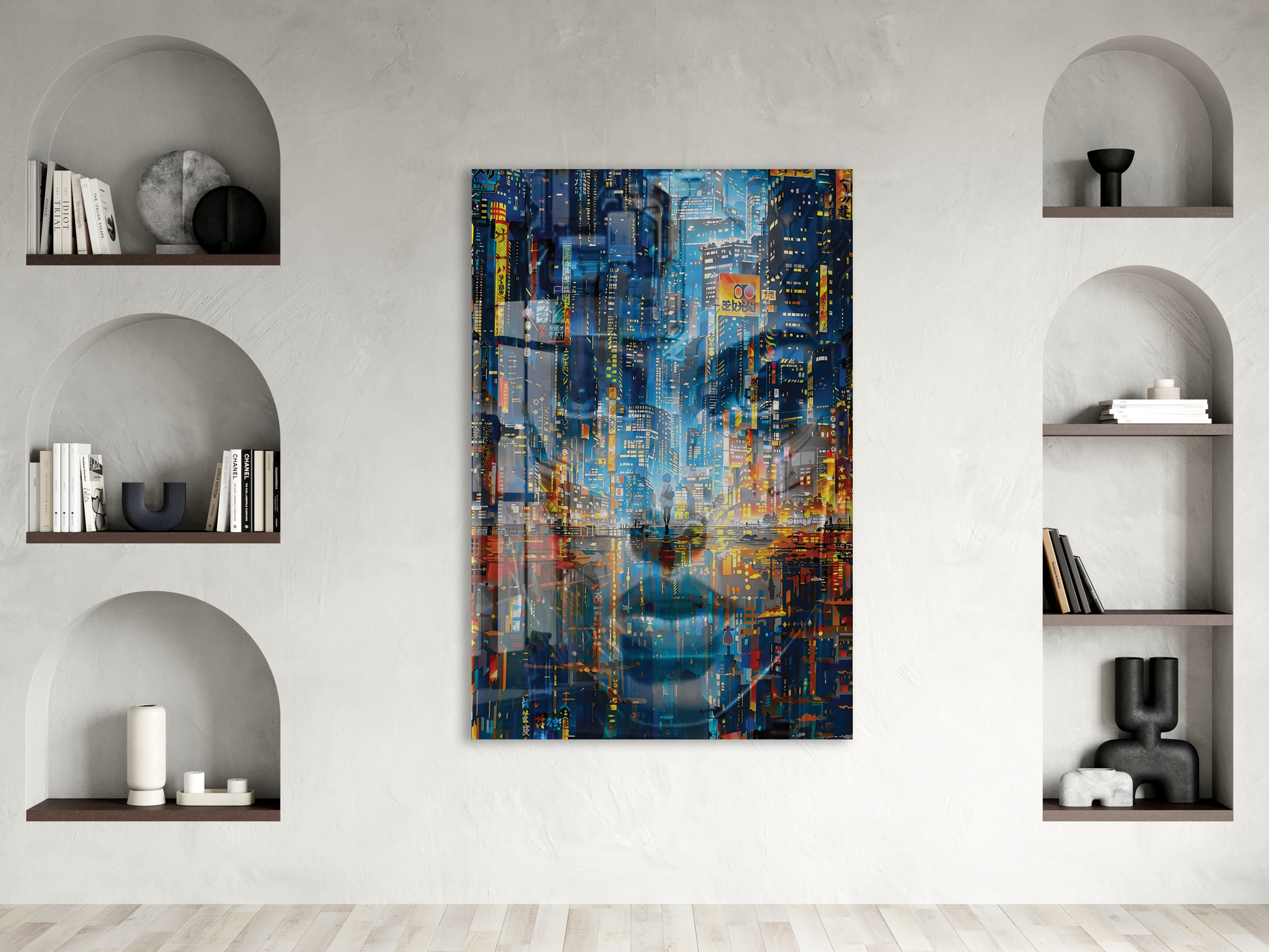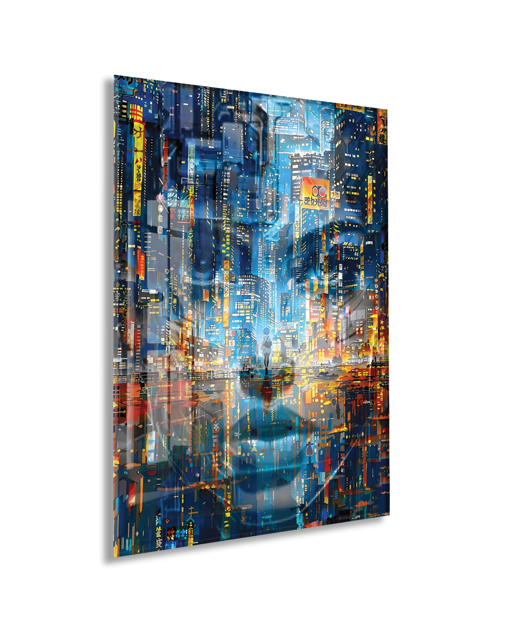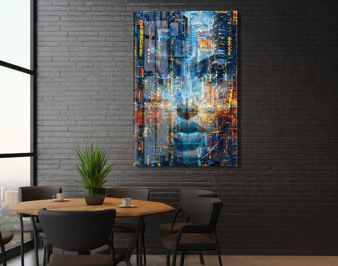 Neon Şehir Yansımaları Cam Tablo – Modern Metropol ve Gece Işıkları Duvar Sanatı - Peony031