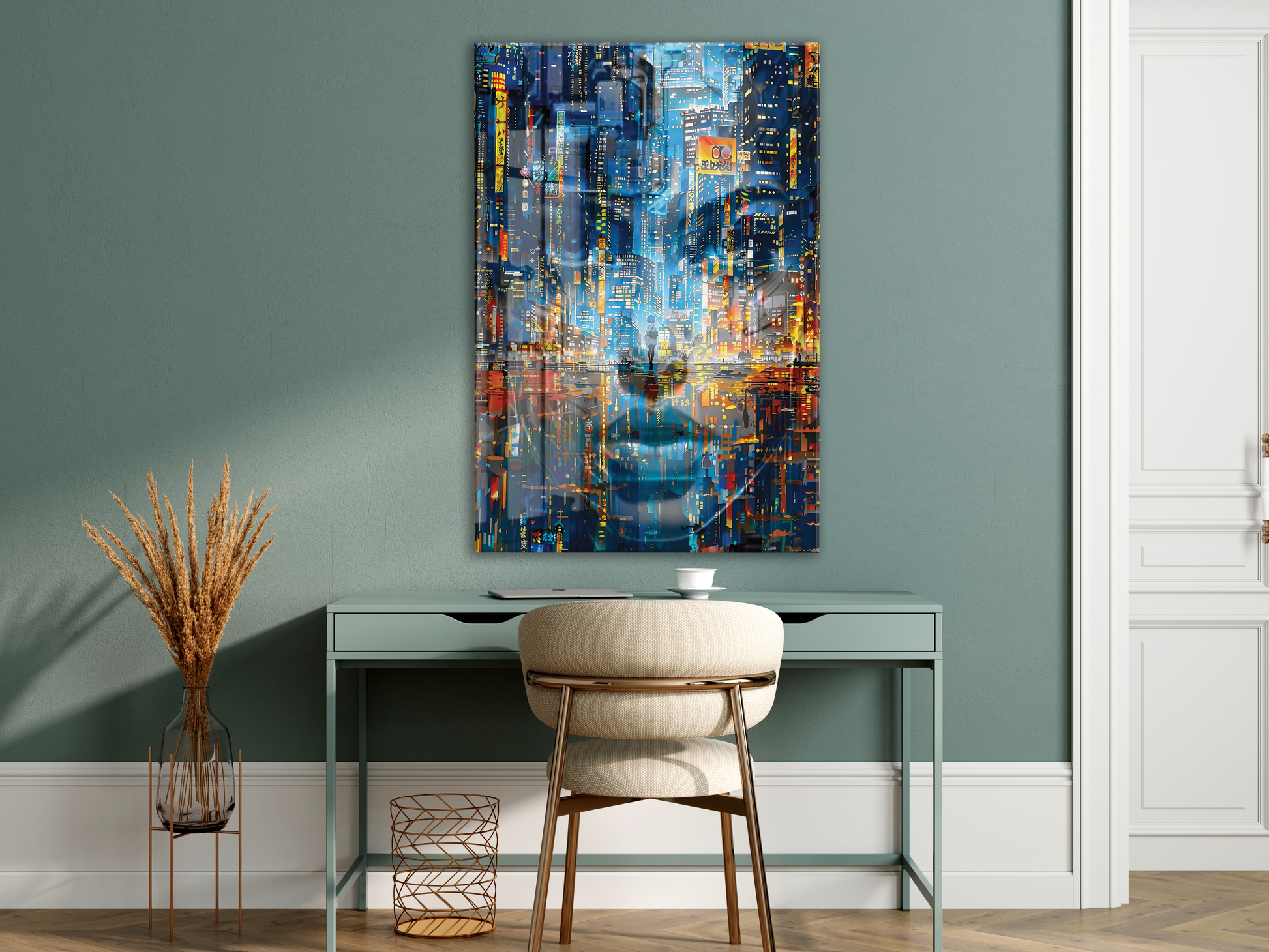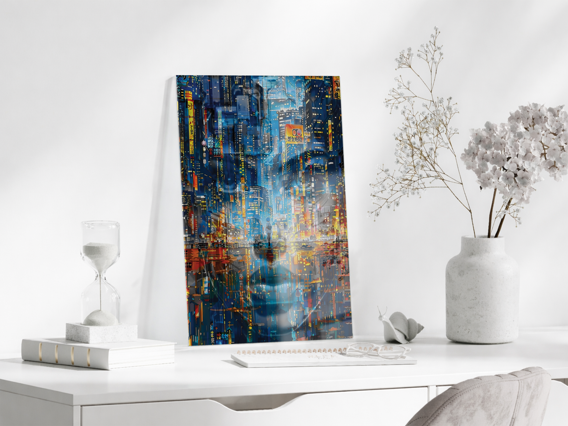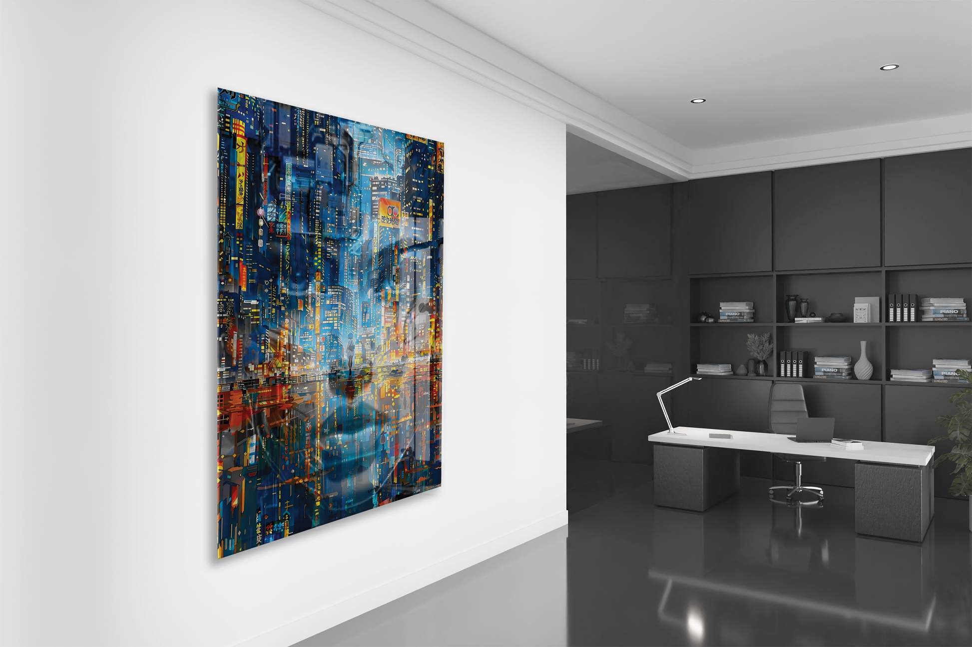 Neon Şehir Yansımaları Cam Tablo – Modern Metropol ve Gece Işıkları Duvar Sanatı - Peony031