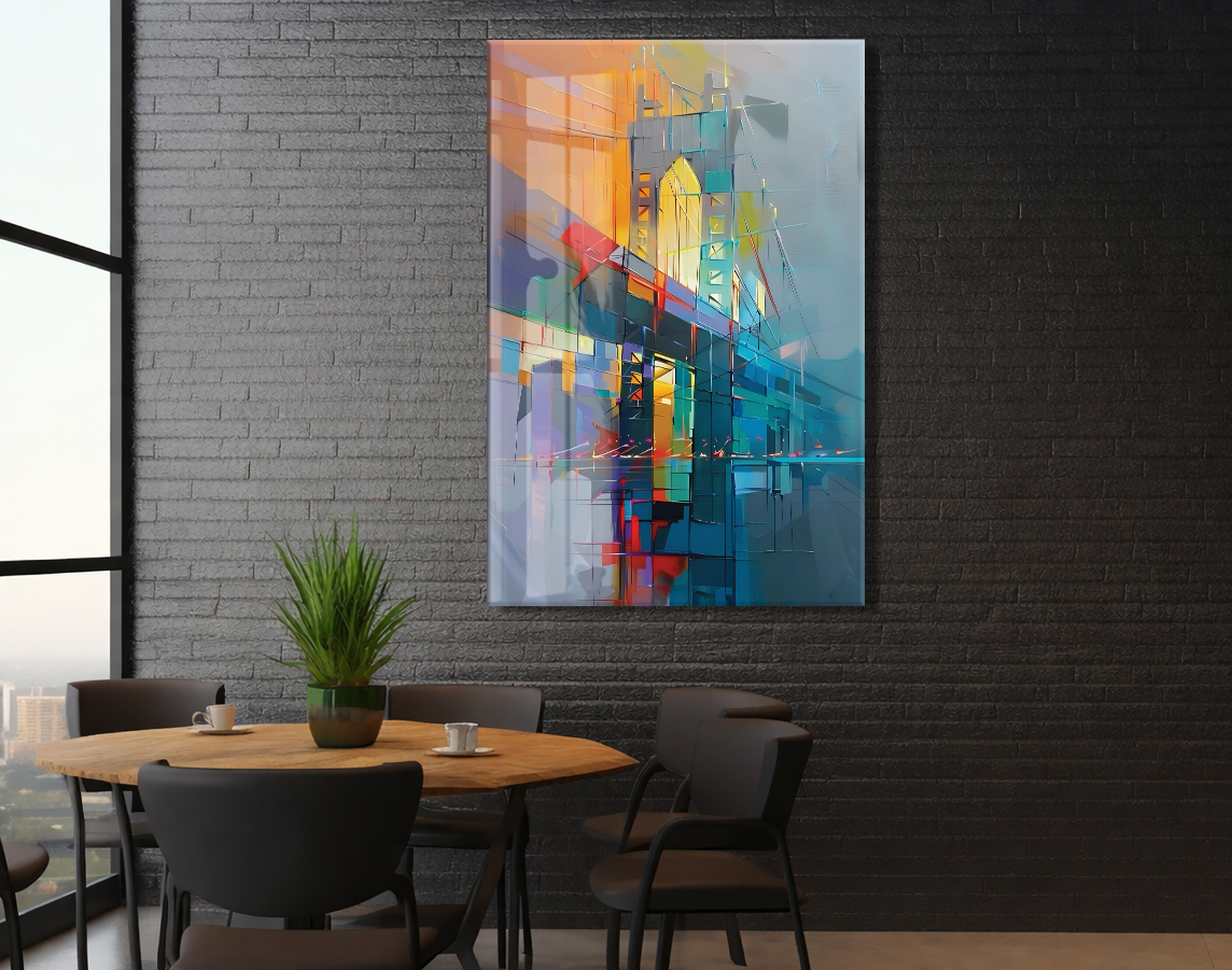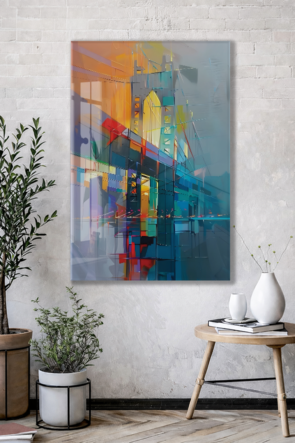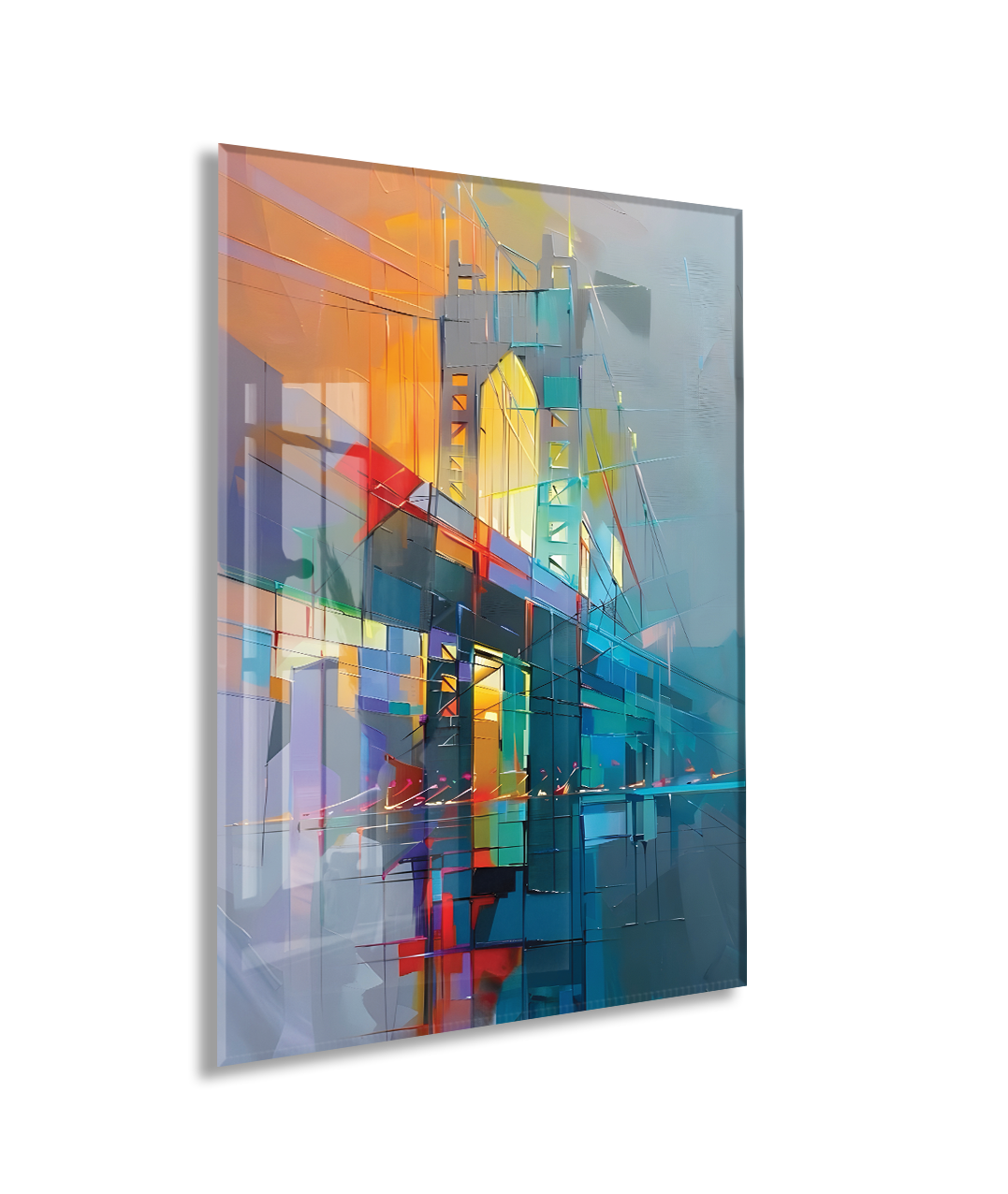 Modern Şehrin Ritmi – Soyut Mimari ve Işık Temalı Cam Tablo- Peony048