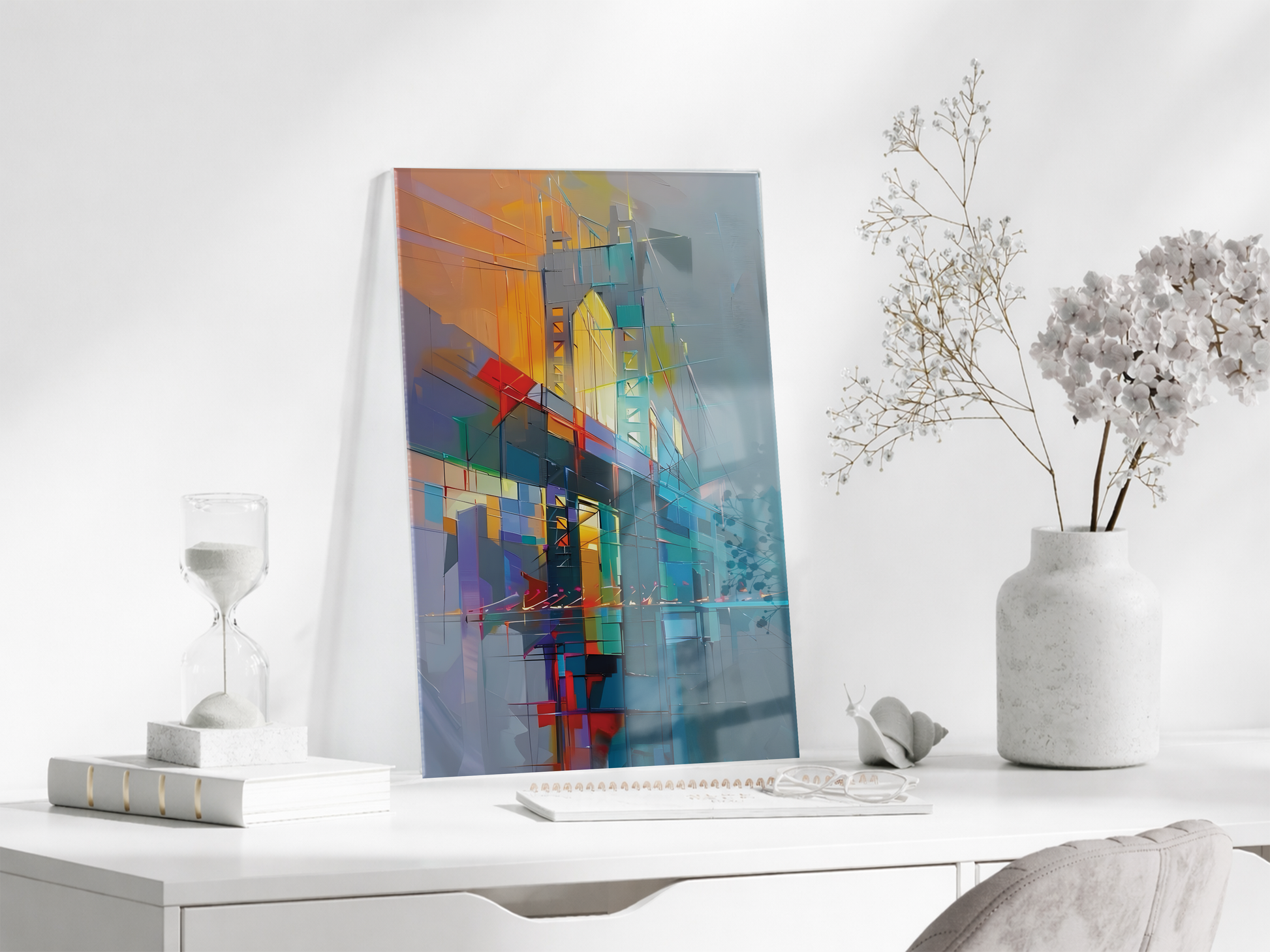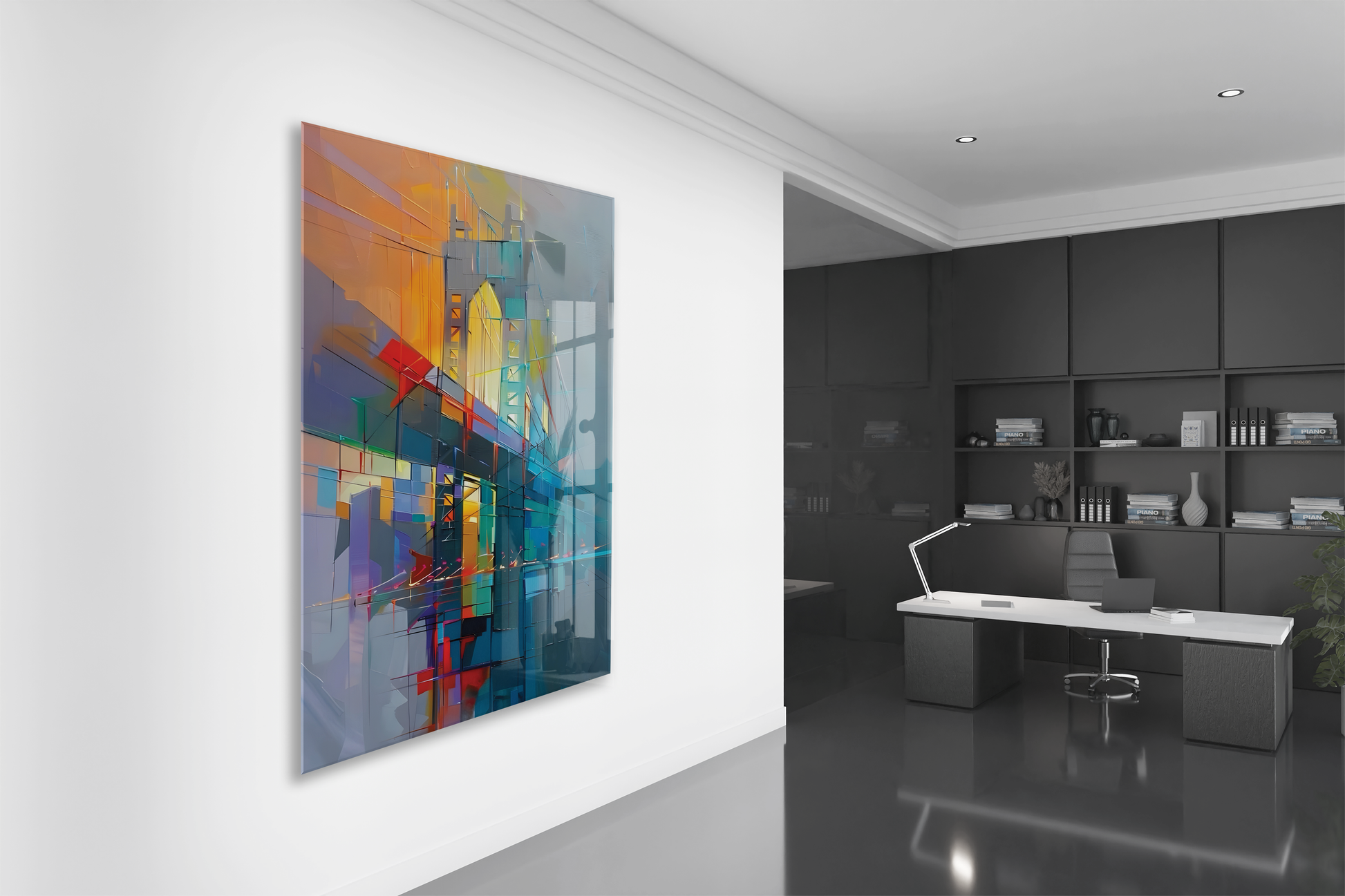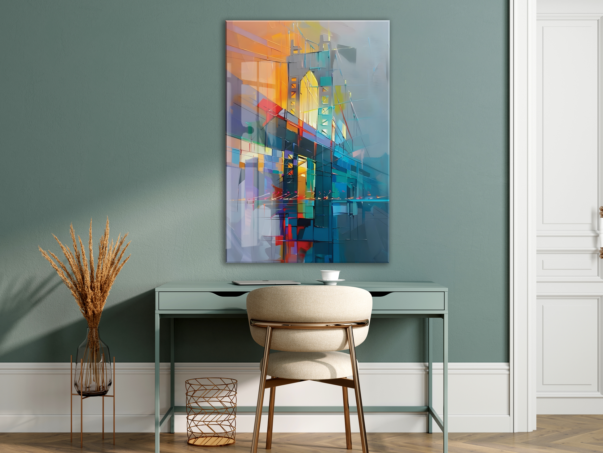 Modern Şehrin Ritmi – Soyut Mimari ve Işık Temalı Cam Tablo- Peony048