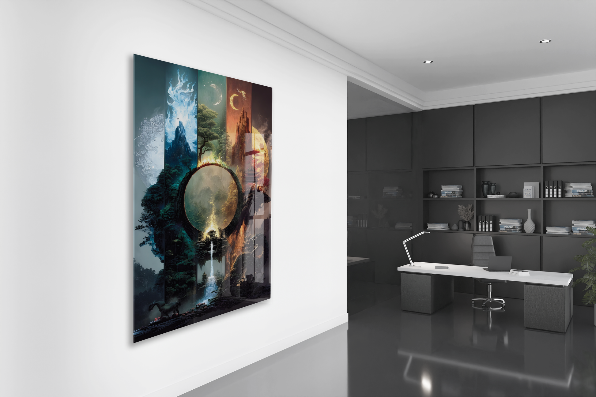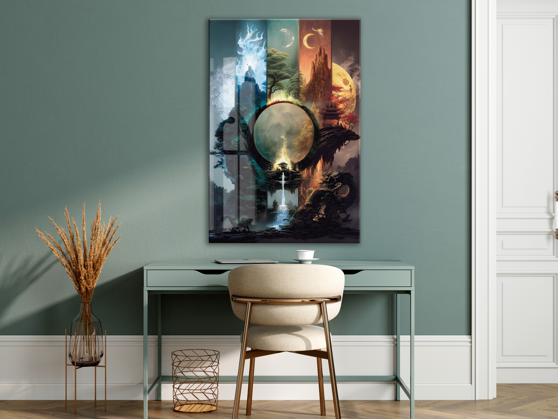 Modern Fantastik Doğa Kapısı Cam Tablo – Çok Katmanlı Sanatsal UV Baskılı Temperli Cam Duvar Tablosu - Peony002