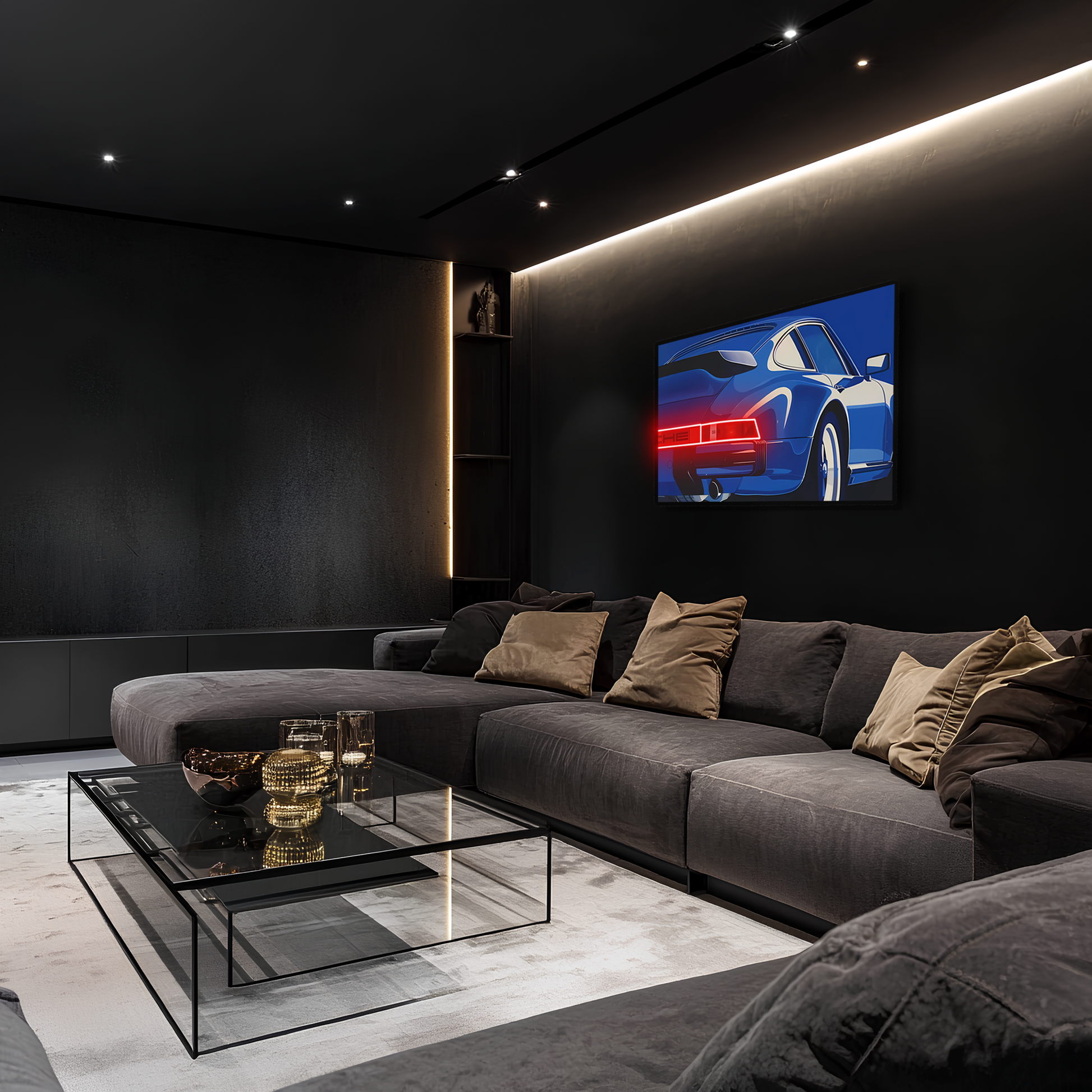 Mavi Retro Spor Araba UV Baskı Neon Duvar Dekoru | Pleksi Işıklı Tablo | Modern Ev ve Ofis Dekoru