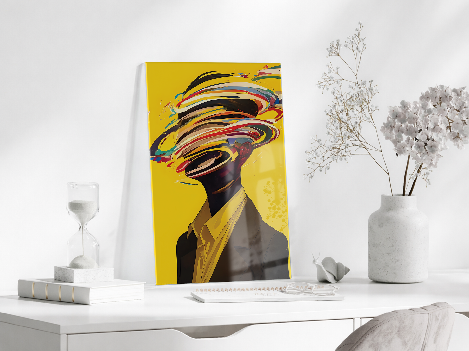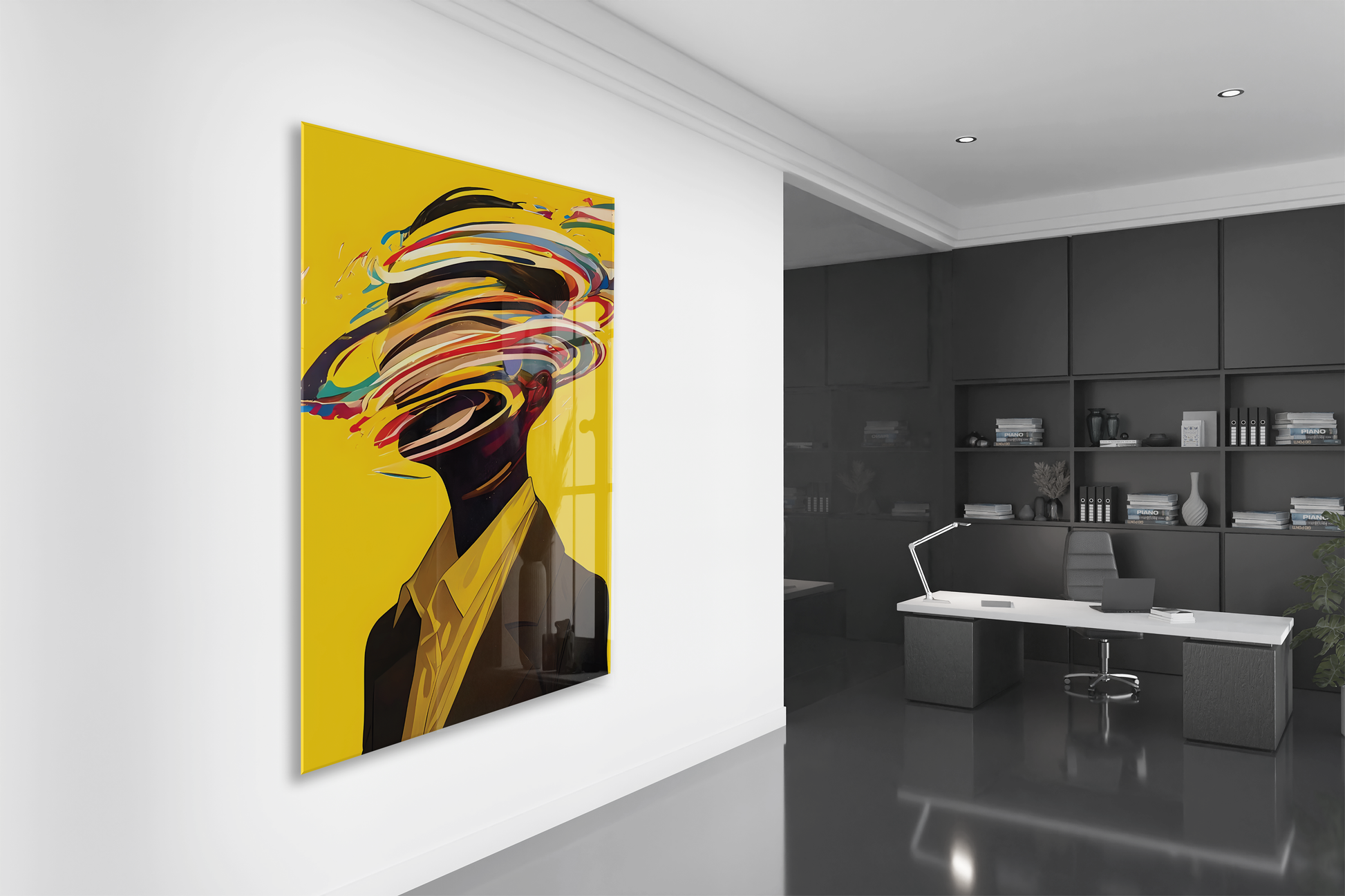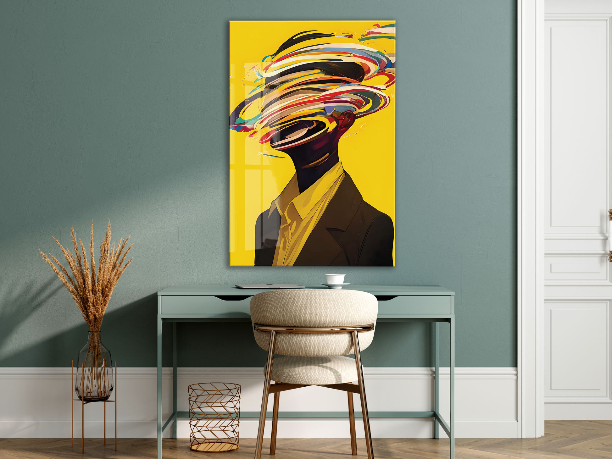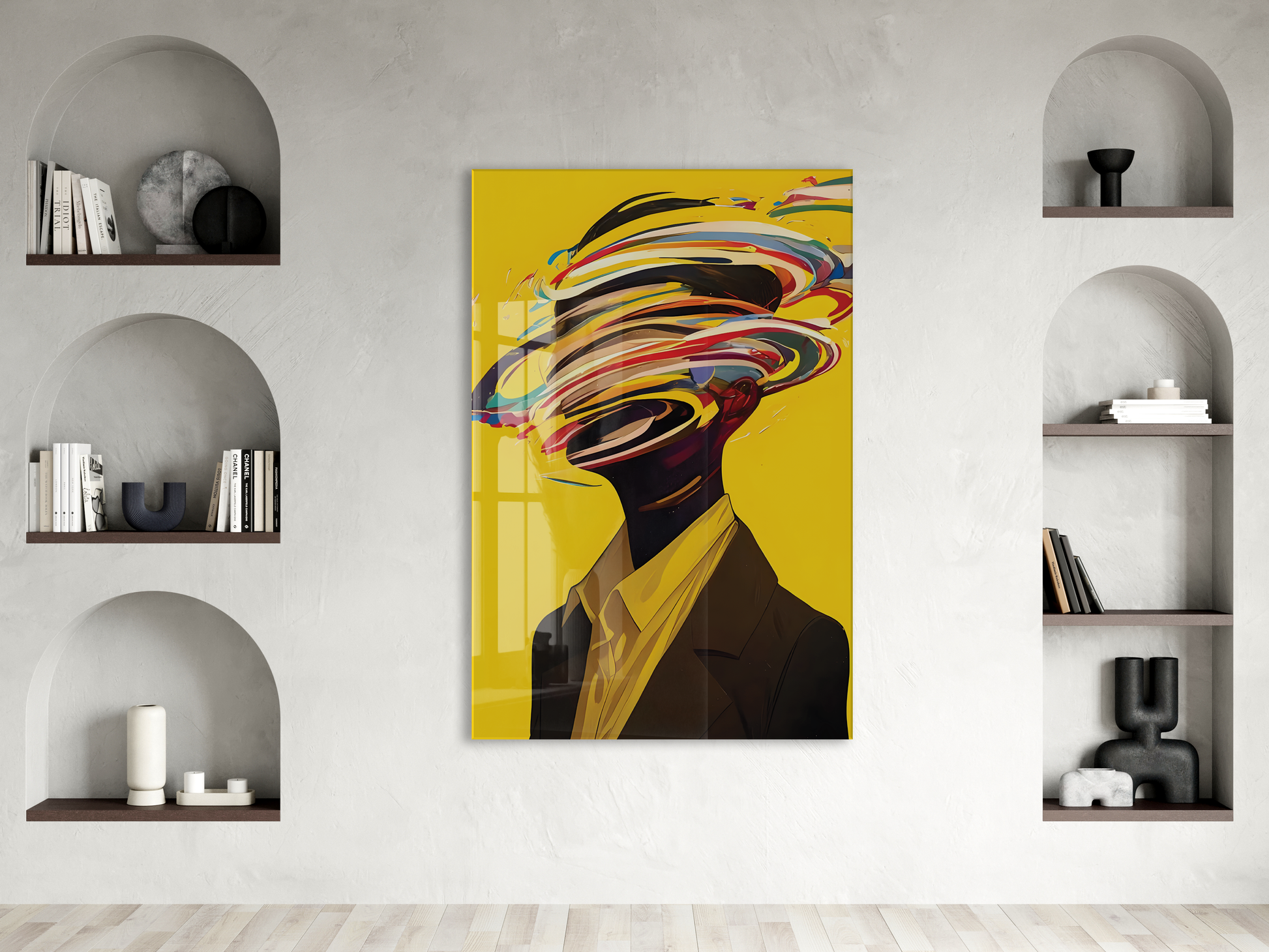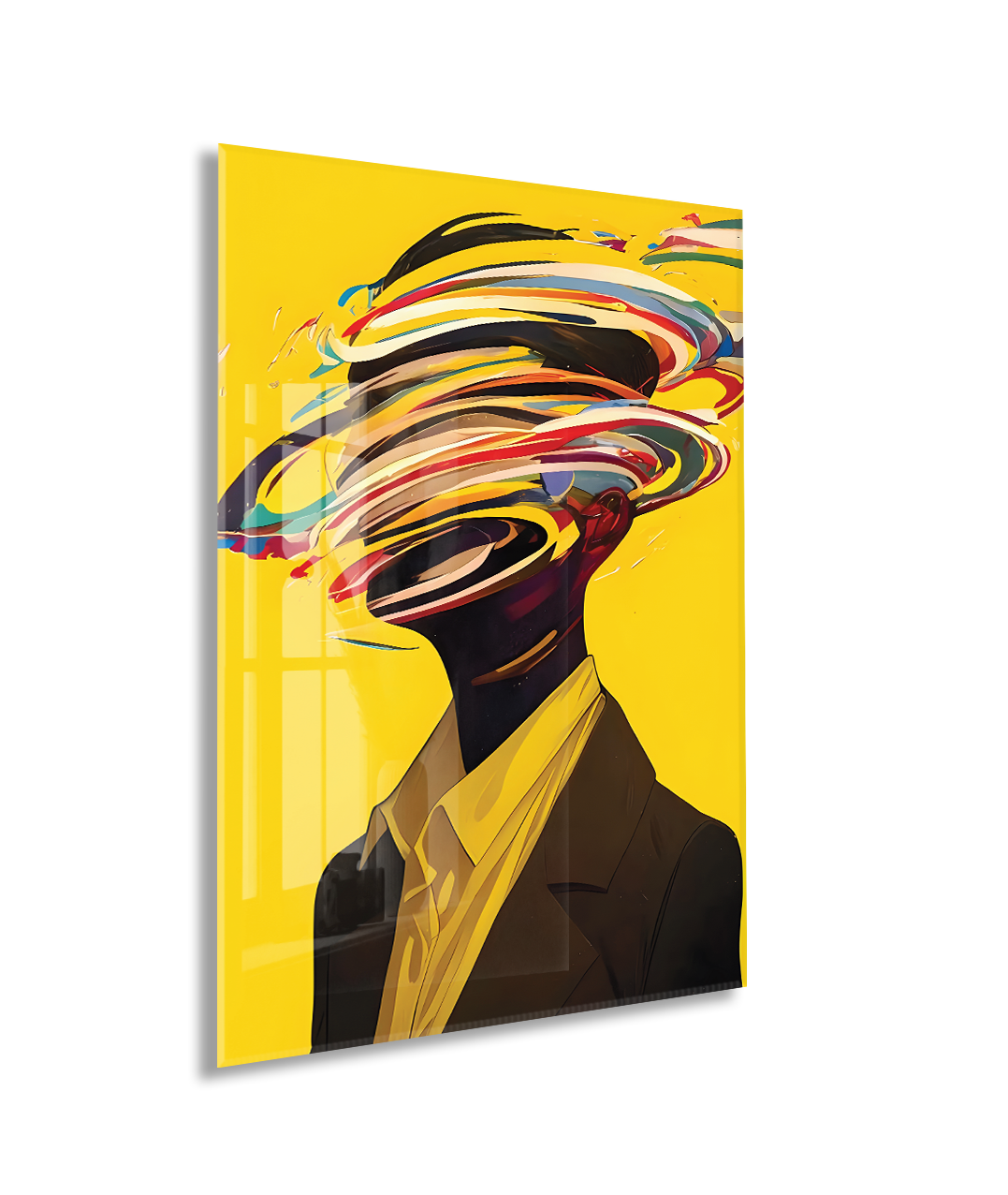 Modern Soyut Portre Cam Tablo – Renkli Fırça Efektli Sanatsal UV Baskılı Temperli Cam Duvar Tablosu - Peony014