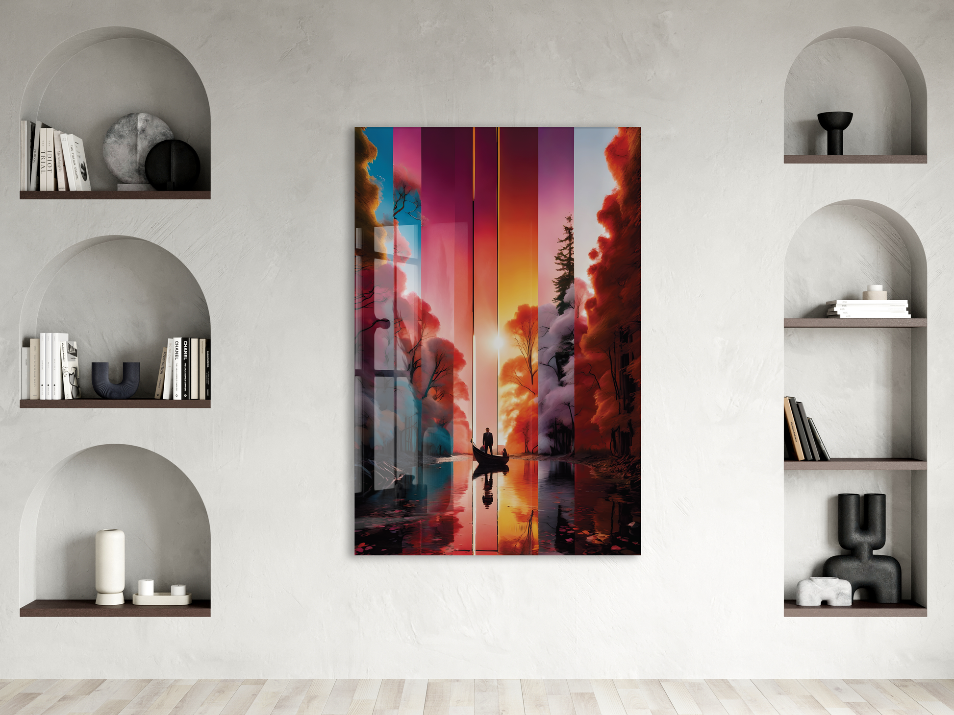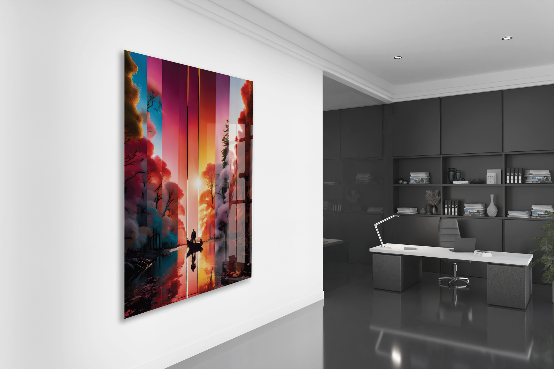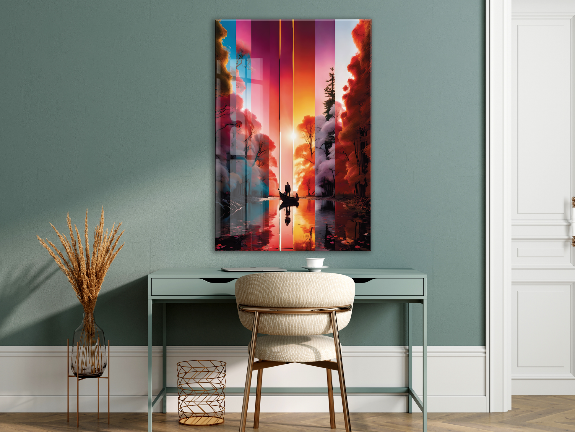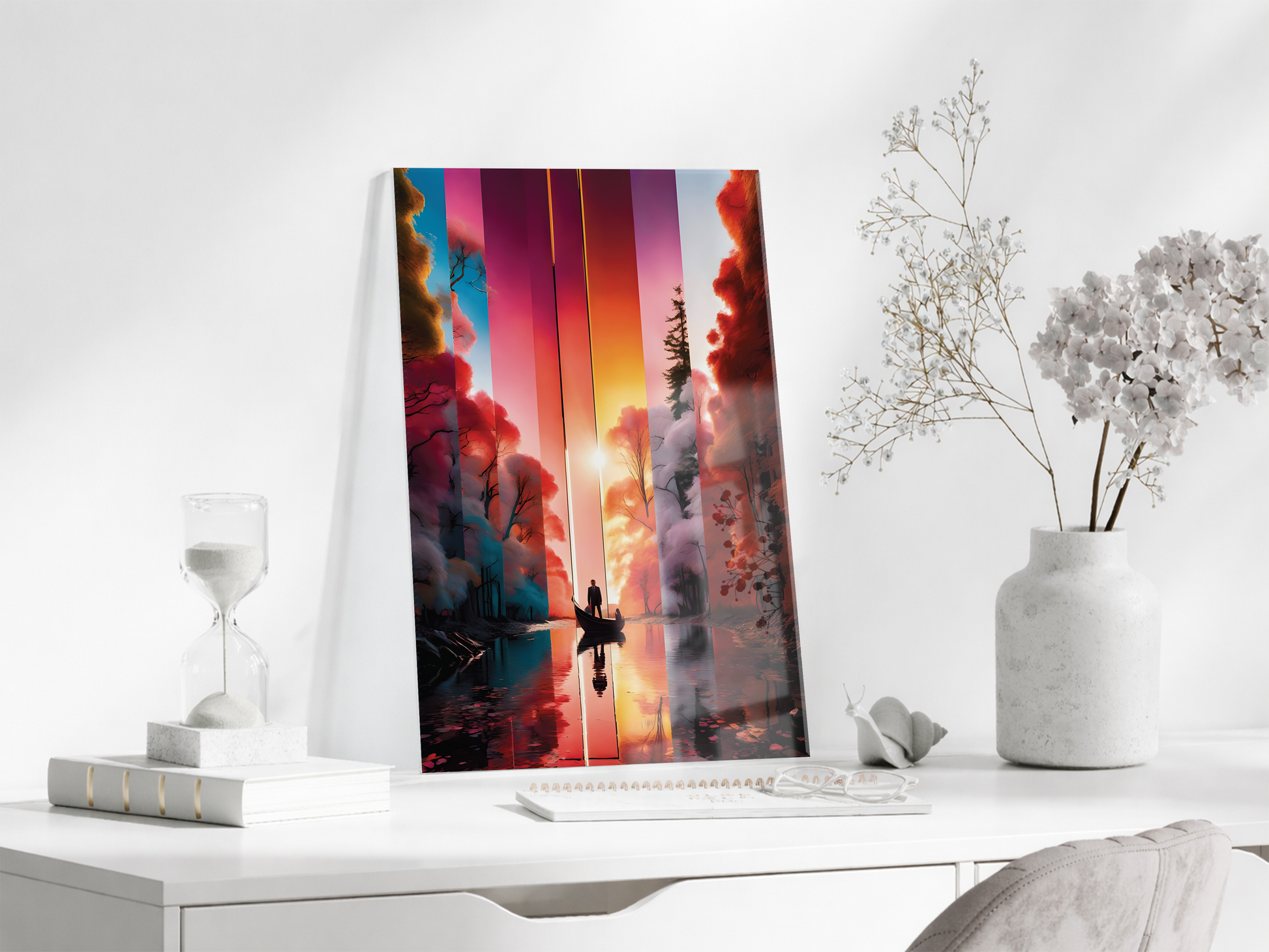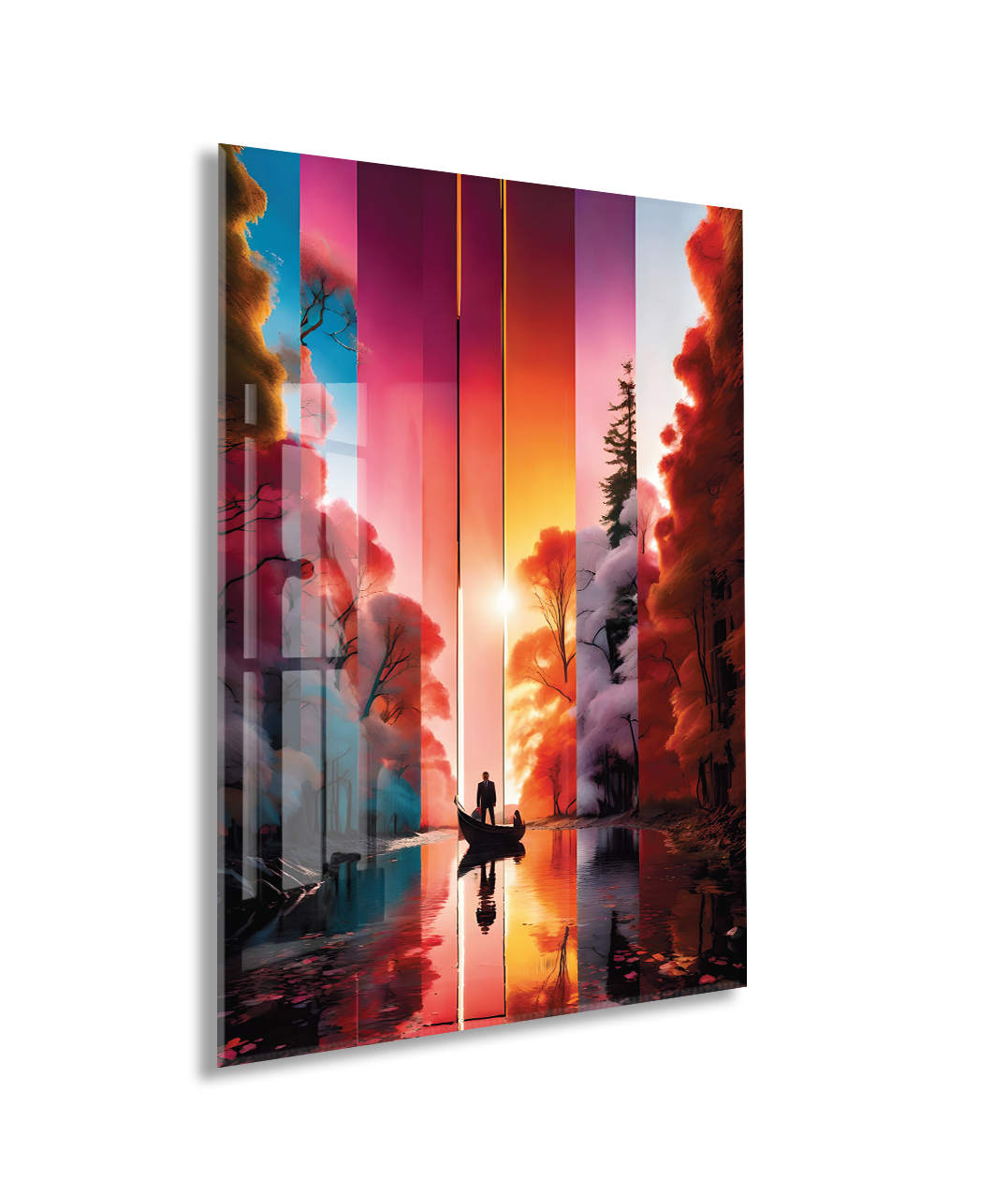 Modern Soyut Gün Batımı Yolculuk Cam Tablo – Renk Geçişli Doğa Temalı Sanatsal UV Baskılı Temperli Cam Duvar Tablosu - Peony020