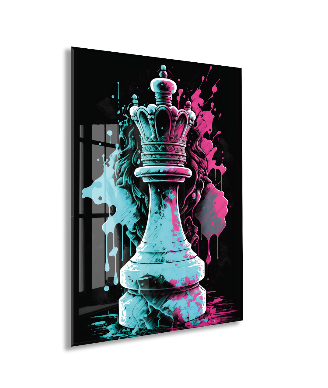 Satranç Kralı Cam Tablo – Güç ve Strateji Temalı Modern Pop Art, UV Baskılı Temperli Cam Duvar Tablosu - Peony037