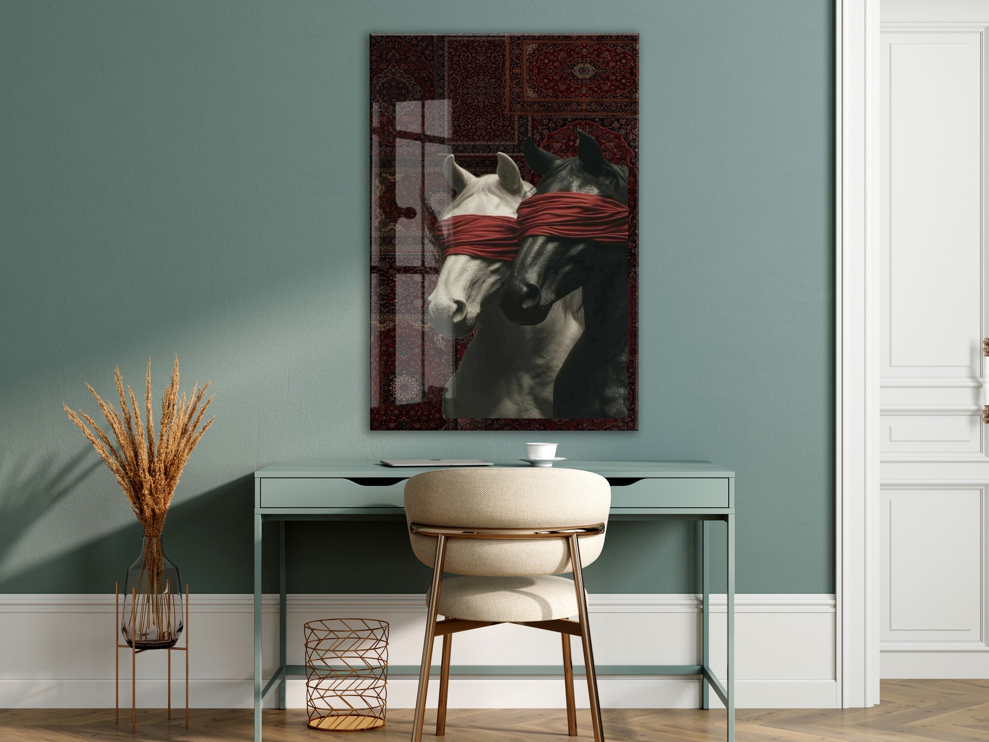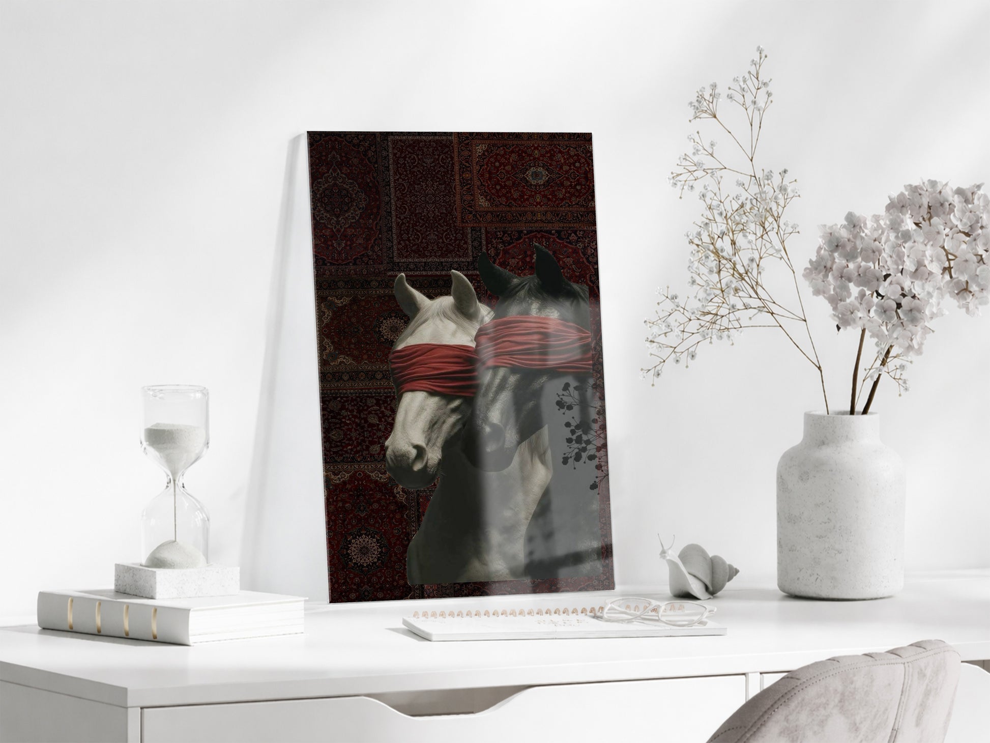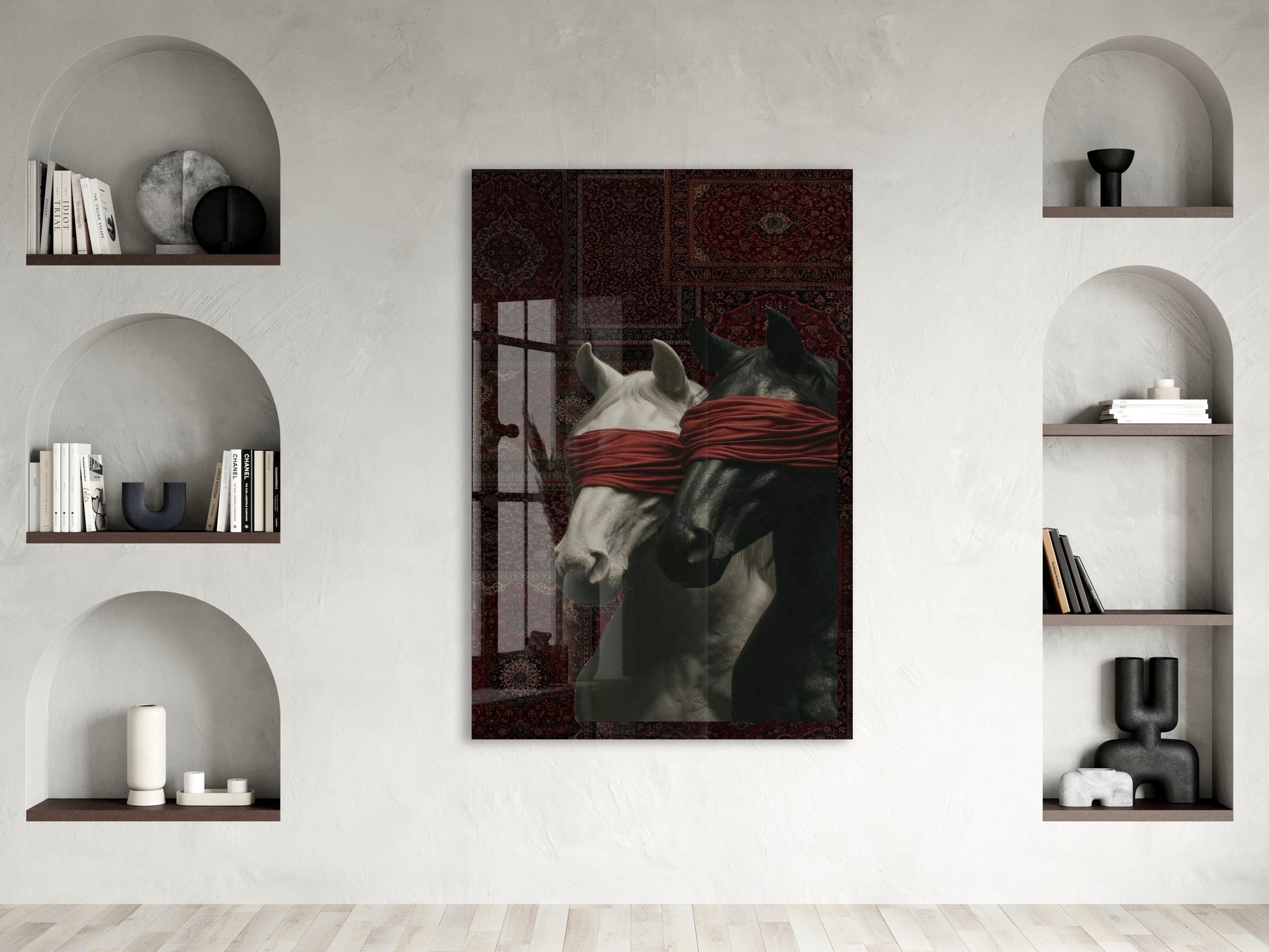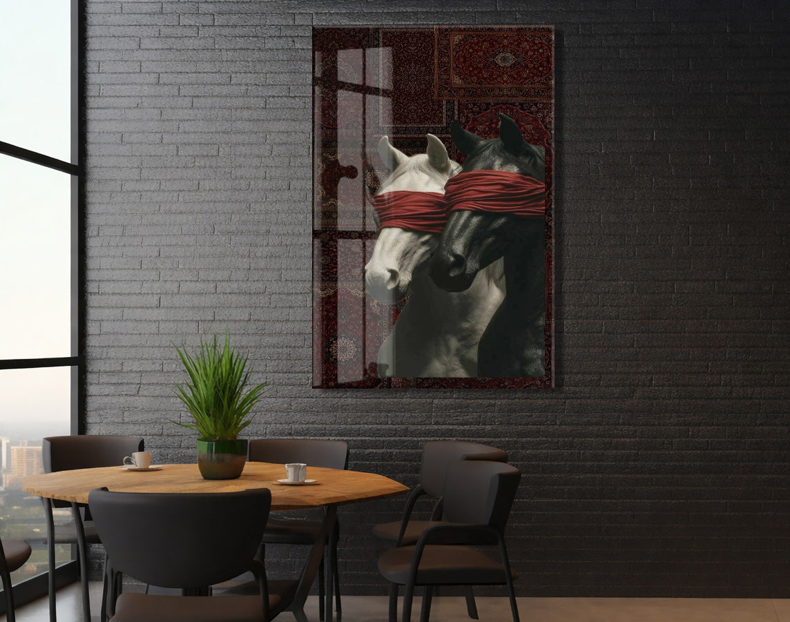 “Kontrol Altındaki Güç” – Sanatsal At Figürlü Dekoratif Cam Tablo - Peony060