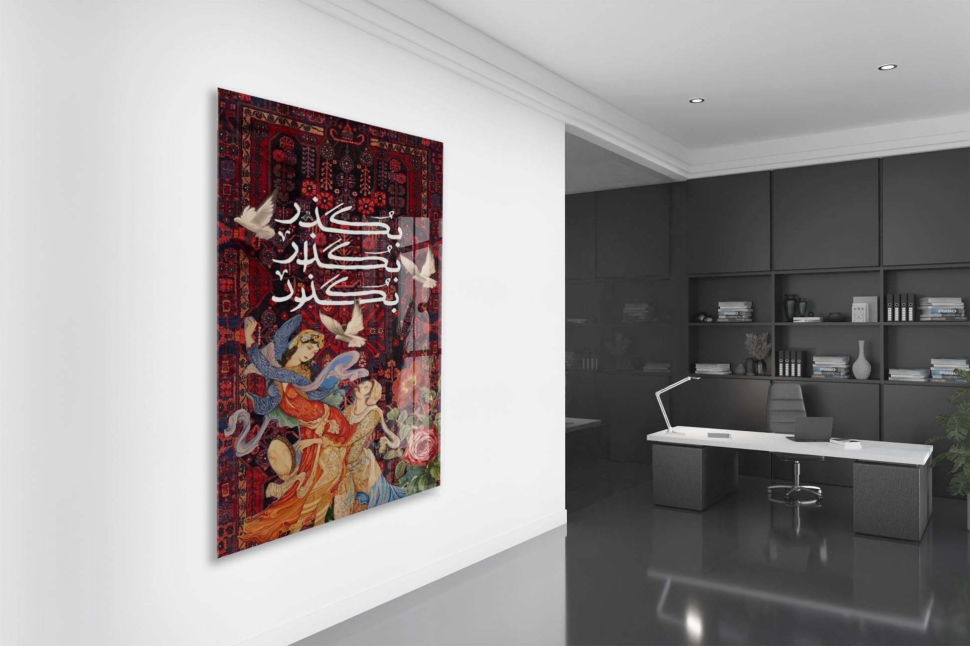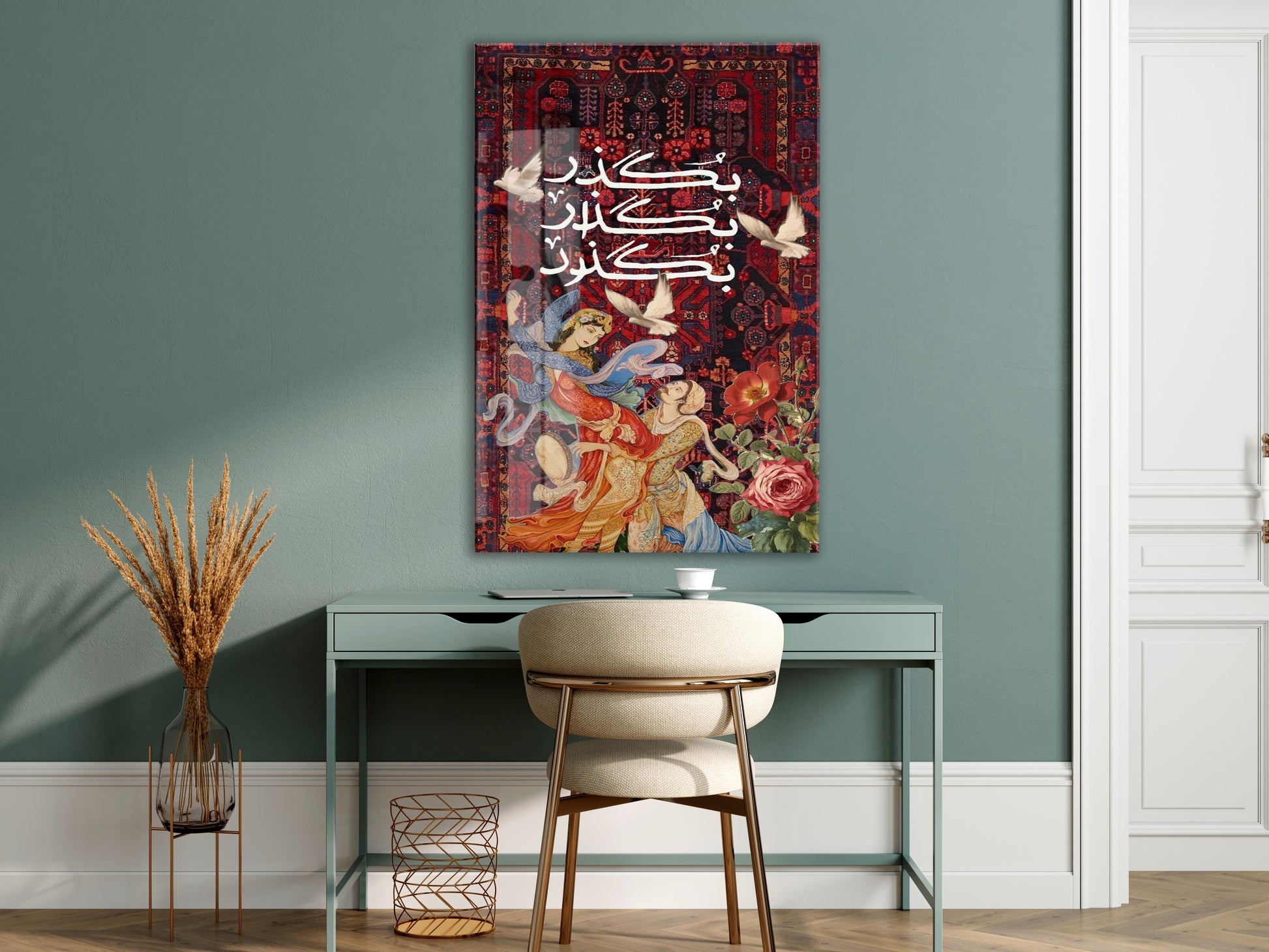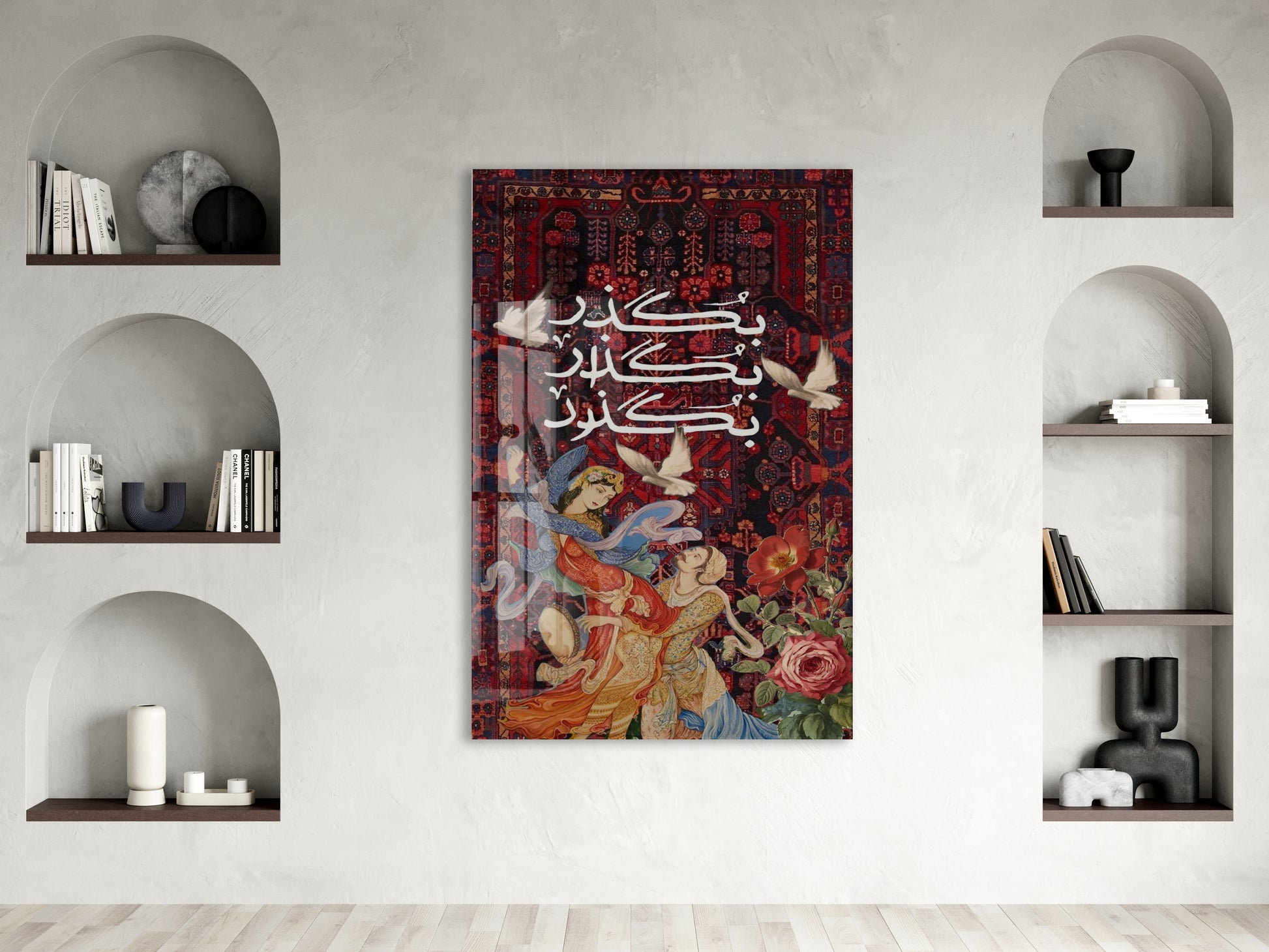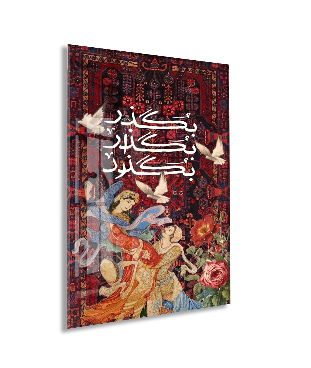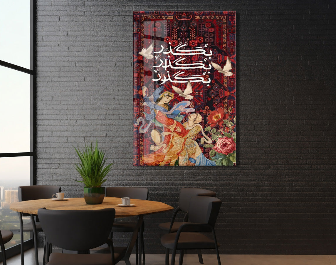 “Kalpten Kalbe” – Geleneksel Motifli ve Hat Yazılı Cam Duvar Tablosu - Peony062