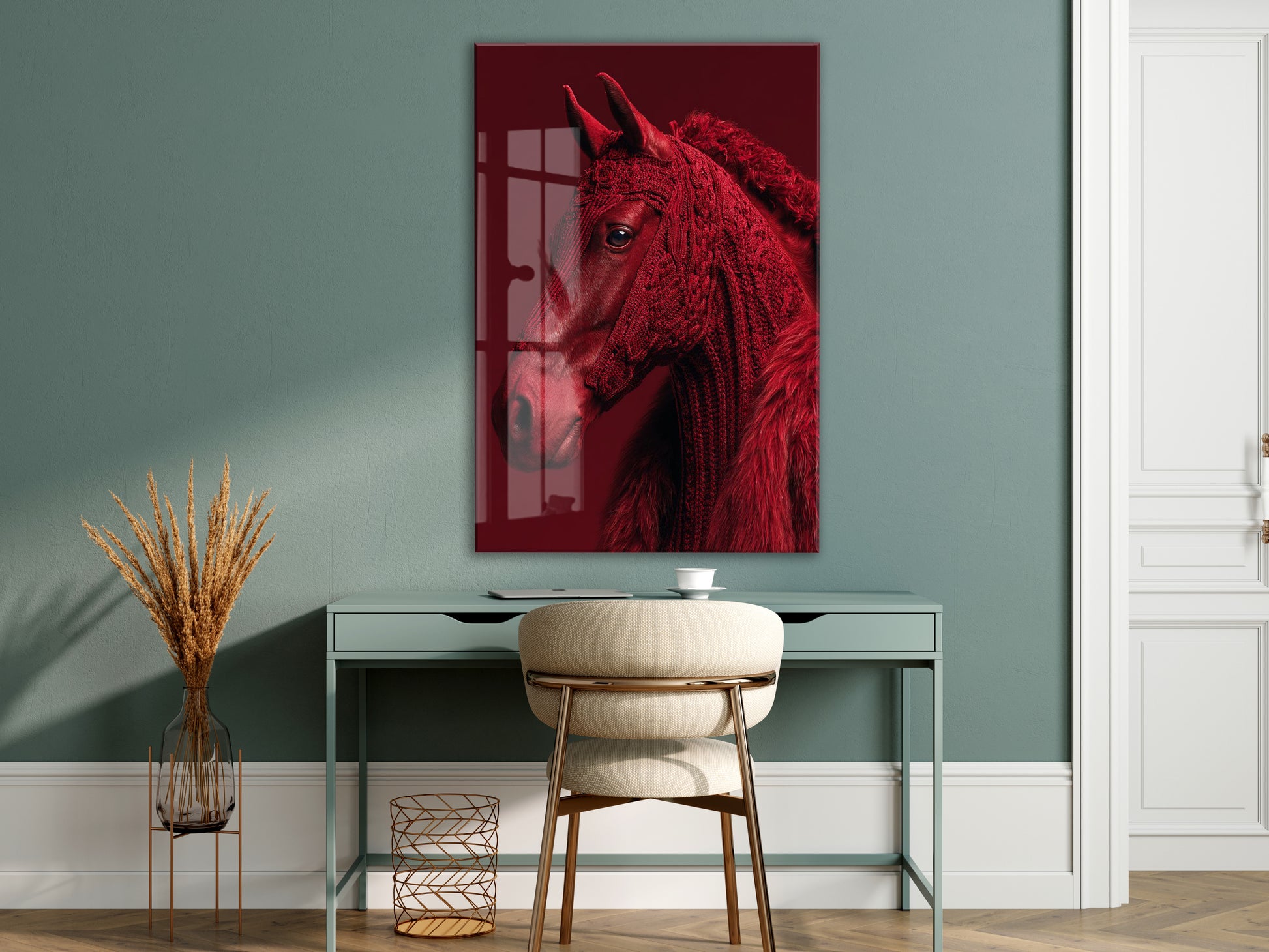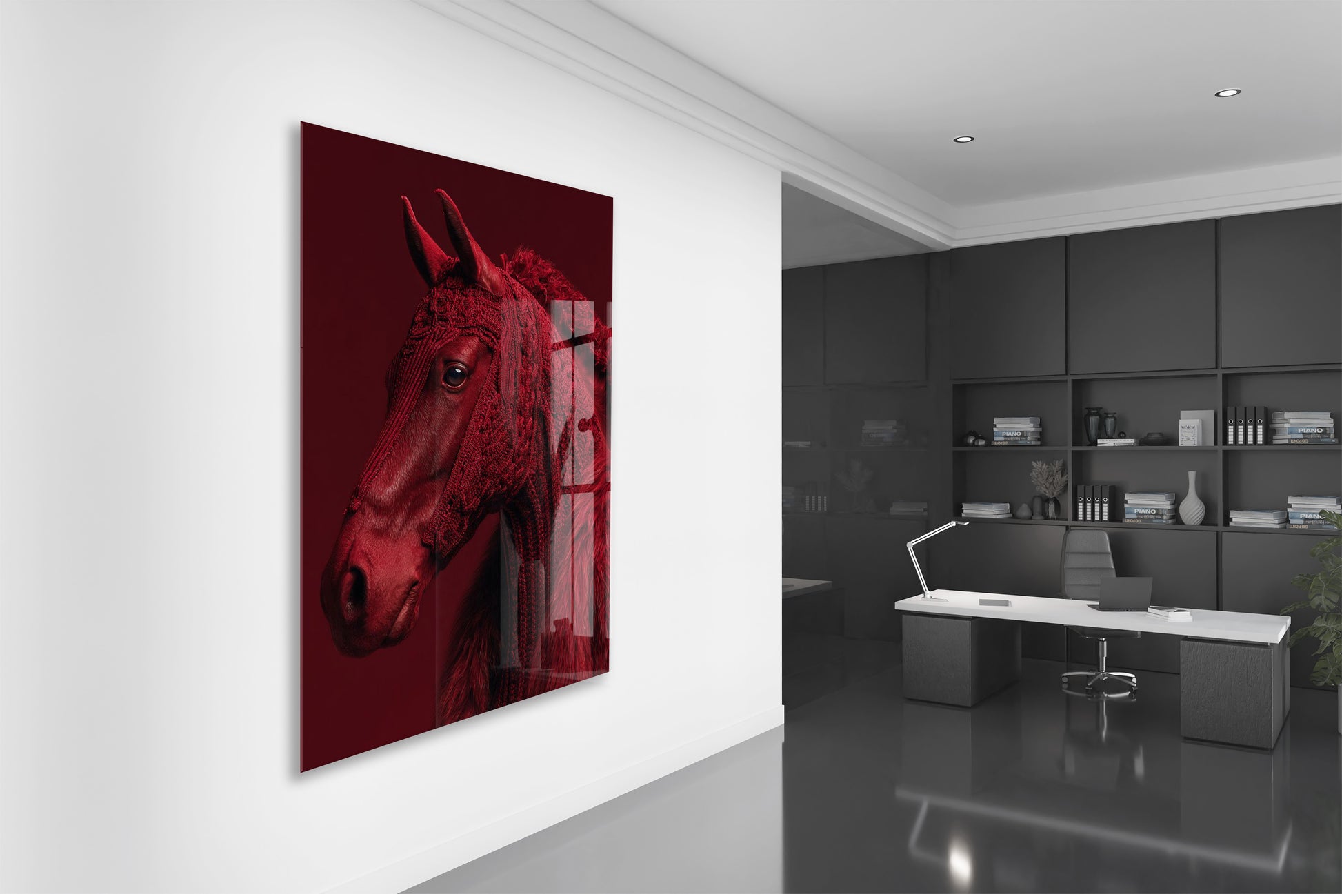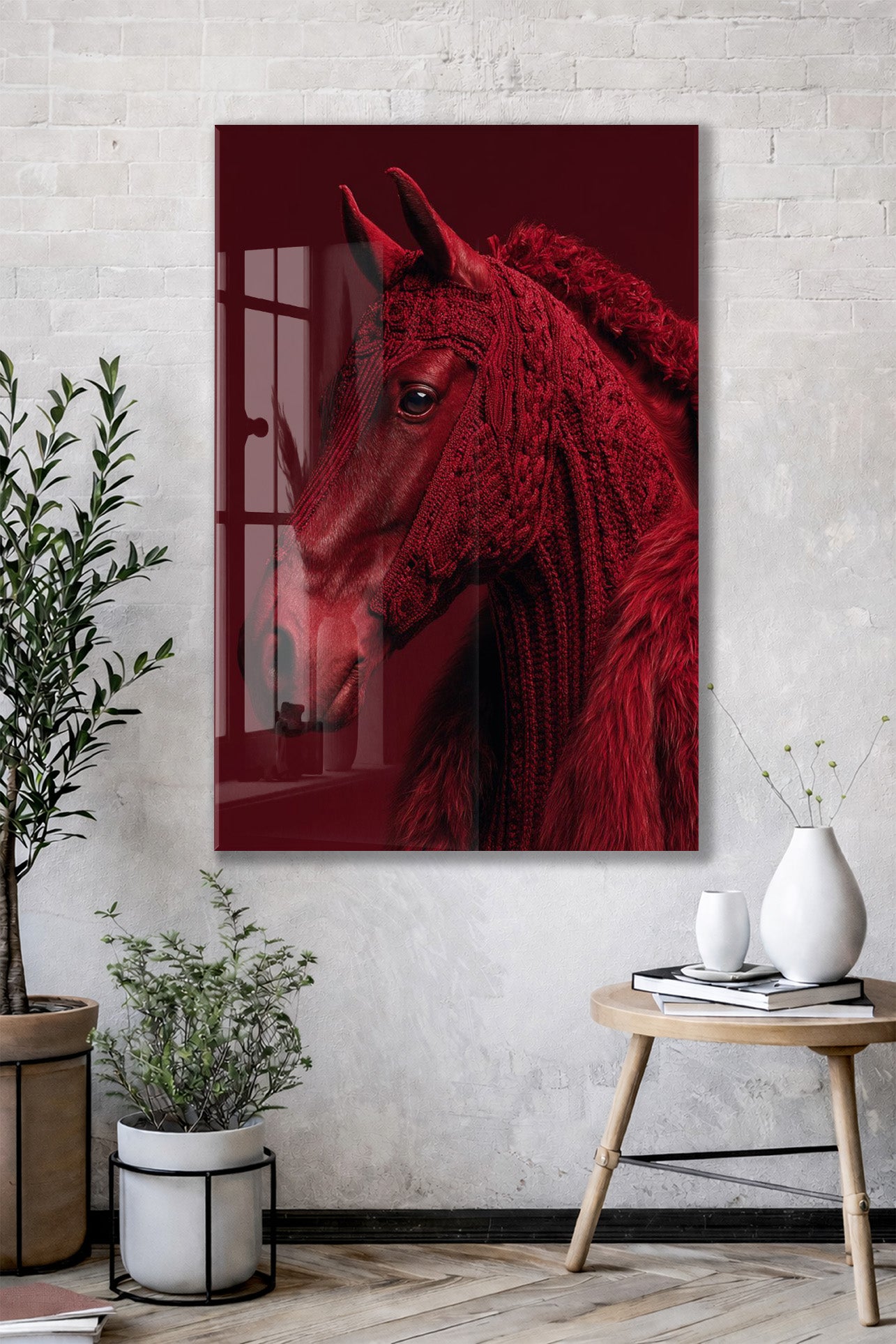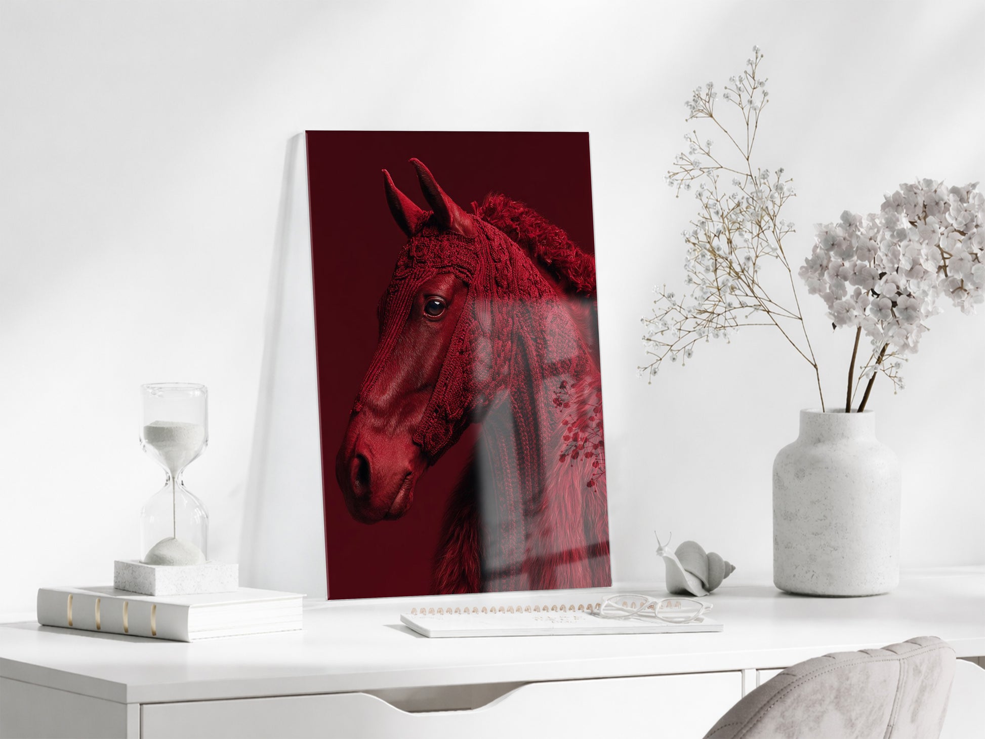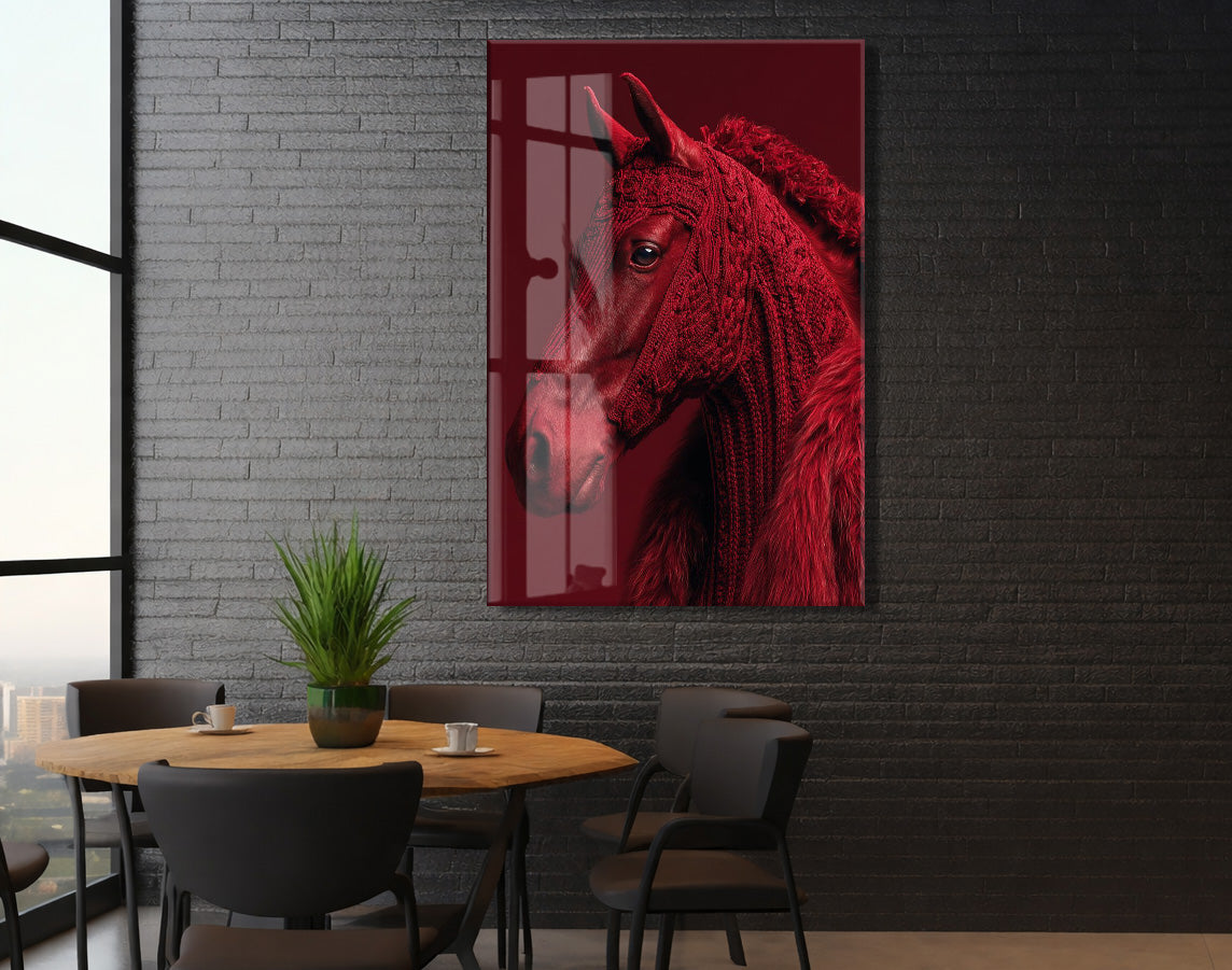 “Ateşin Ruhu” – Kızıl At Figürlü Sanatsal Cam Tablo- Peony063