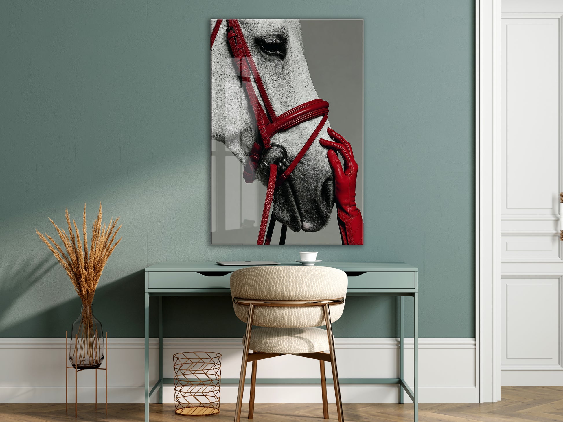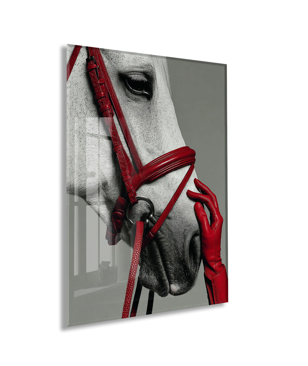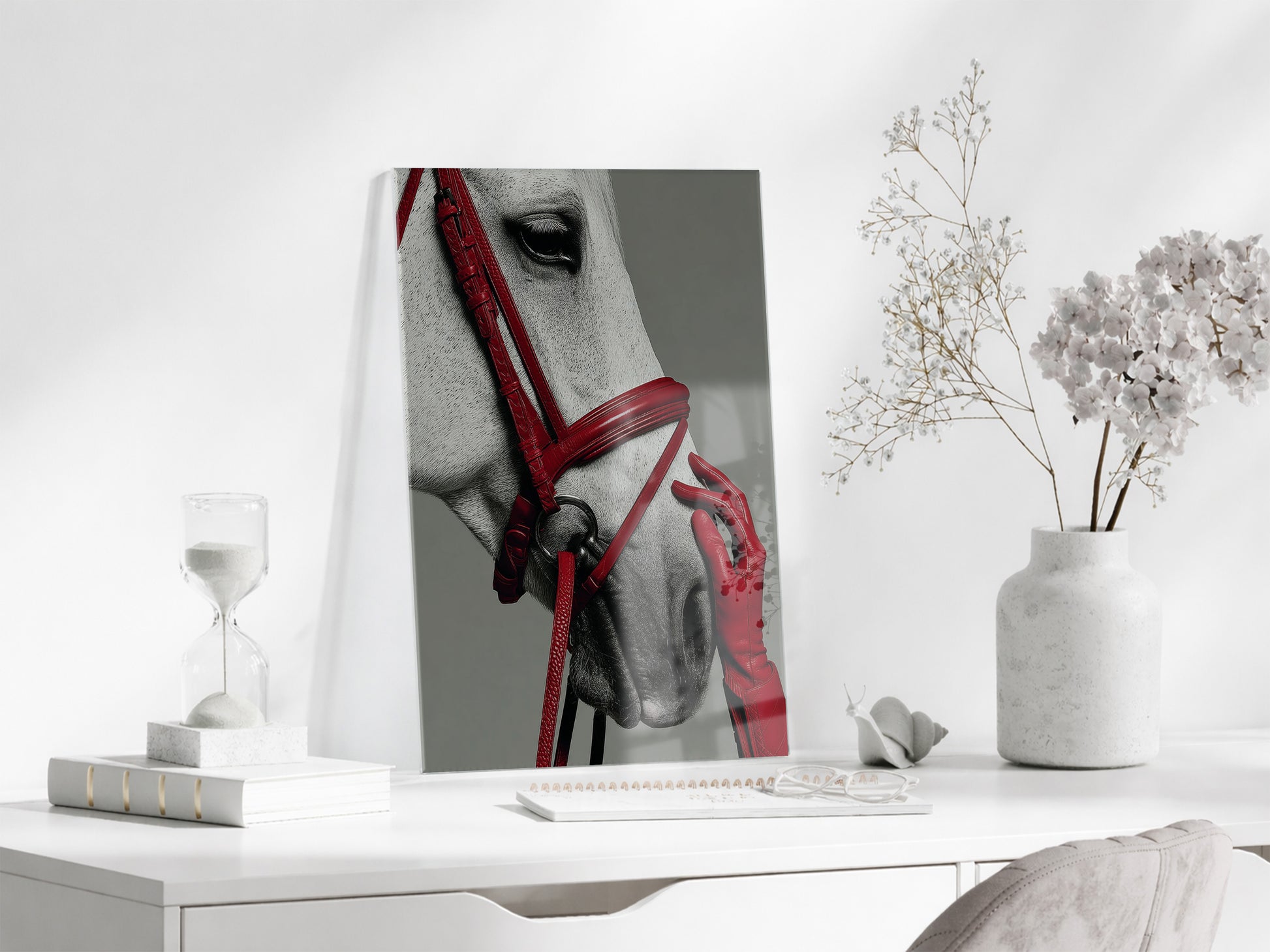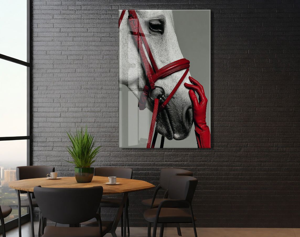 “Soylu Ruh” – Modern Beyaz At Sanat Cam Tablosu - Peony066