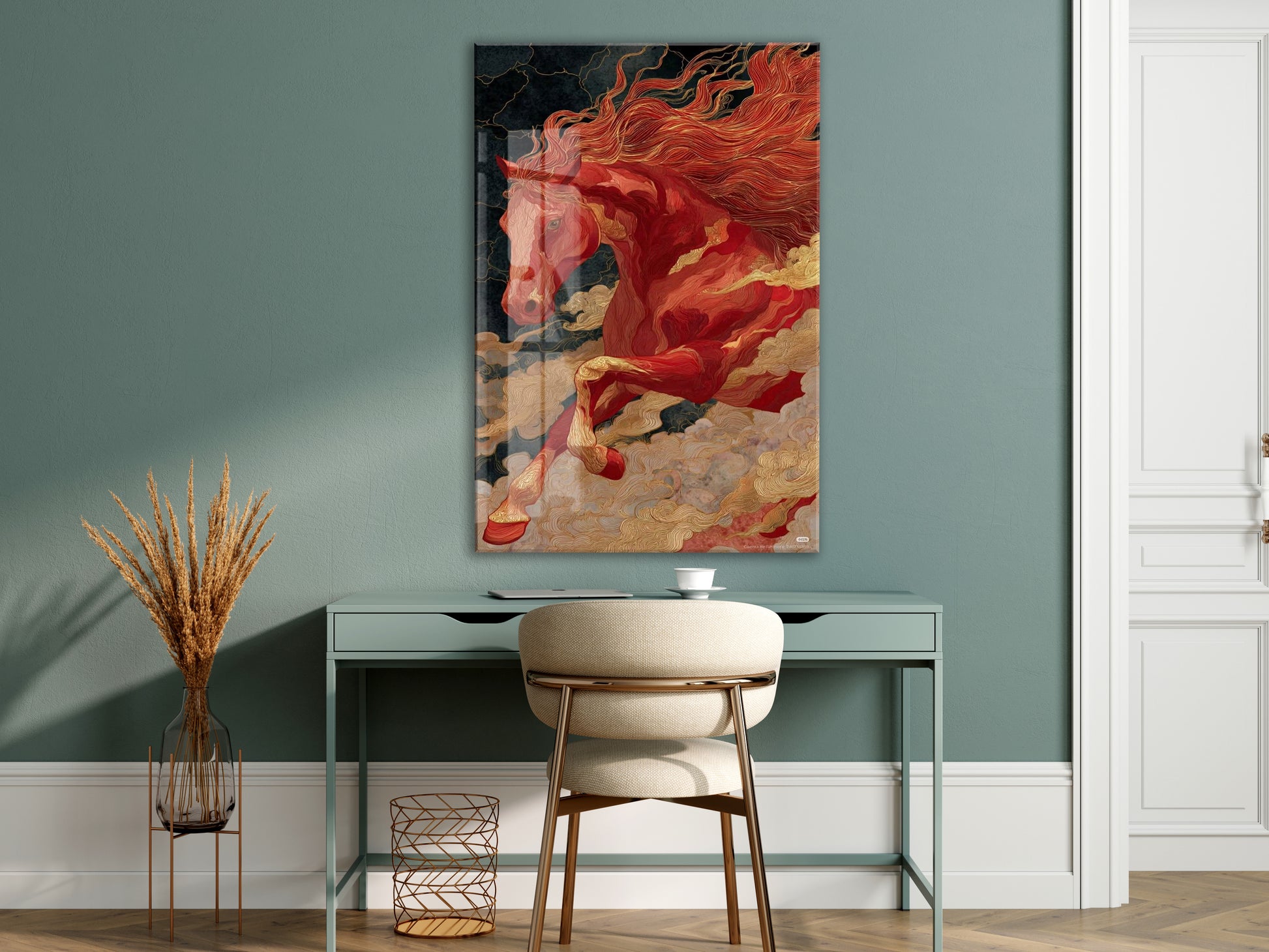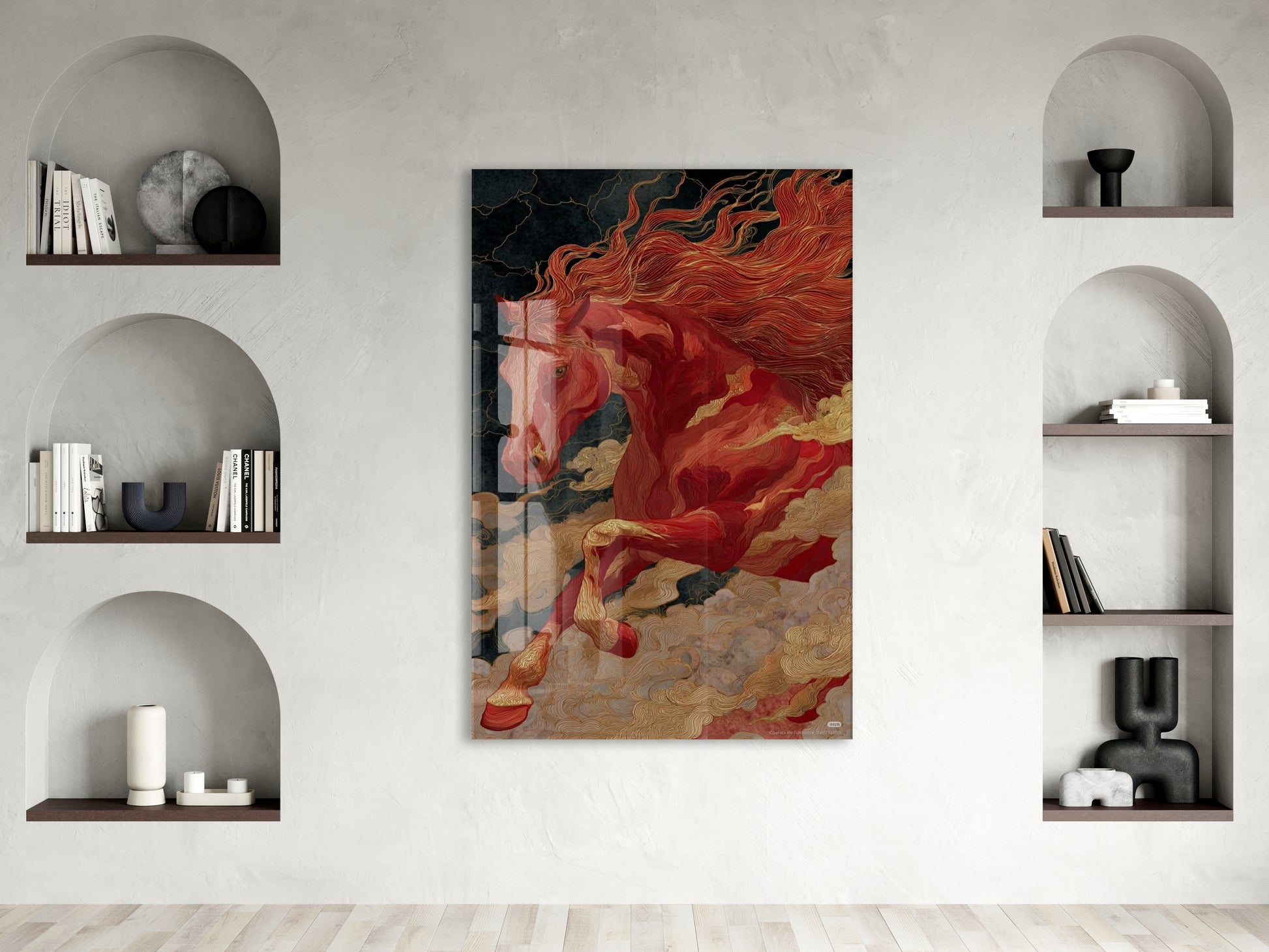 “Kızıl Rüzgâr” – Mitolojik At Figürlü Cam Tablo - Peony068