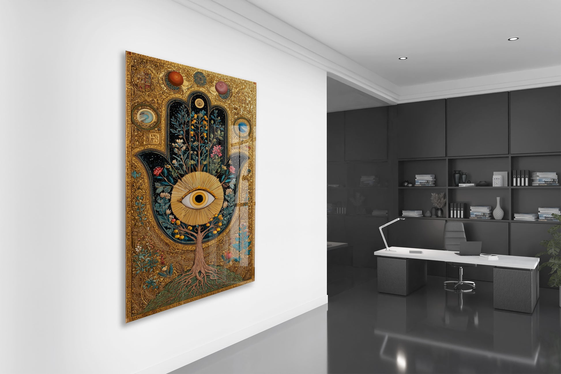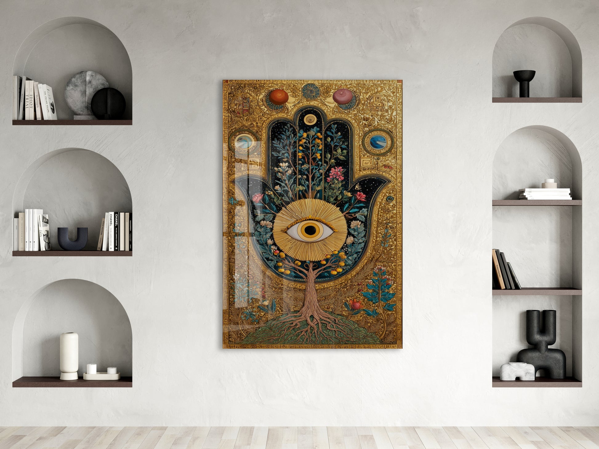 Ürünlerimiz askı aparatı ile birlikte gönderilir ve tek çivi ile kolayca duvara monte edilebilir. Duvara asıldığında tablo, estetik bir görünüm sağlayacak şekilde duvardan yaklaşık 2 cm önde durur ve mekâna modern bir derinlik kazandırır.