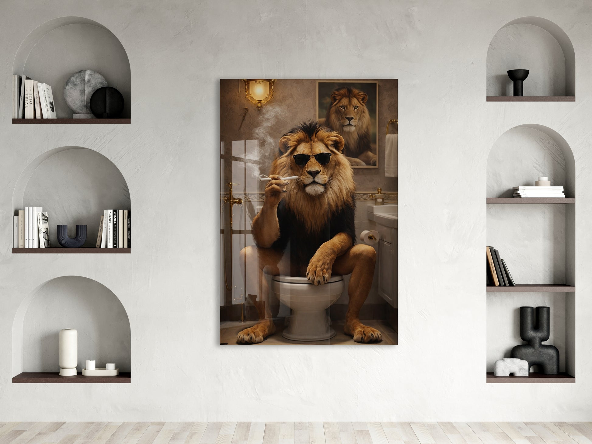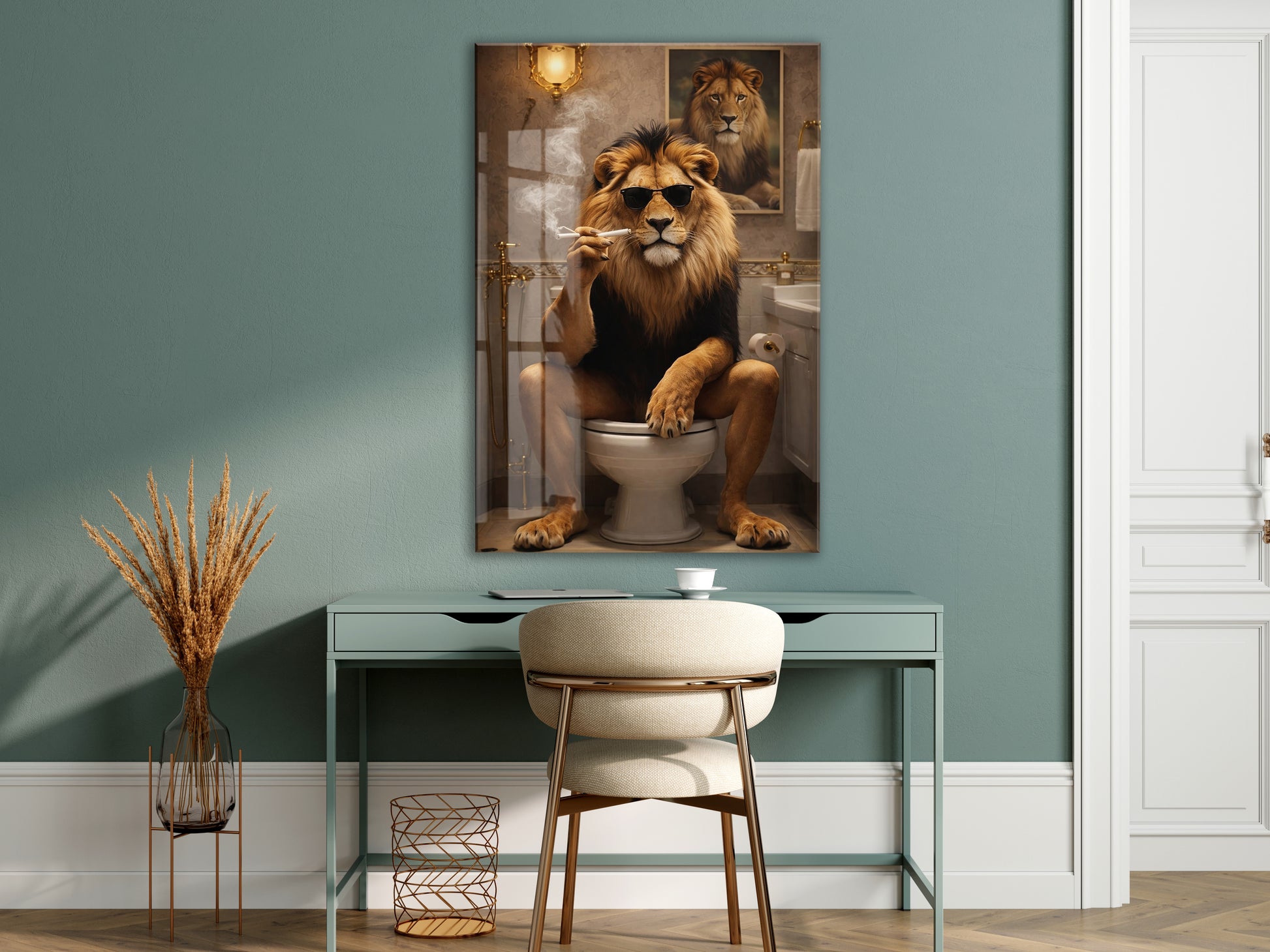 Cool Aslan Cam Tablo – Maskülen ve Eğlenceli Modern Duvar Sanatı- Peony086