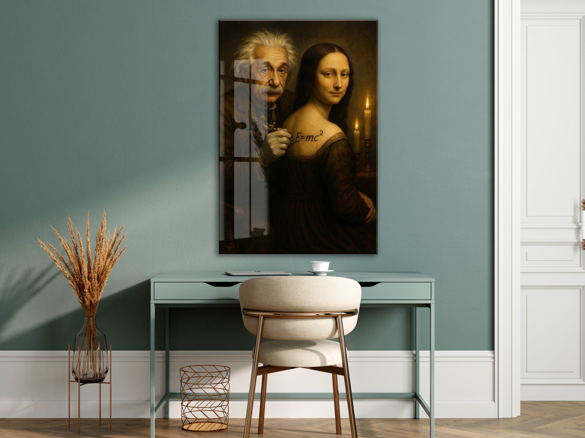 Modern Rönesans Cam Tablo – Bilimsel ve Sanatsal Duvar Dekoru - Peony090
