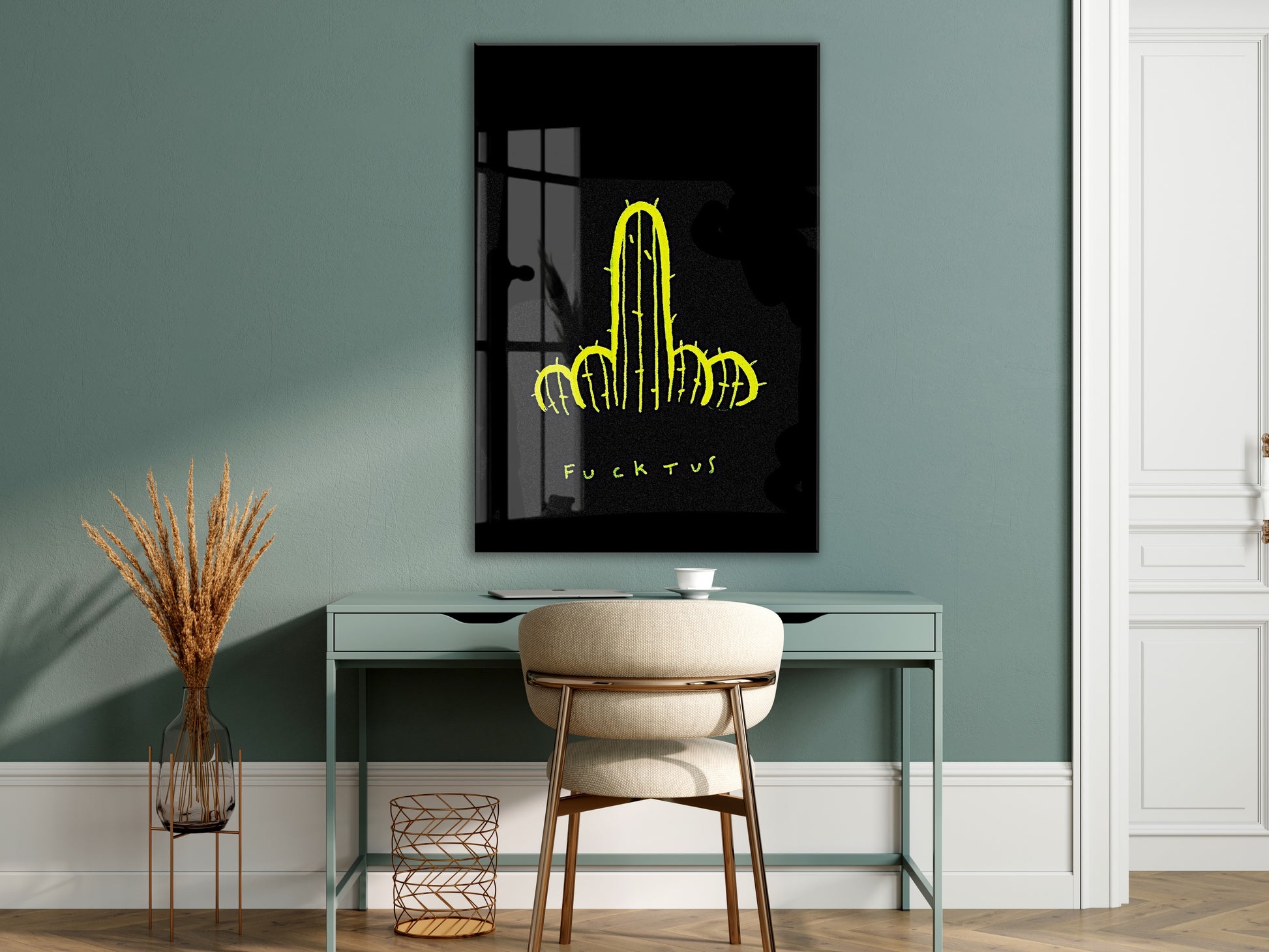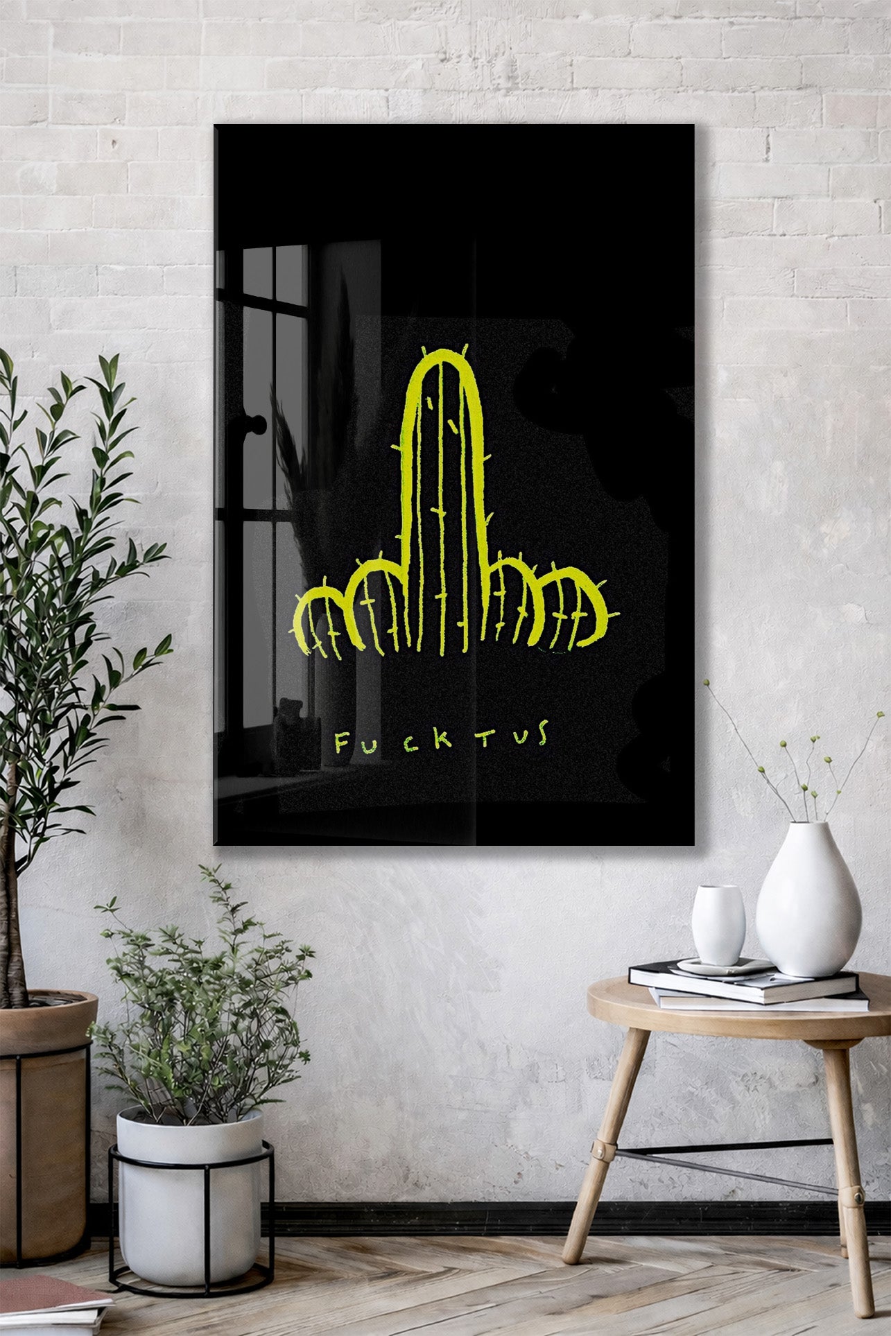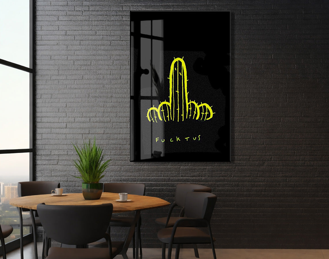 Underground Neon Kaktüs Cam Tablo – Genç Odası ve Bar Dekoru - Peony097