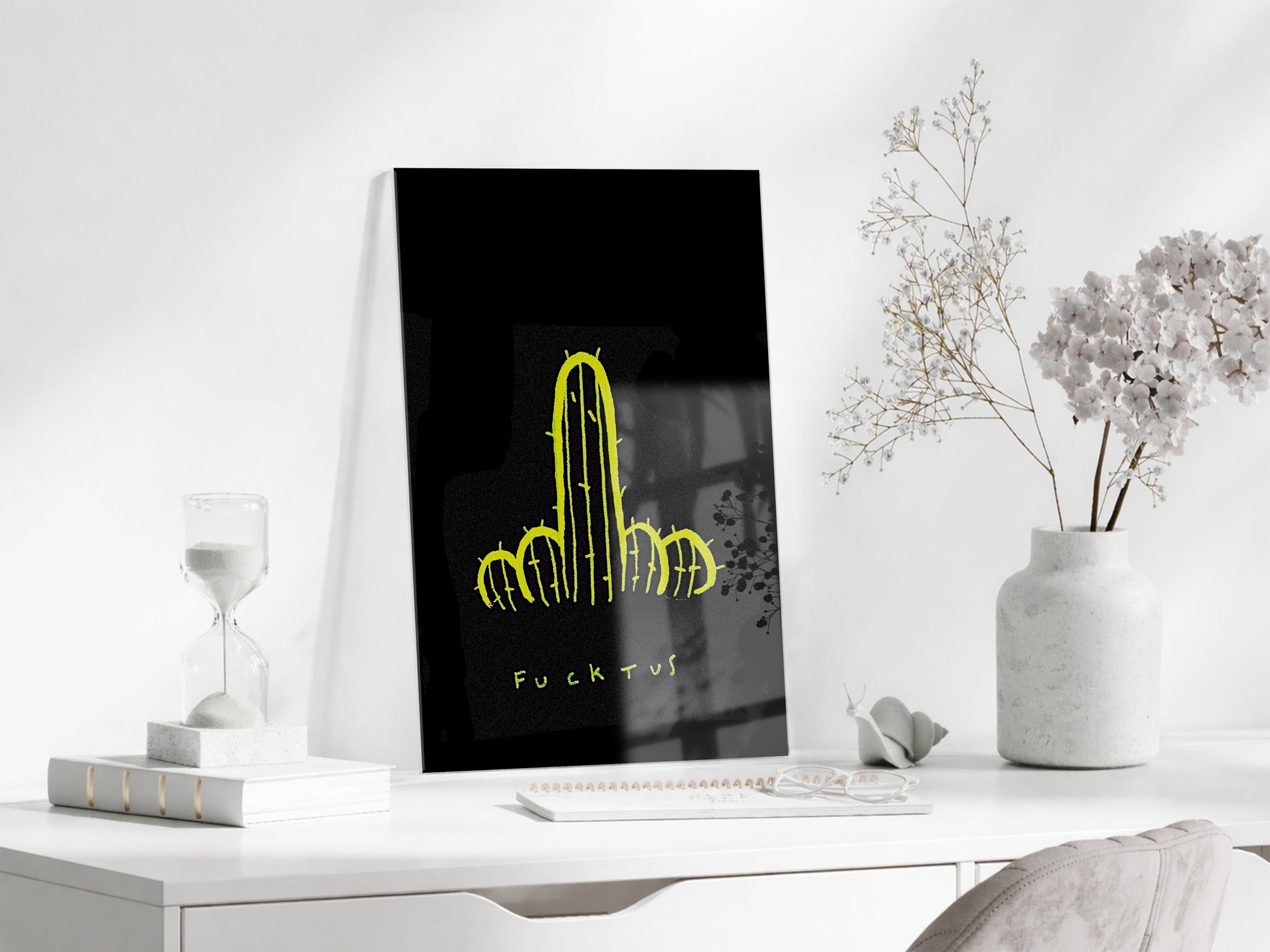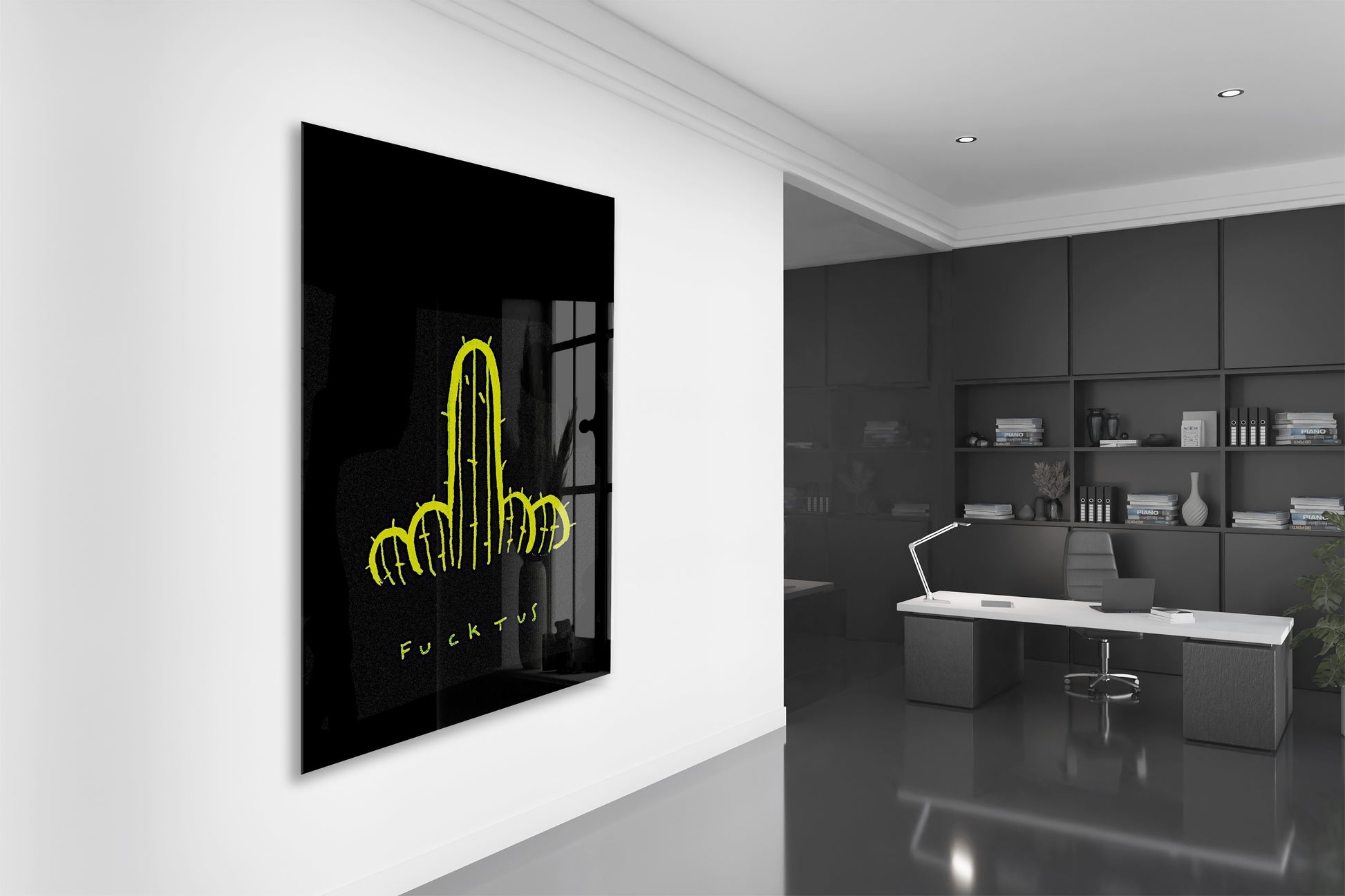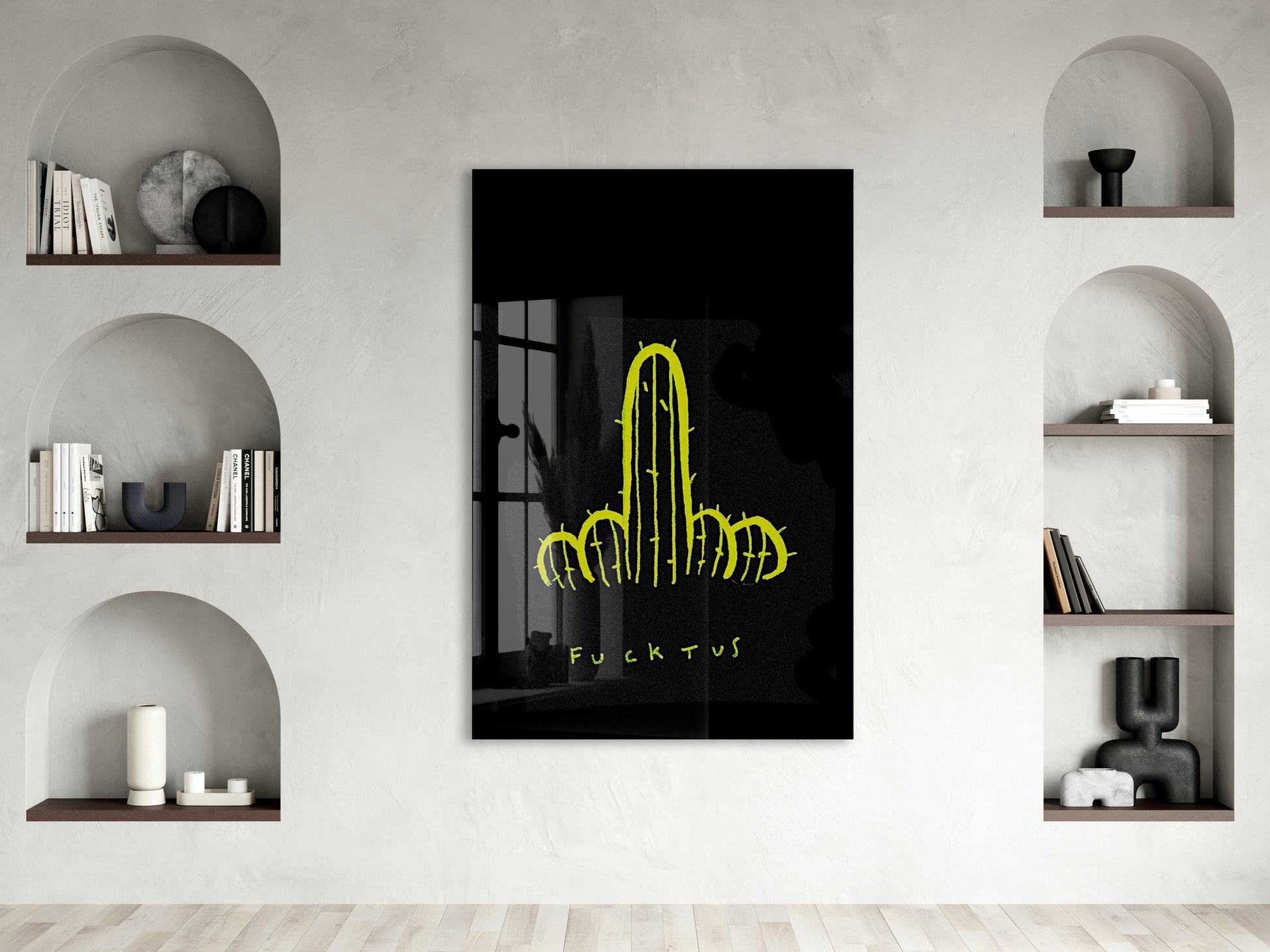 Underground Neon Kaktüs Cam Tablo – Genç Odası ve Bar Dekoru - Peony097