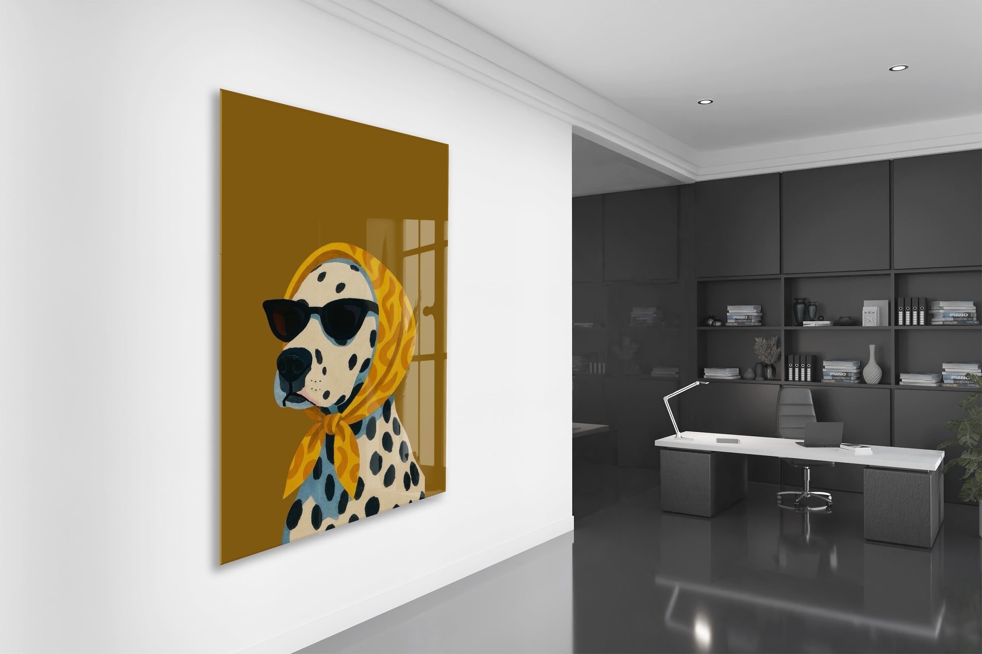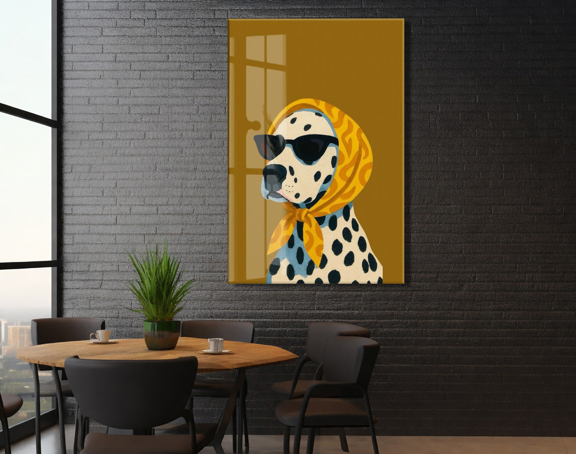 Retro Stil Köpek Tablosu – Hardal Zeminli Dekoratif Baskı - Peony126