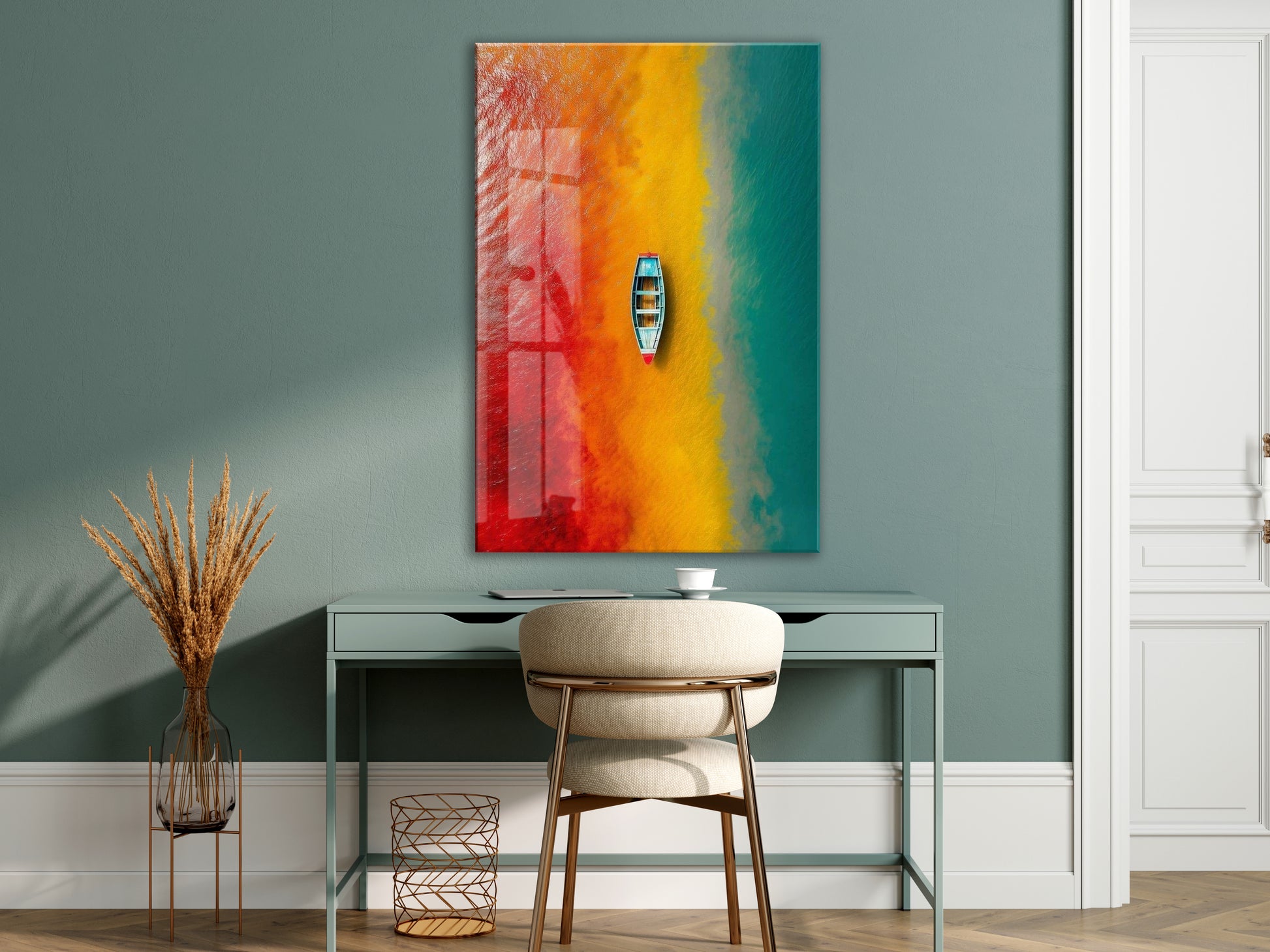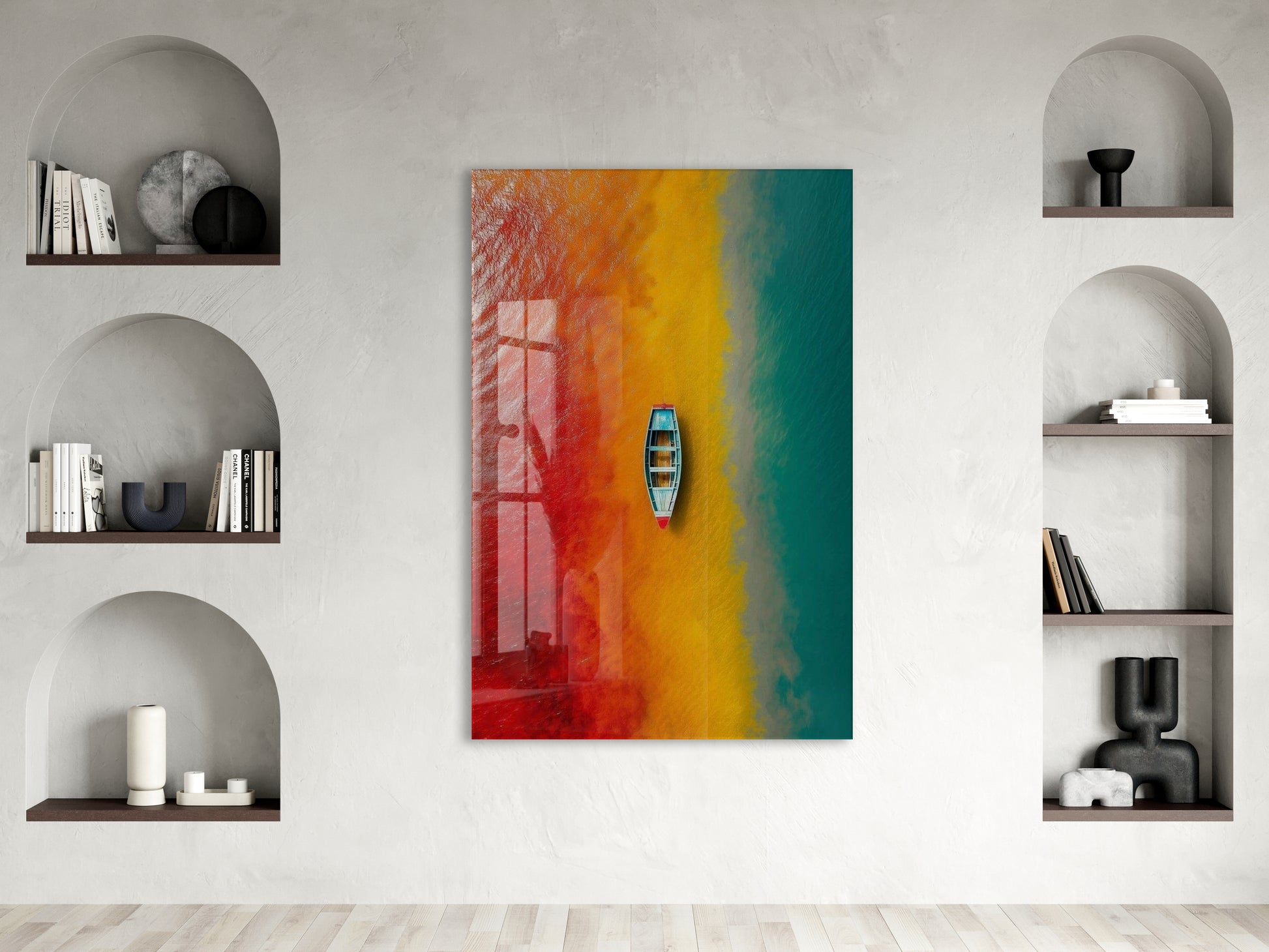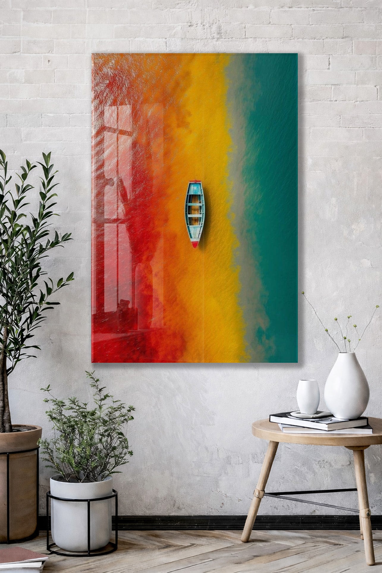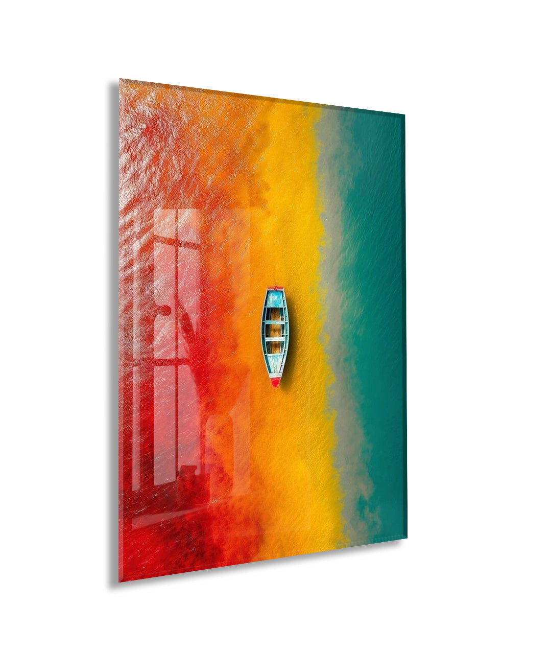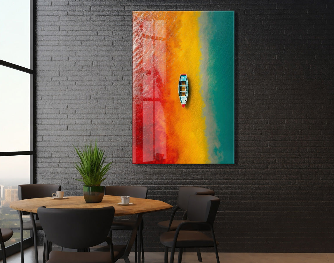 Kırmızı, Sarı ve Turkuaz Geçişli Deniz – Minimal Tekne Duvar Tablosu - Peony136