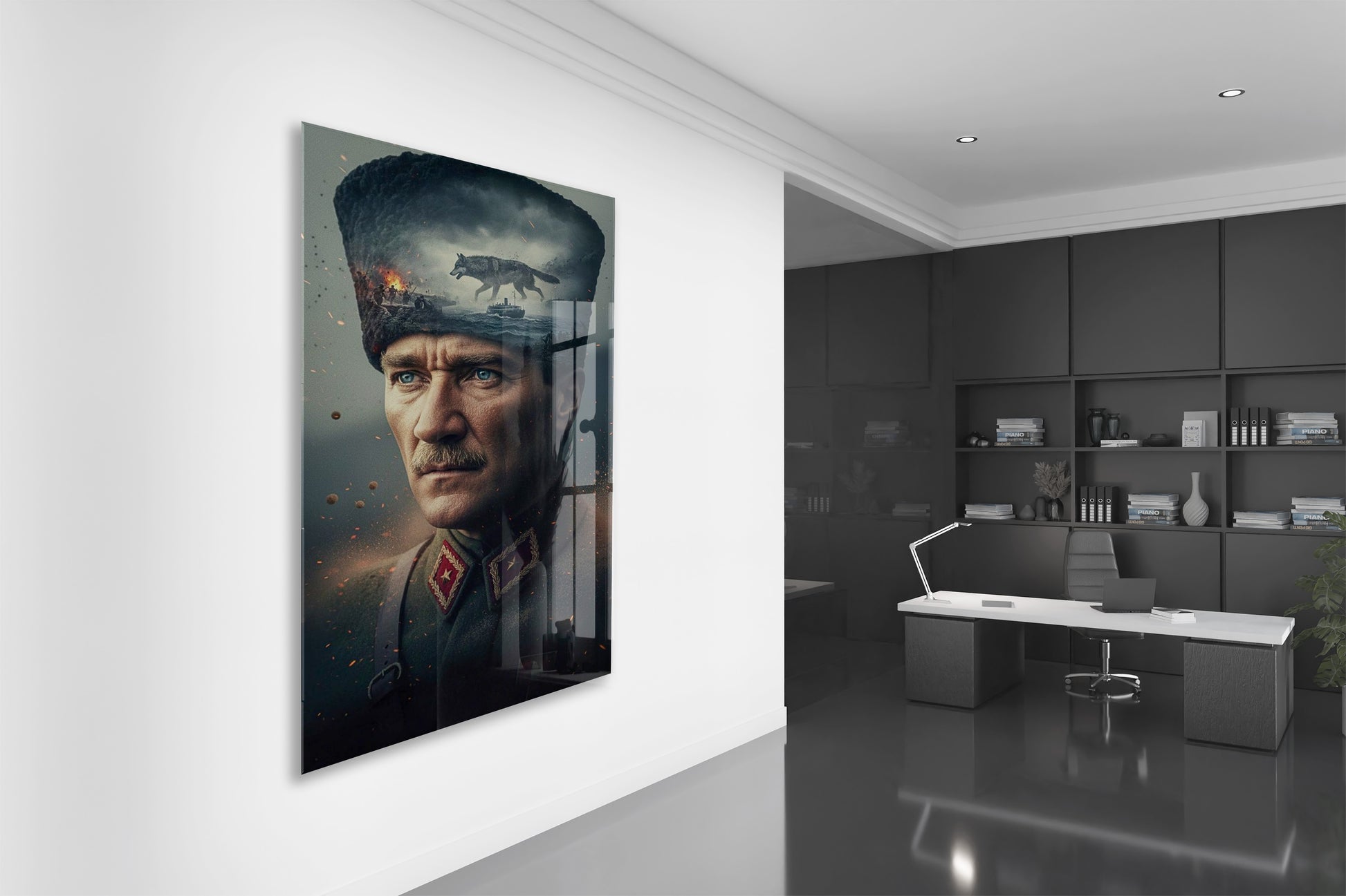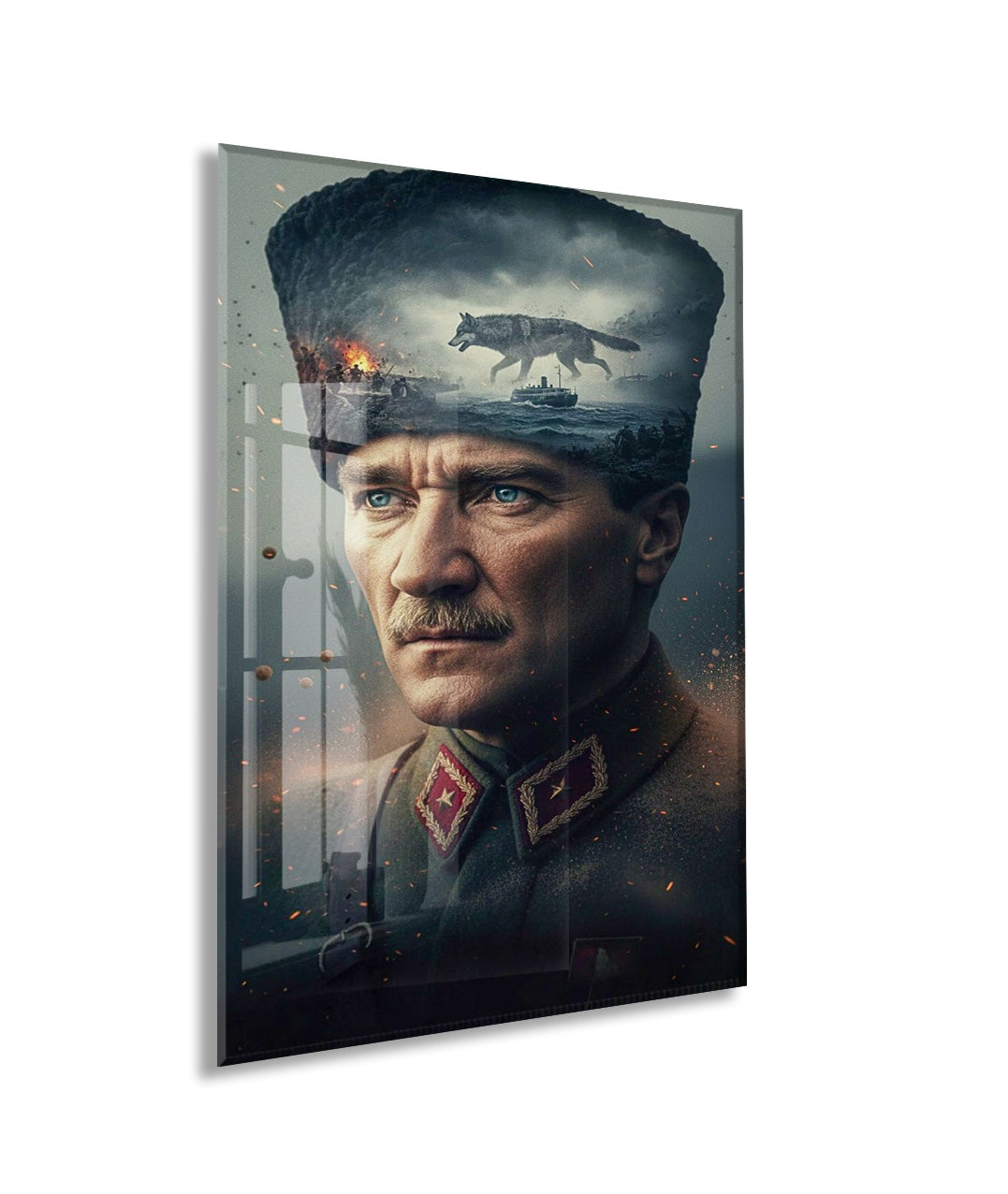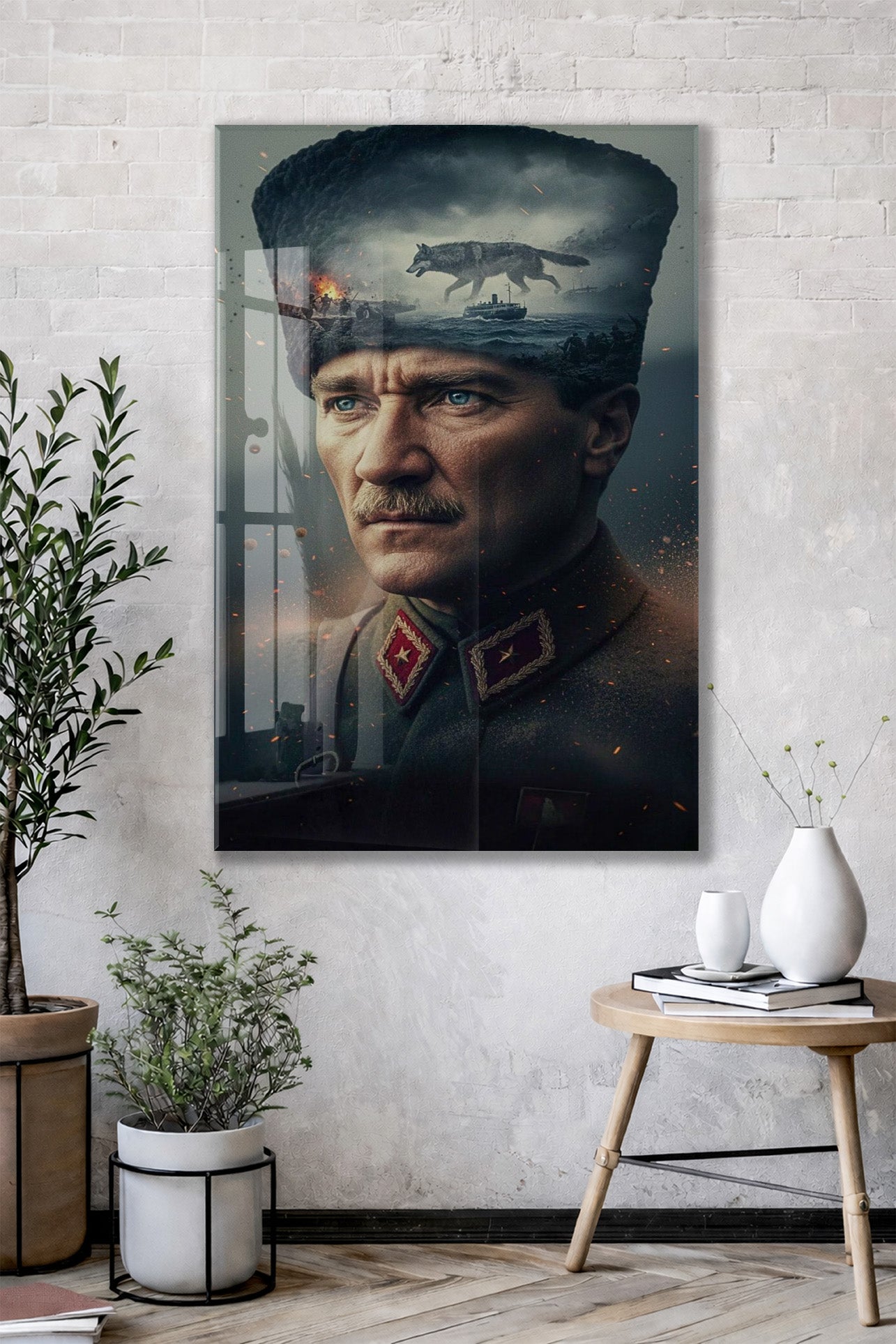 Atatürk Askeri Portre Cam Tablo – Kurtuluş Savaşı ve Liderlik Temalı 4 mm Temperli Cam -PeonyAta055