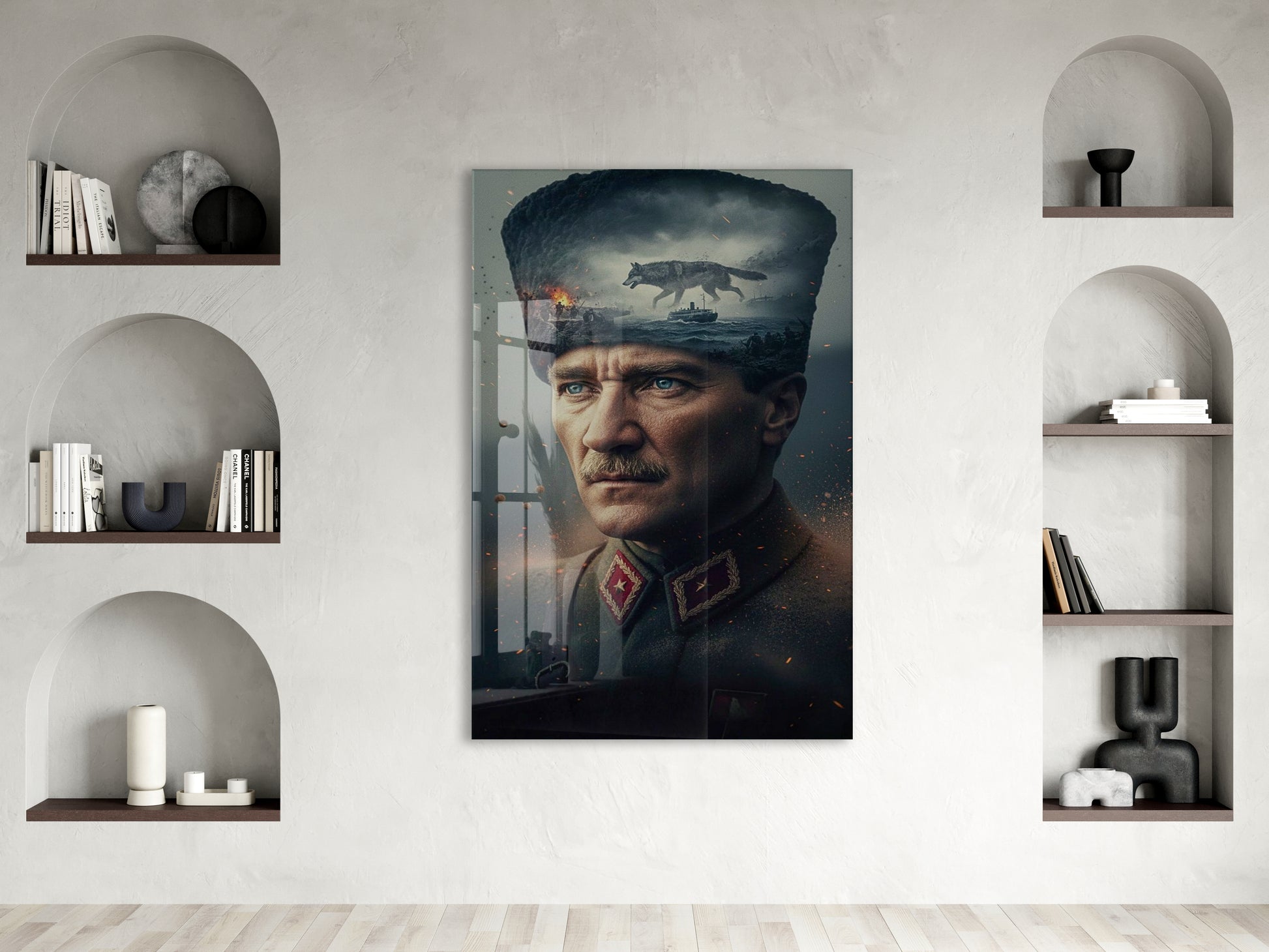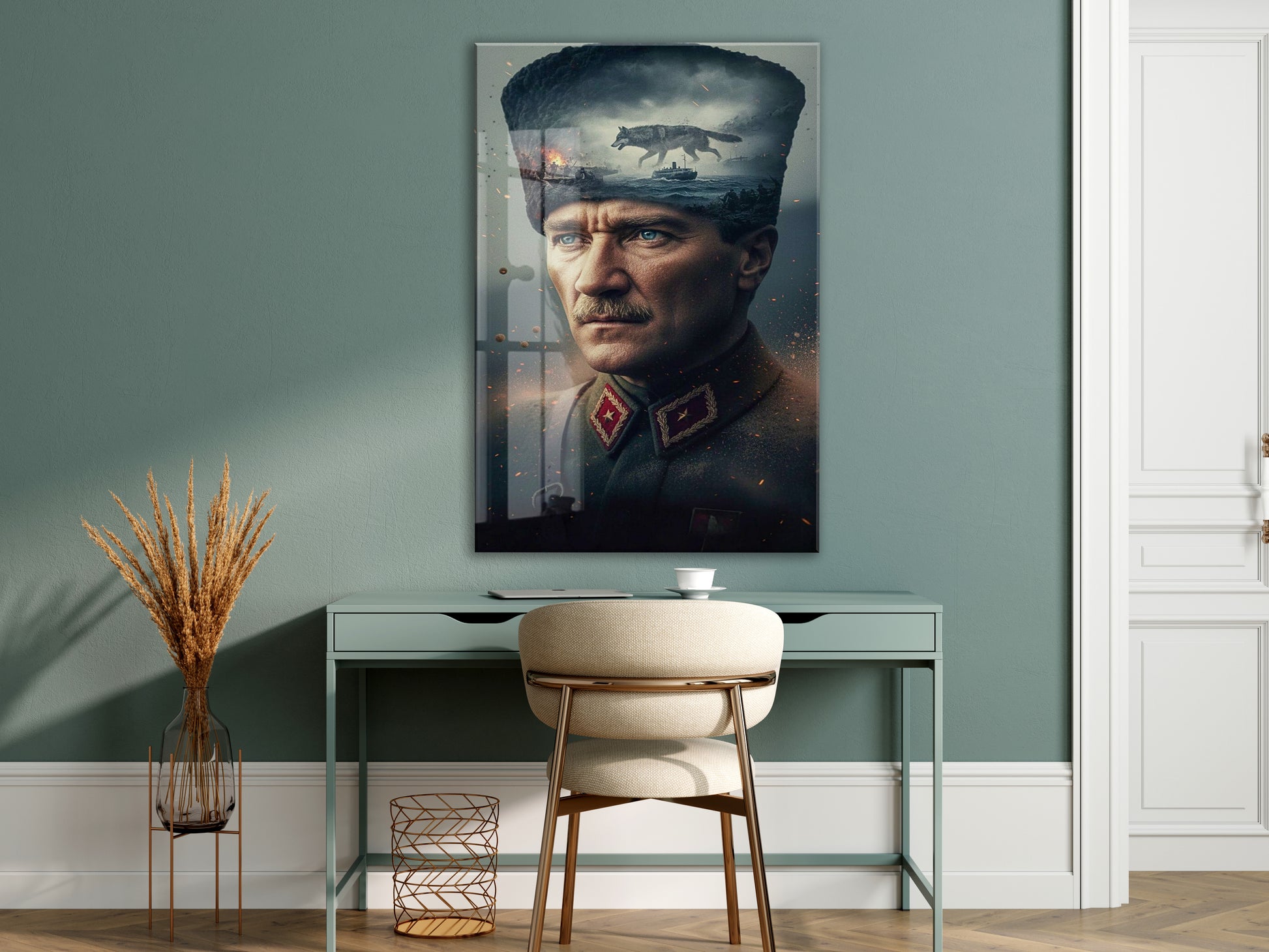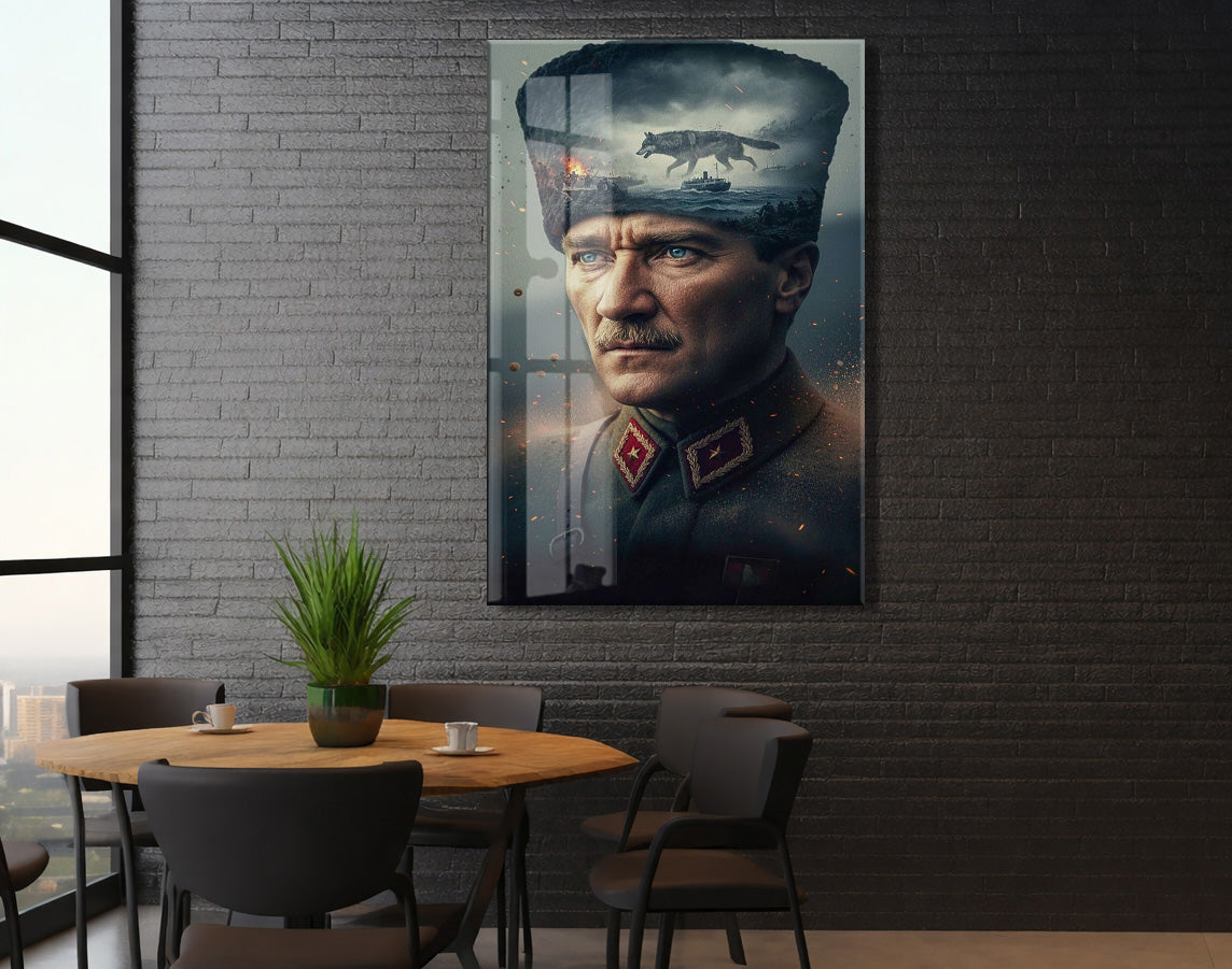 Atatürk Askeri Portre Cam Tablo – Kurtuluş Savaşı ve Liderlik Temalı 4 mm Temperli Cam -PeonyAta055