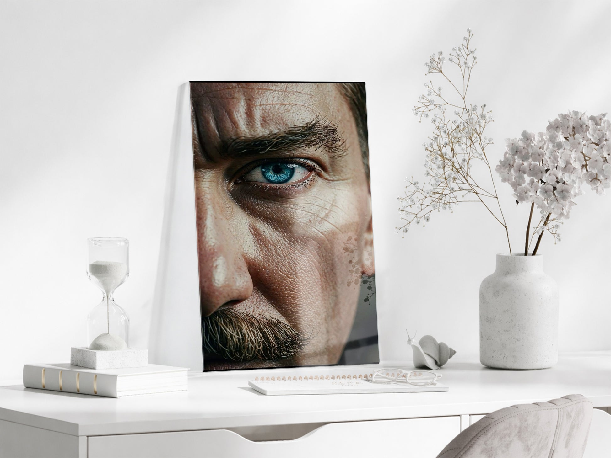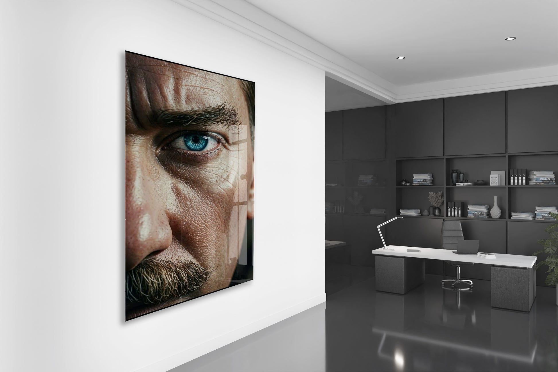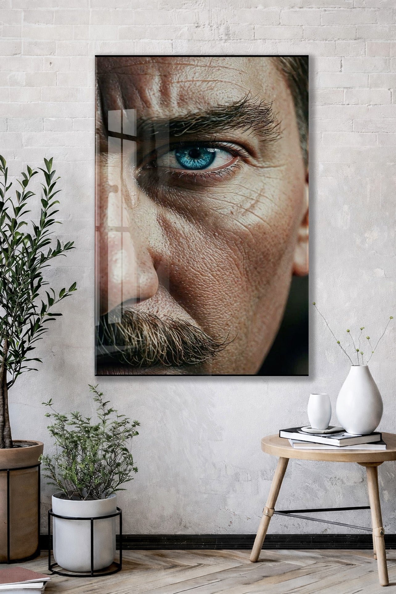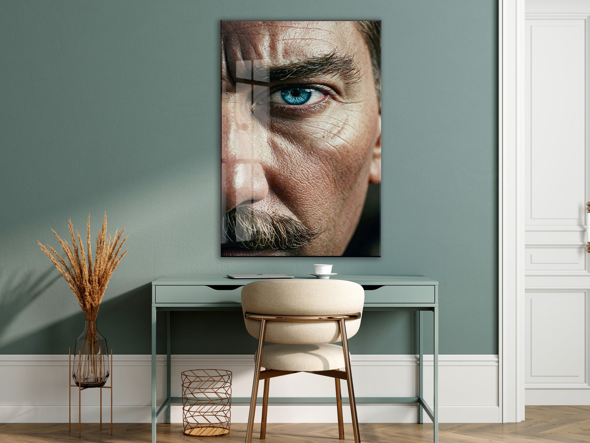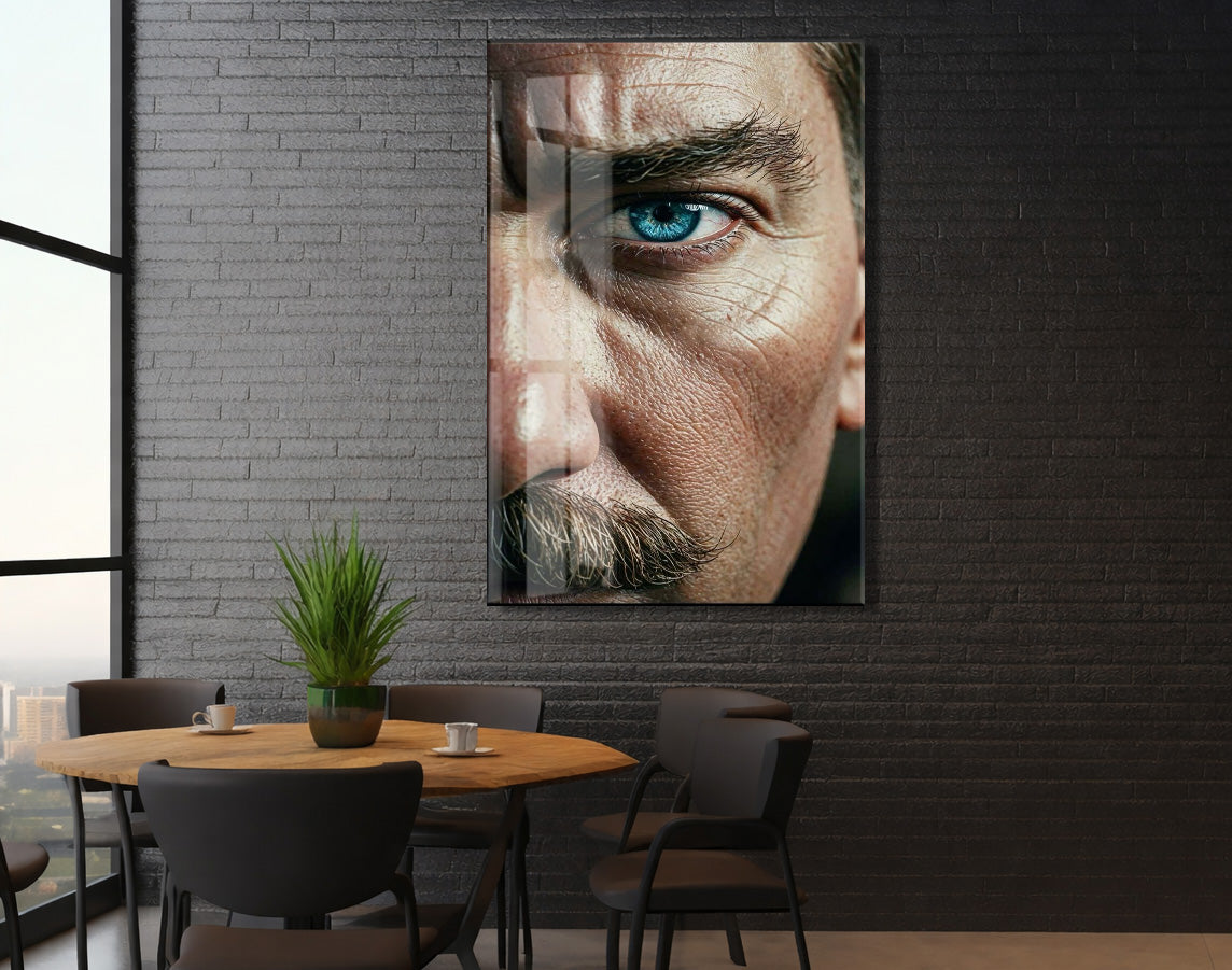 Atatürk Bakışı Cam Tablo – Yakın Plan Portre ile Cumhuriyetin Gücünü Yansıtan Duvar Sanatı -PeonyAta059