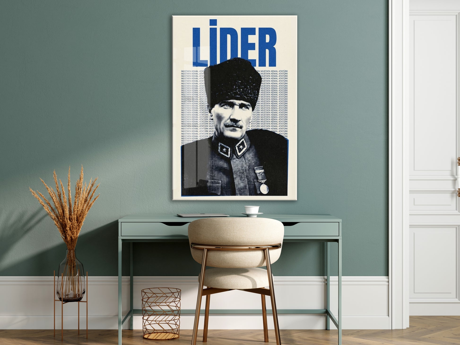 Mustafa Kemal Atatürk Lider Cam Tablo – Vintage Tasarım Atatürk Duvar Dekoru -PeonyAta071