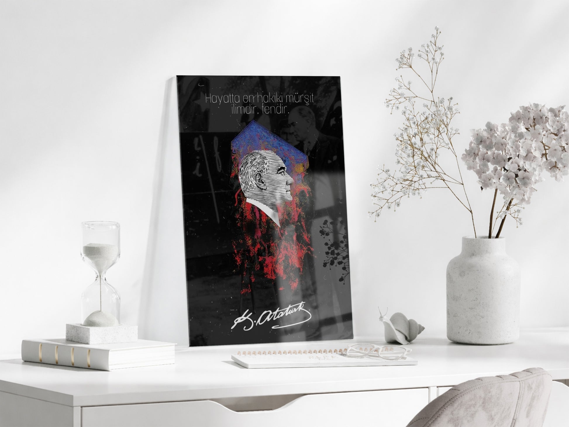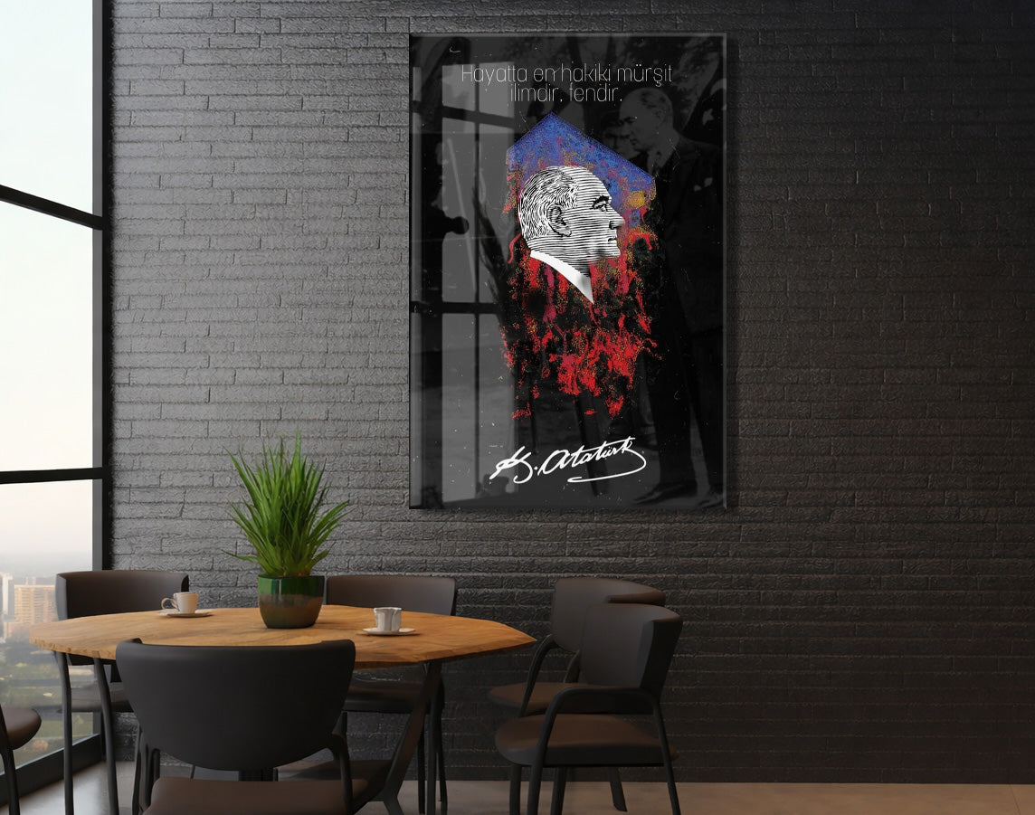 Mustafa Kemal Atatürk – “Hayatta En Hakiki Mürşit İlimdir” Cam Tablo -PeonyAta077