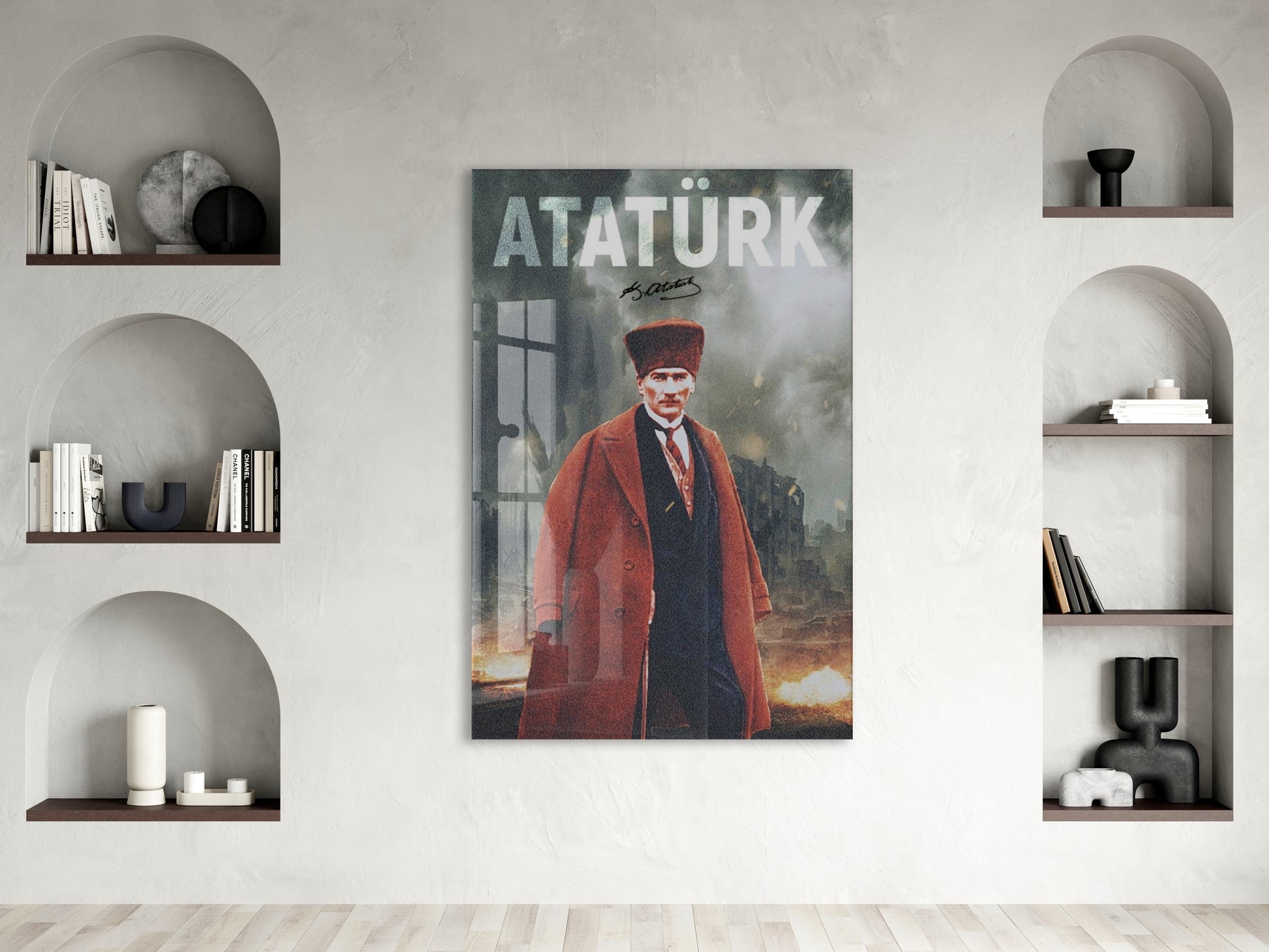 Mustafa Kemal Atatürk – Modern Poster Tarzı Cam Duvar Dekoru-PeonyAta078