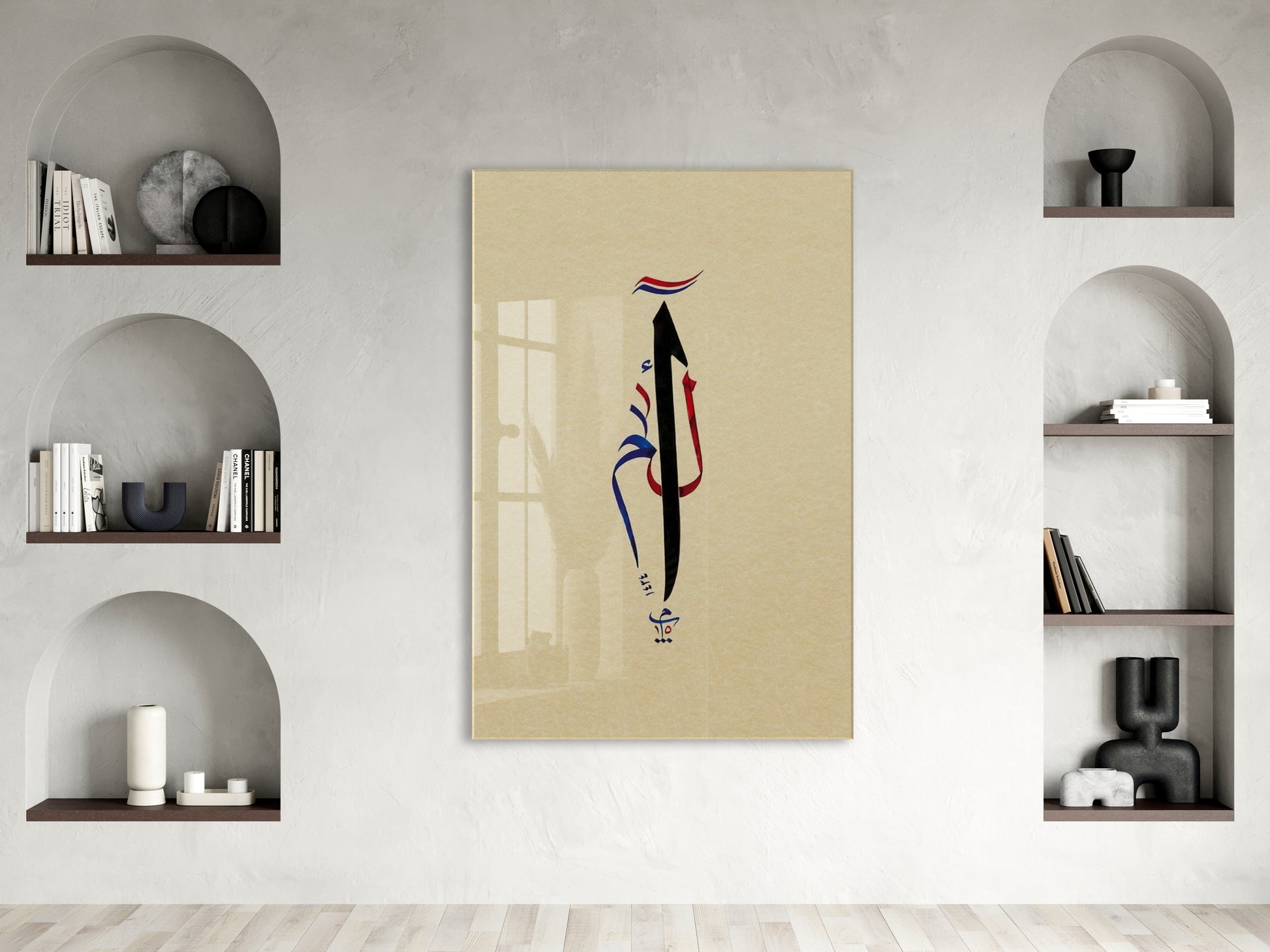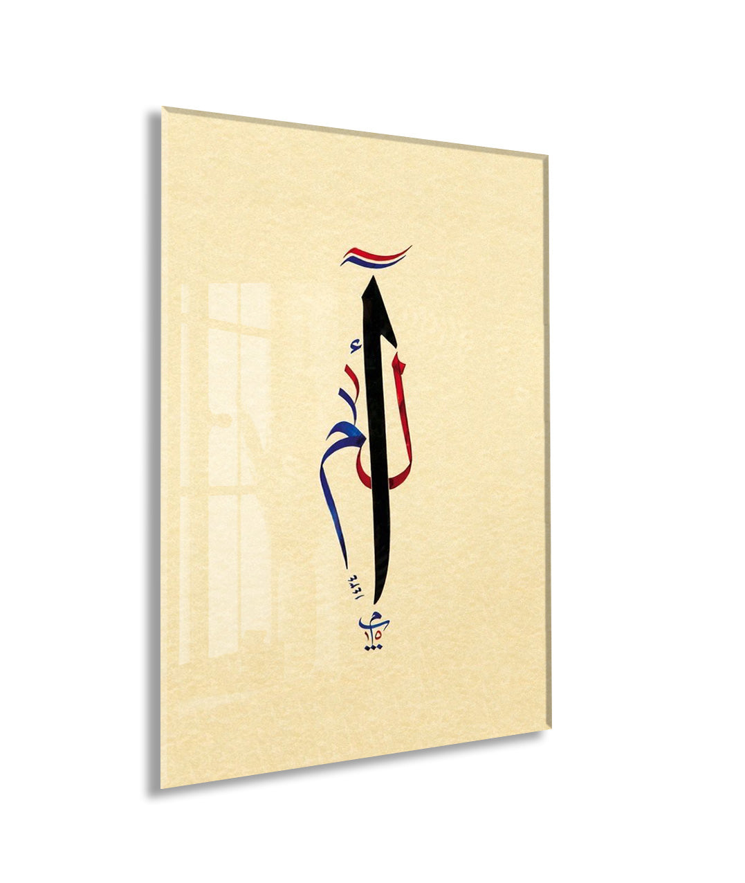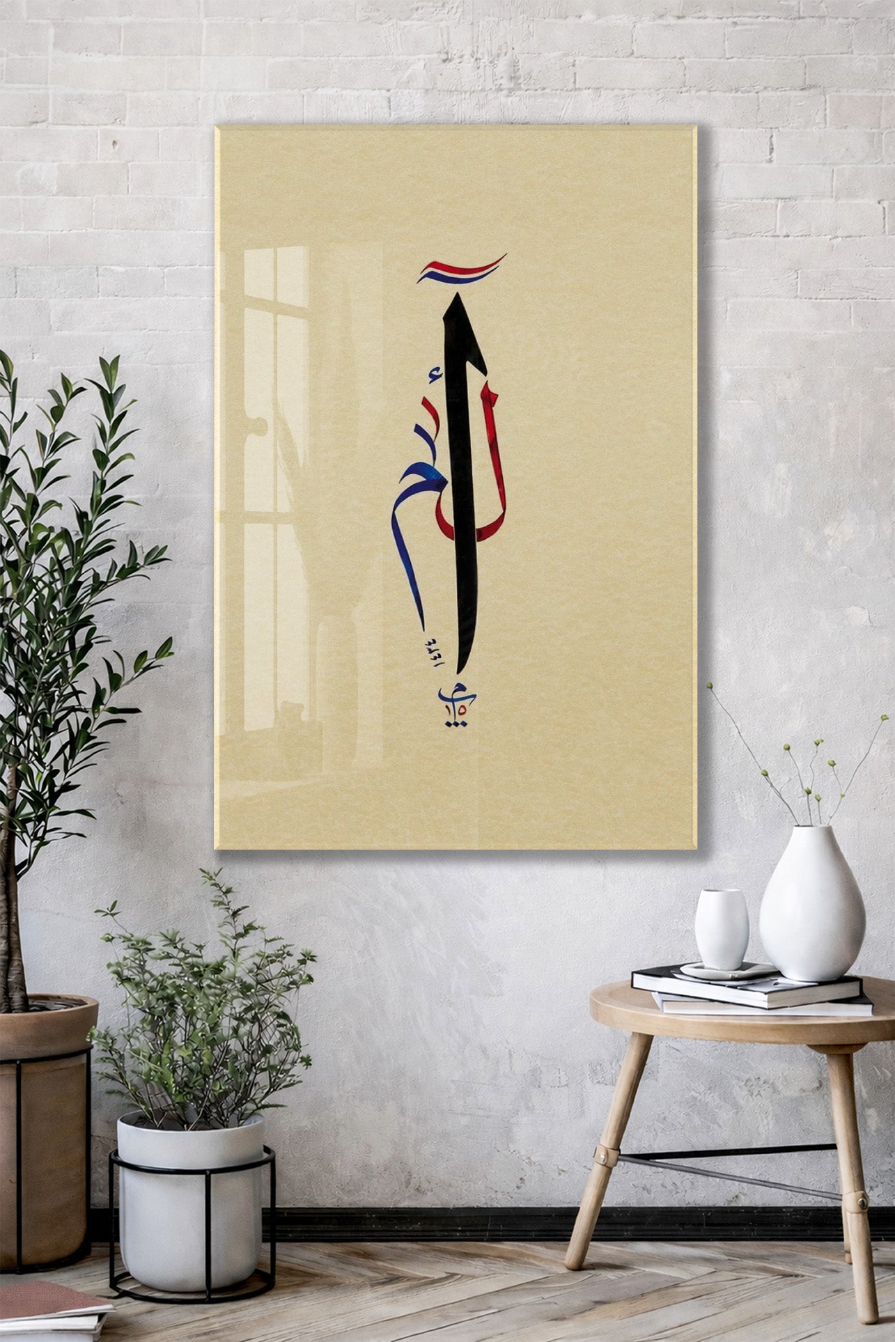 Elif , Minimal İslami Kaligrafi Tasarım, Bej Zemin Premium UV Baskı Temperli Cam Duvar Dekoru- PeonyDini0103