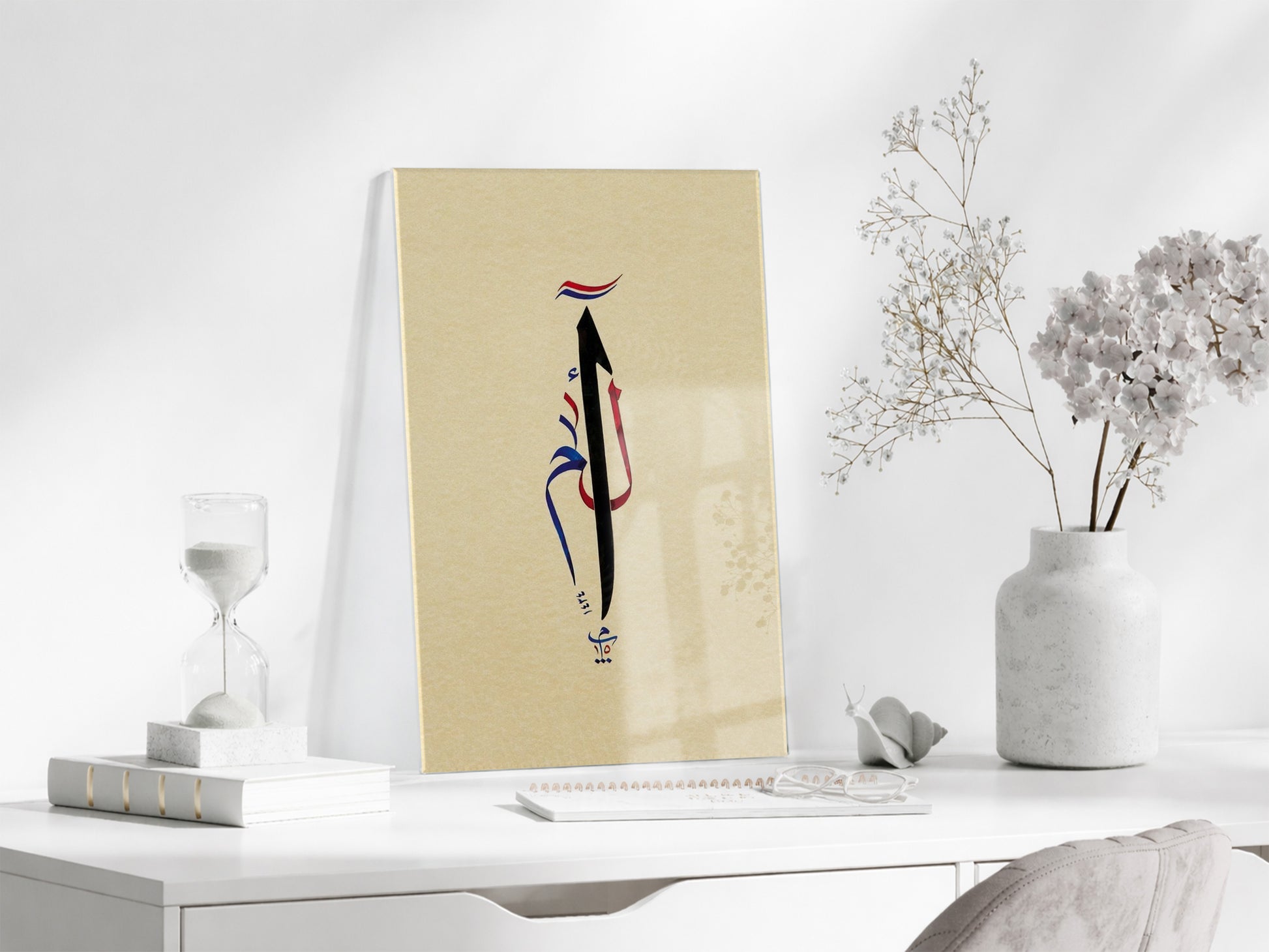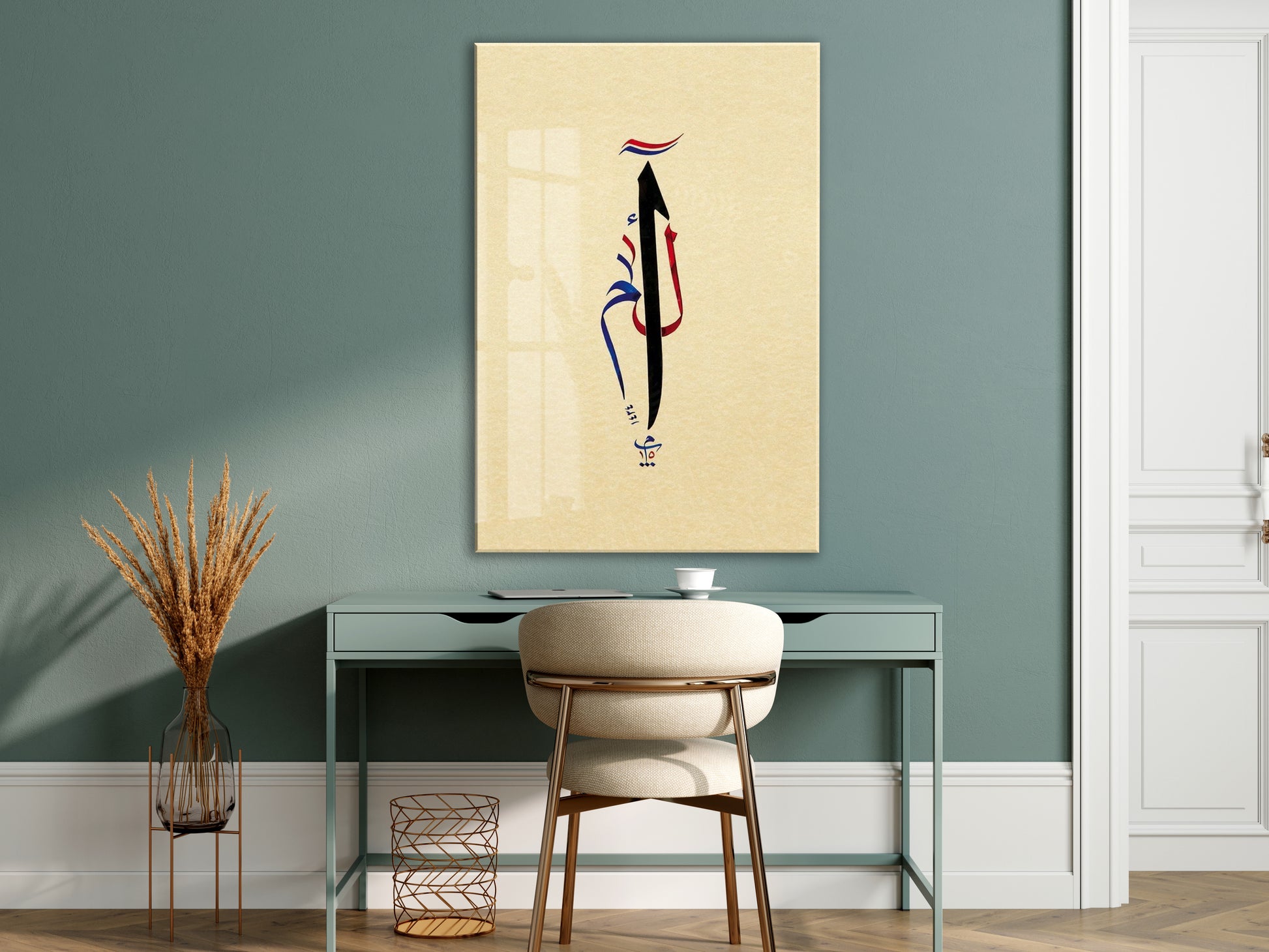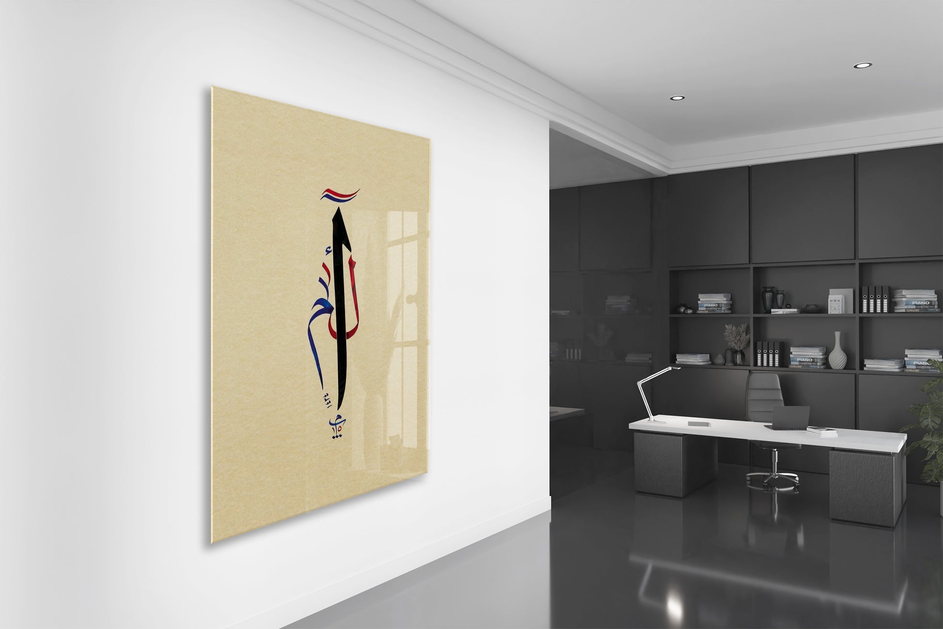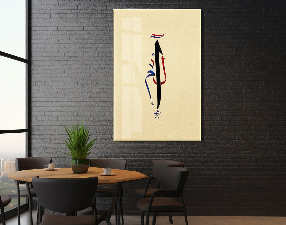 Elif , Minimal İslami Kaligrafi Tasarım, Bej Zemin Premium UV Baskı Temperli Cam Duvar Dekoru- PeonyDini0103