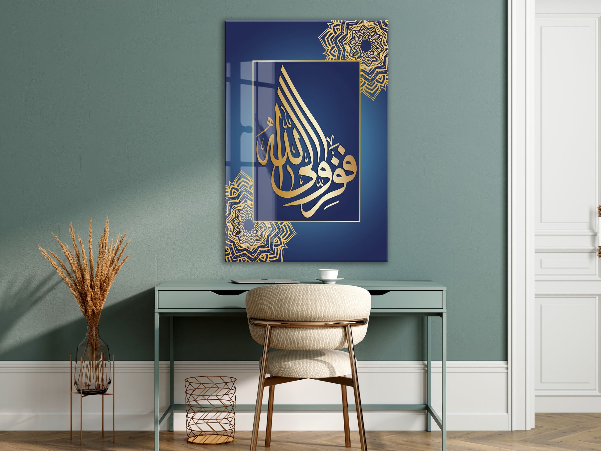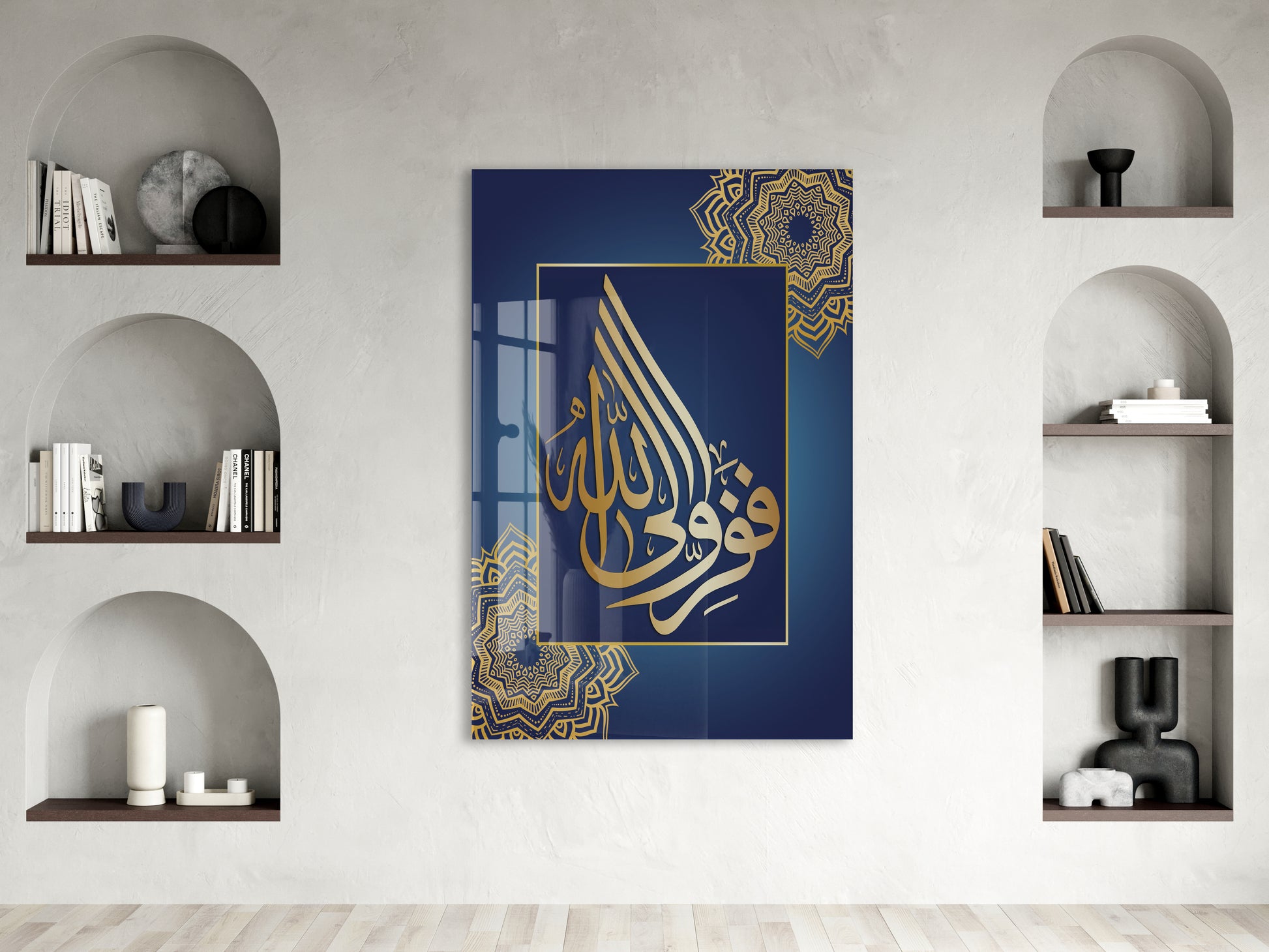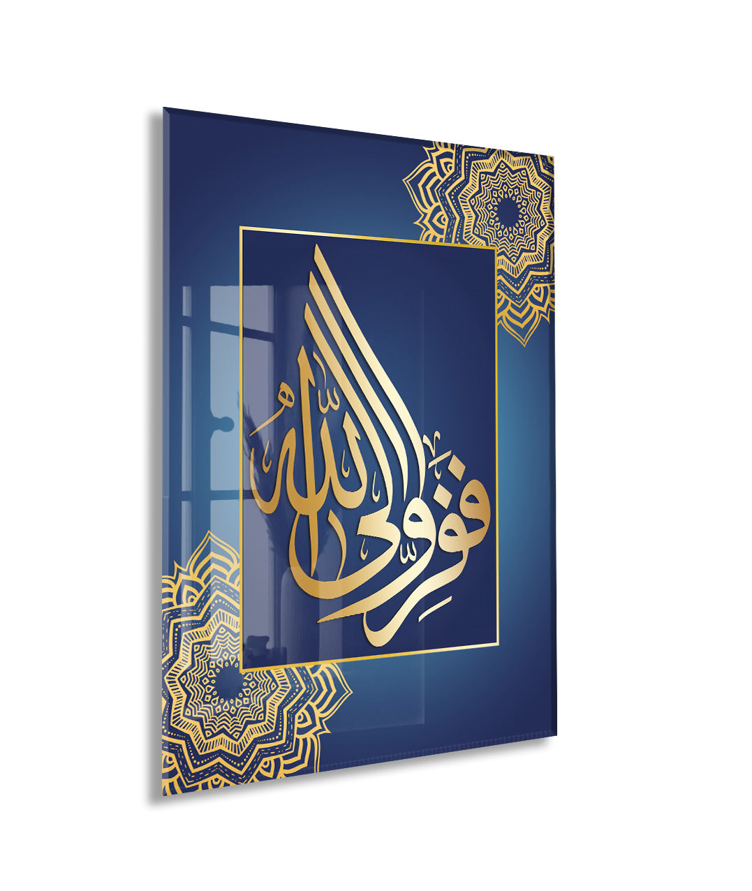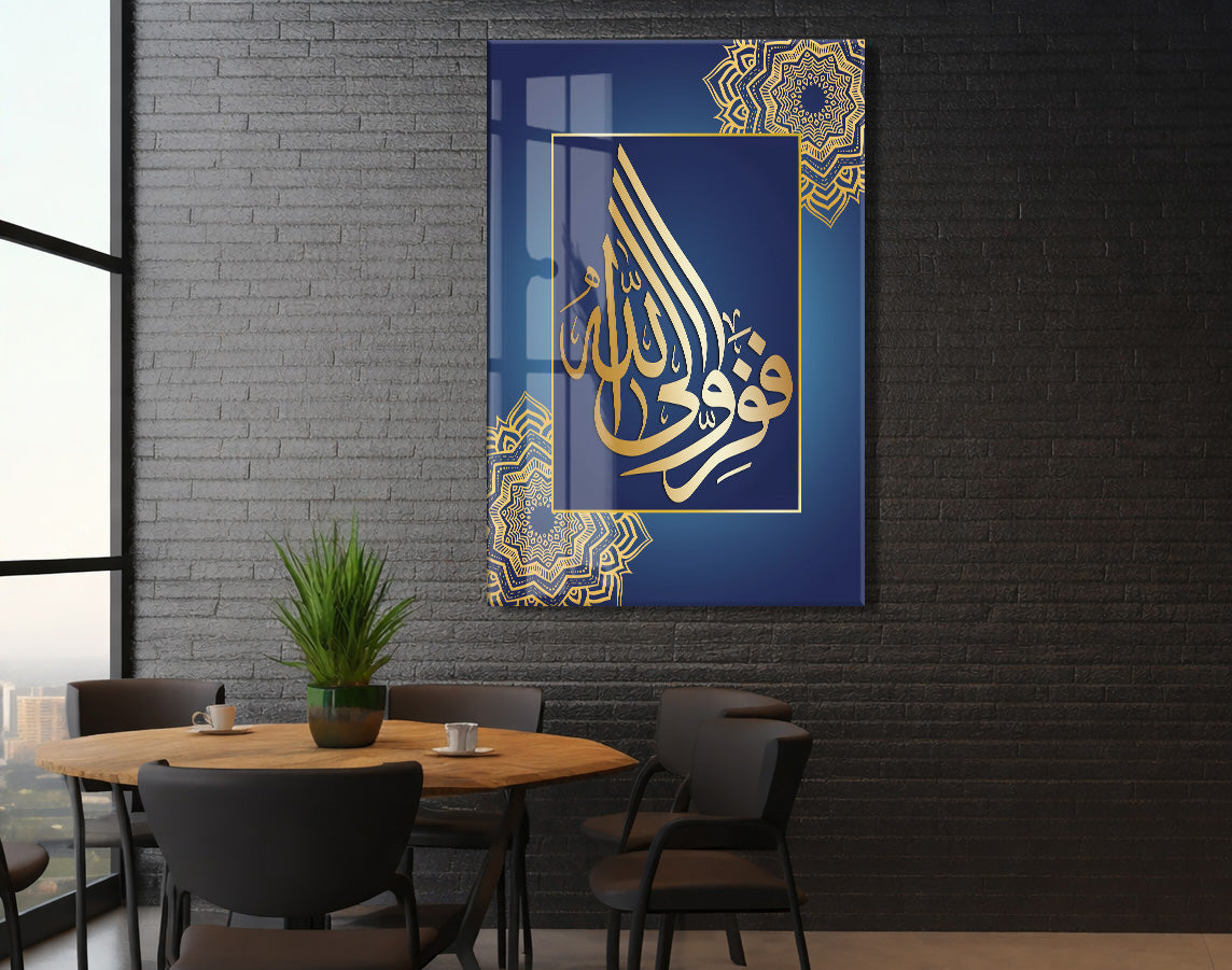 “Hasbiyallâh” Altın Hat Cam Tablo | Lacivert Zemin Manevi Duvar Dekoru - PeonyDini075