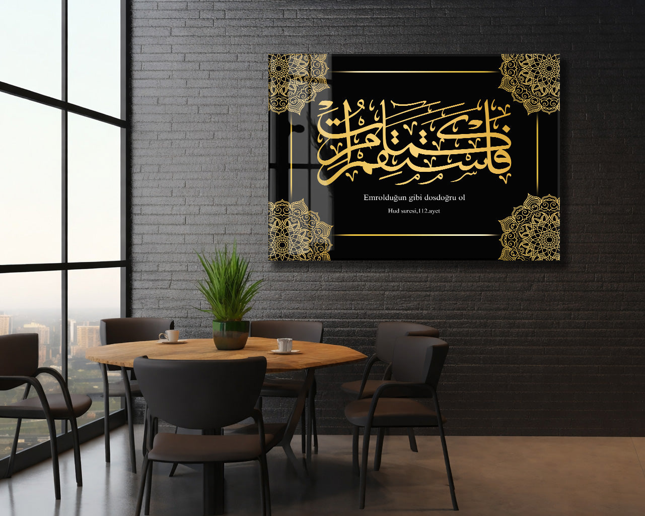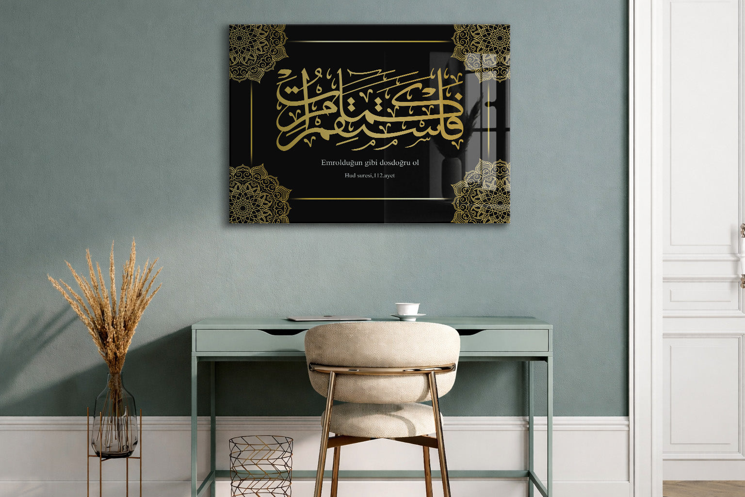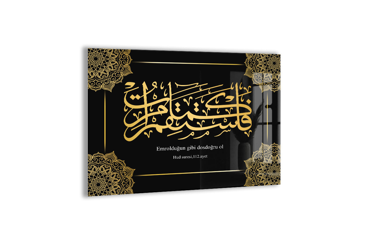 Emrolunduğun Gibi Dosdoğru Ol | Hud Suresi 112. Ayet Hat Sanatı Cam Tablo - PeonyDini077