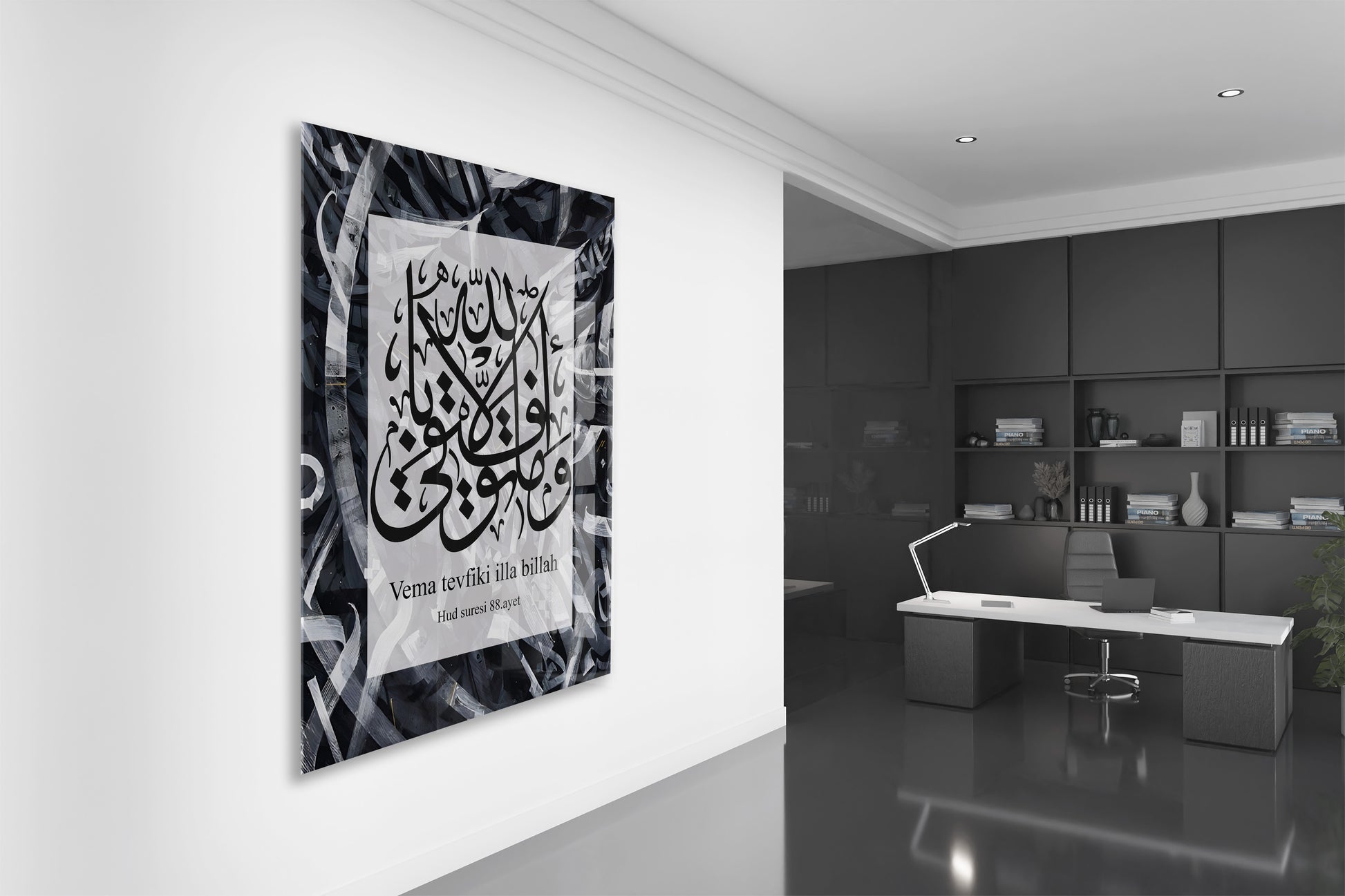 Ürünlerimiz askı aparatı ile birlikte gönderilir ve tek çivi ile kolayca duvara monte edilebilir. Duvara asıldığında tablo, estetik bir görünüm sağlayacak şekilde duvardan yaklaşık 2 cm önde durur ve mekâna modern bir derinlik kazandırır.
