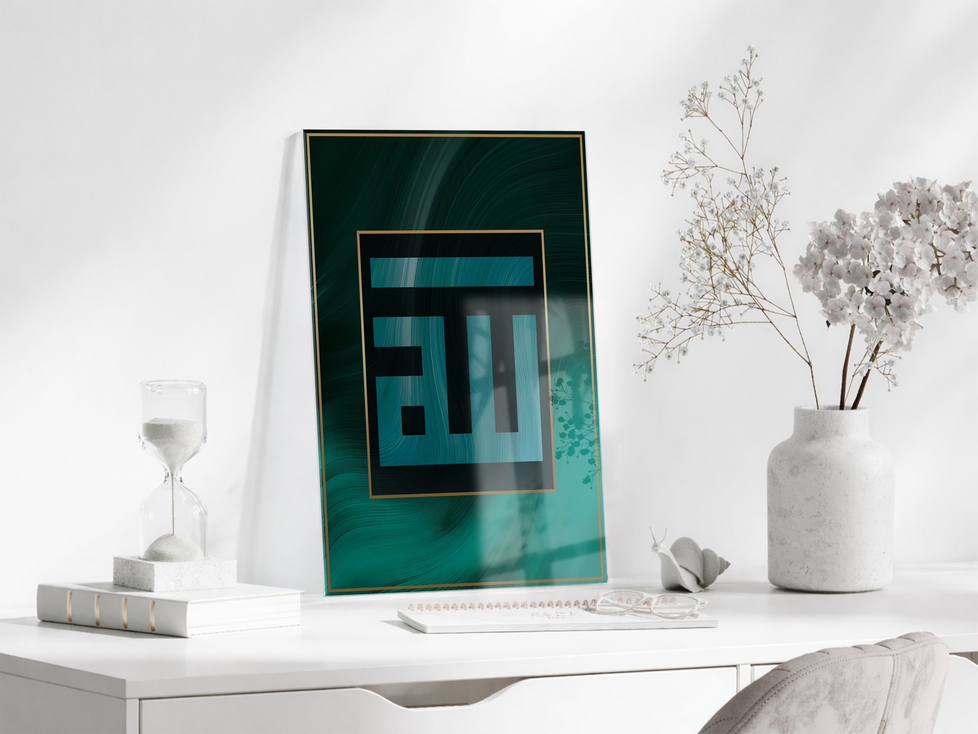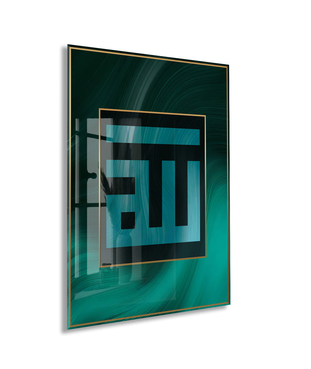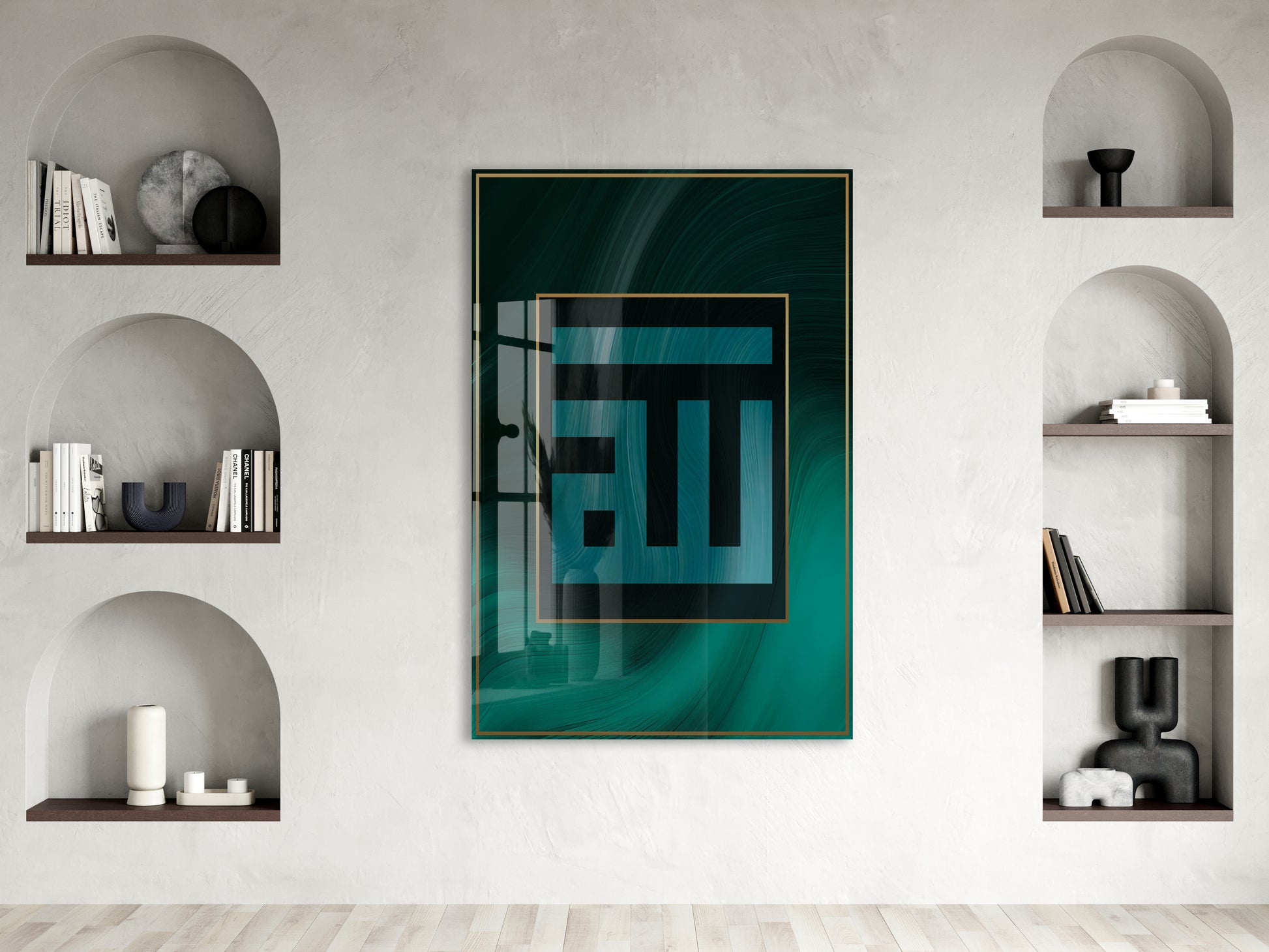 Zümrüt Yeşili Kare Kufi Allah Lafzı – Modern Cam Tablo - PeonyDini086