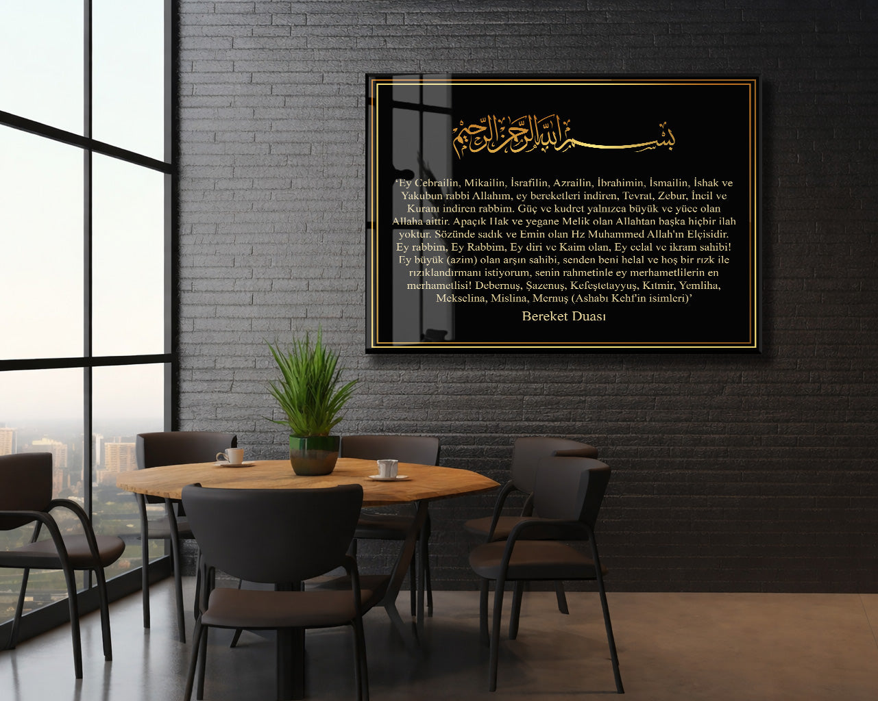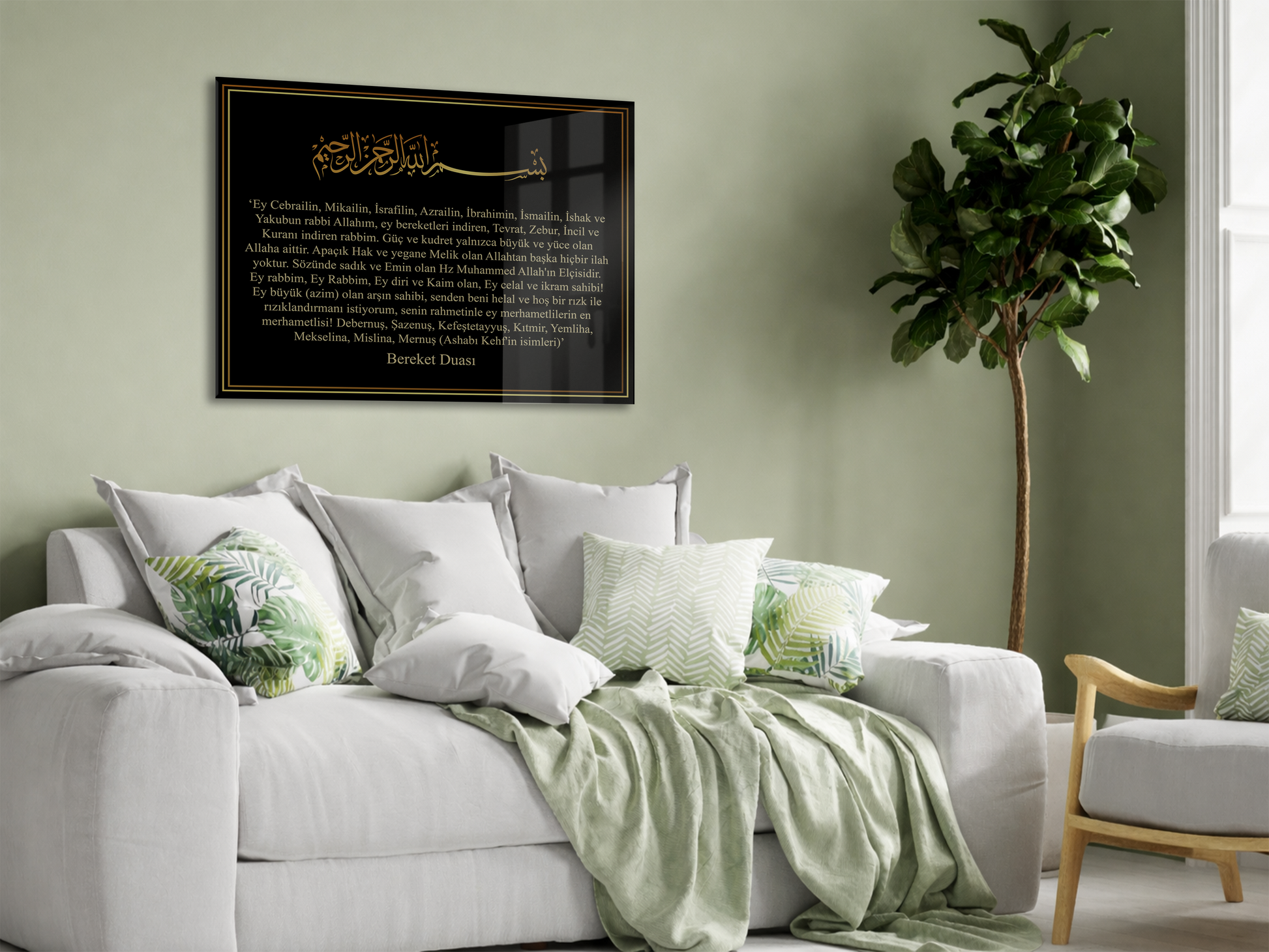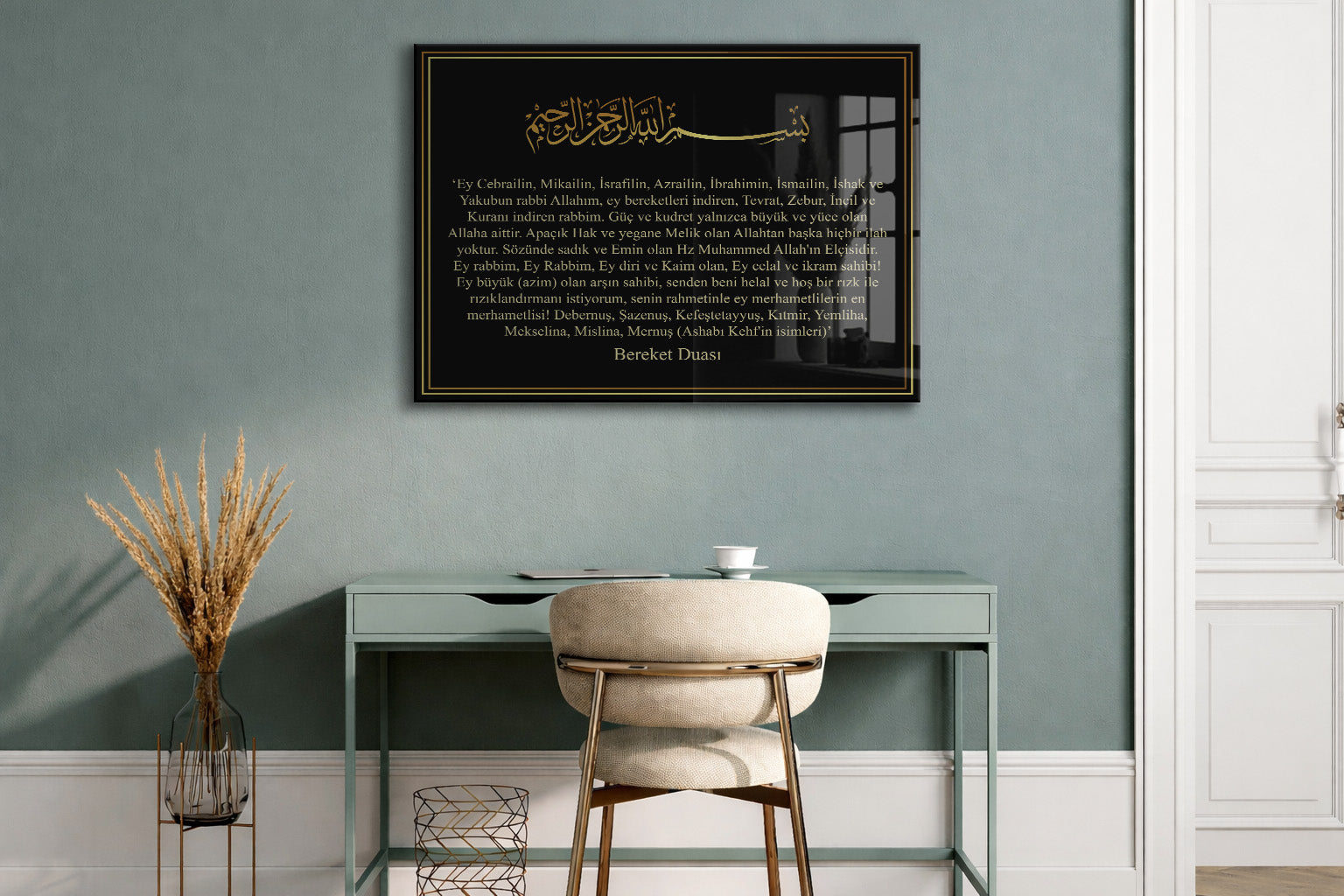 Bereket Duası Cam Tablo – Bismillahirrahmanirrahim Yazılı Altın Detaylı İslami Duvar Dekoru - PeonyDini091
