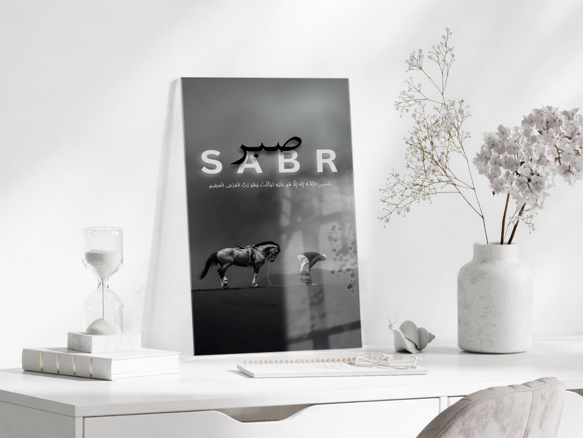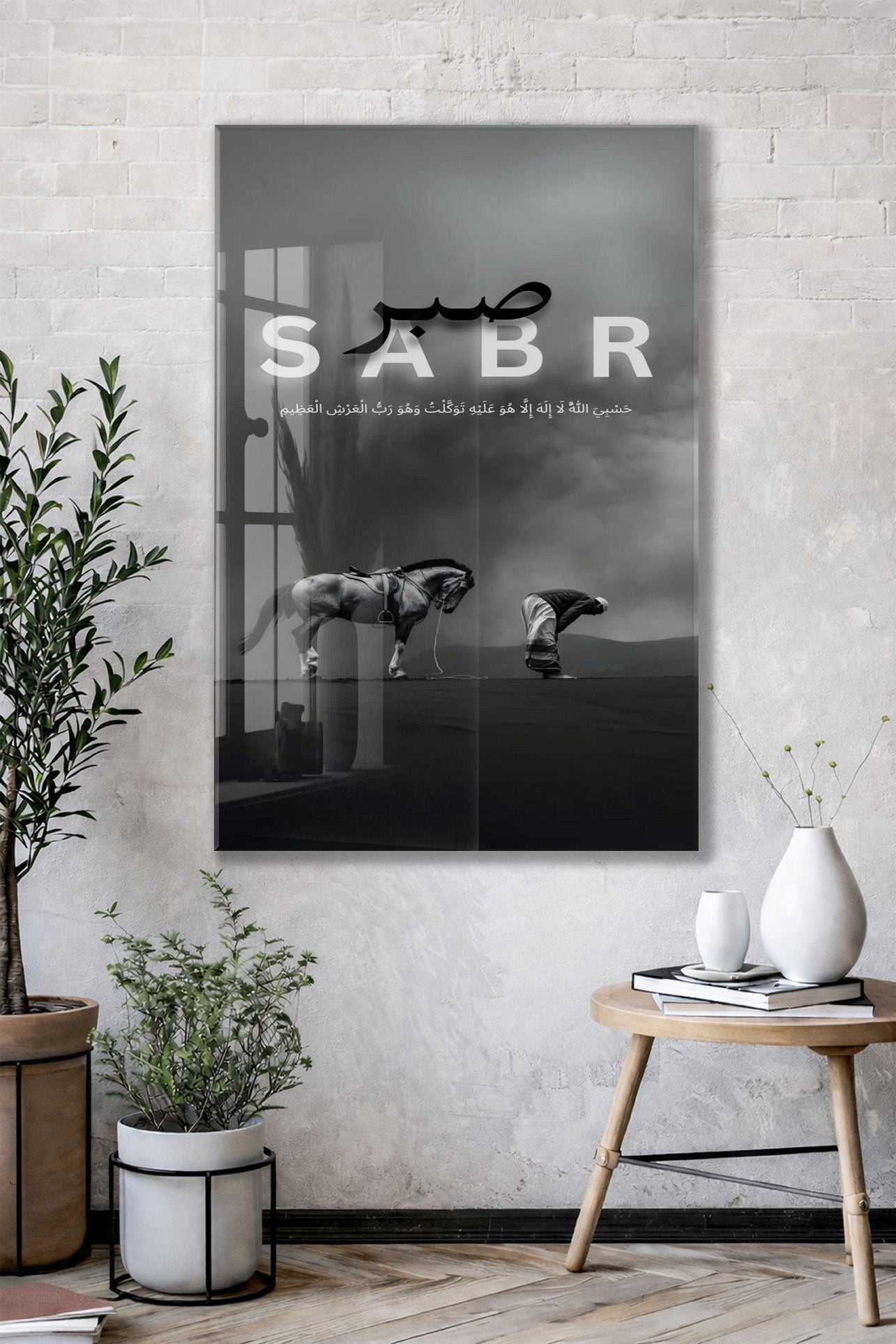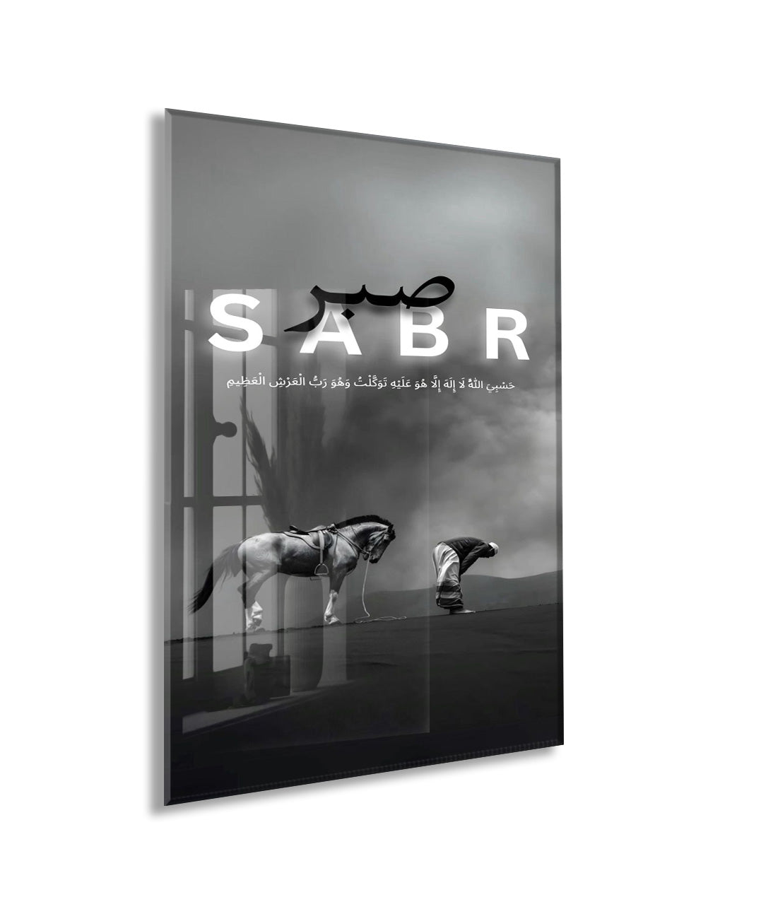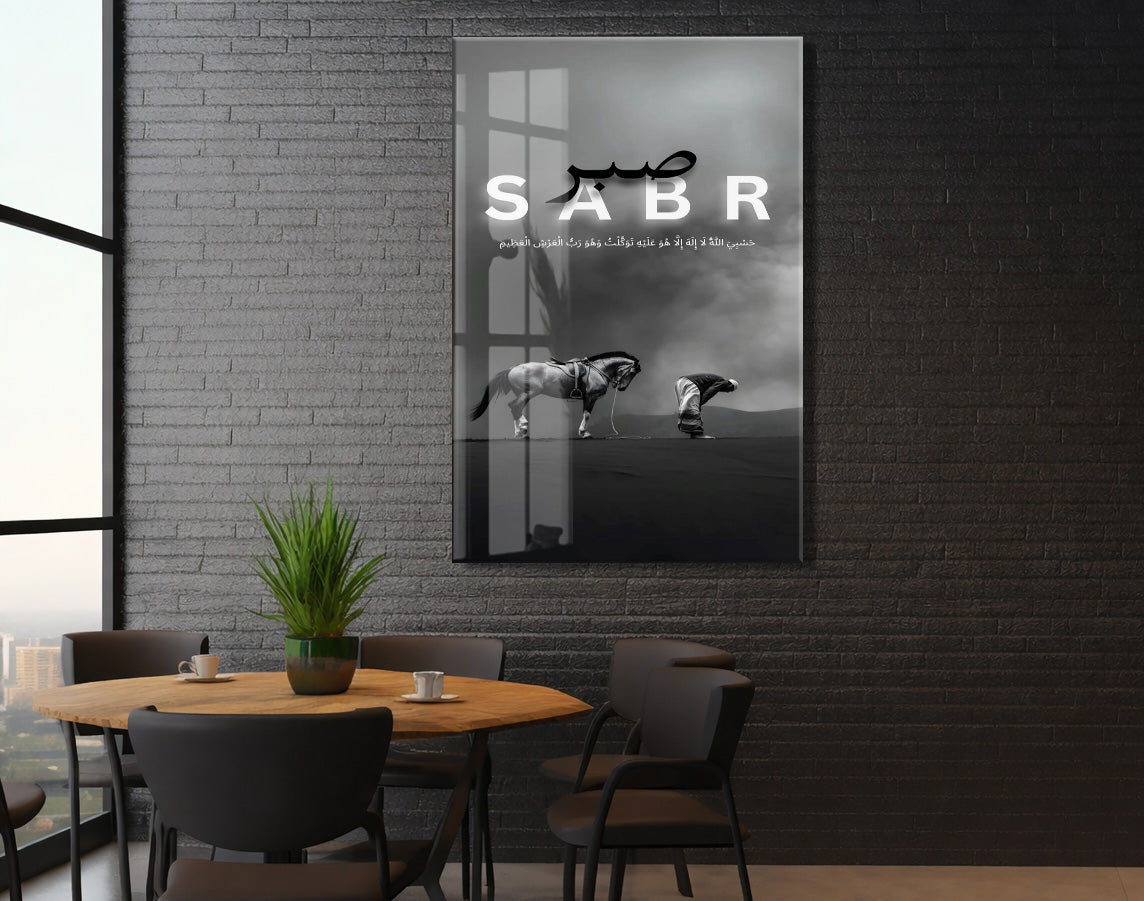 Sabr Yazılı Cam Tablo | Hasbiyallâh Ayetli İslami Cam Duvar Tablosu - PeonyDini137