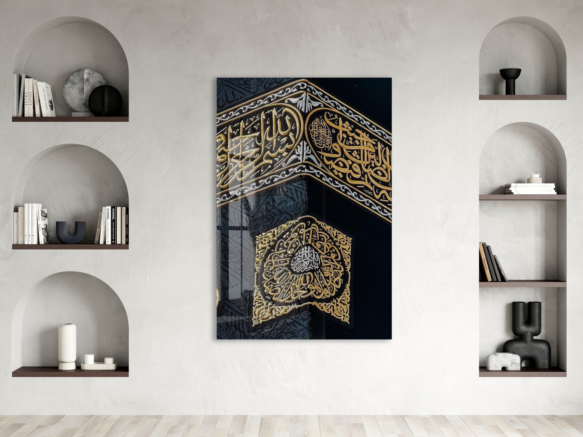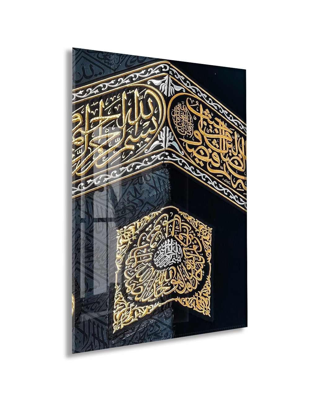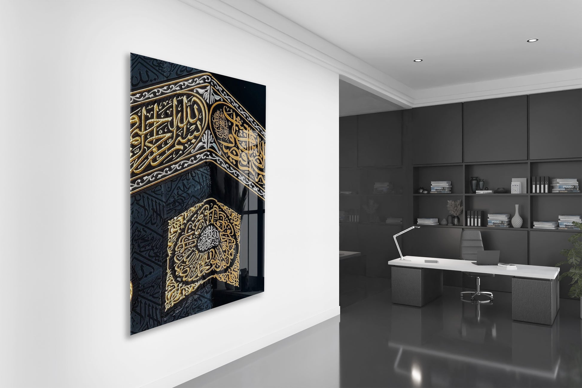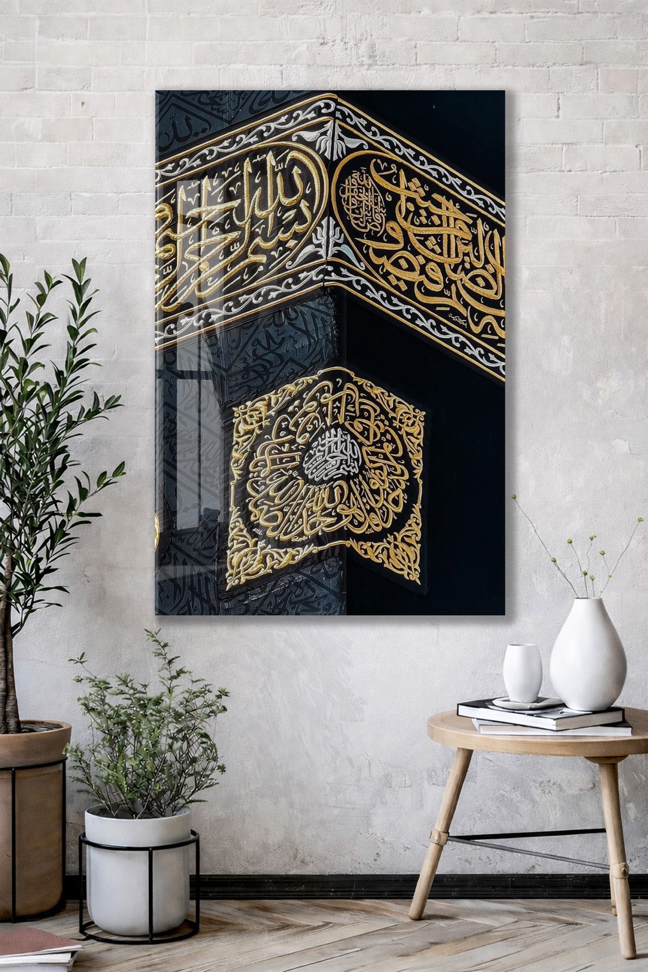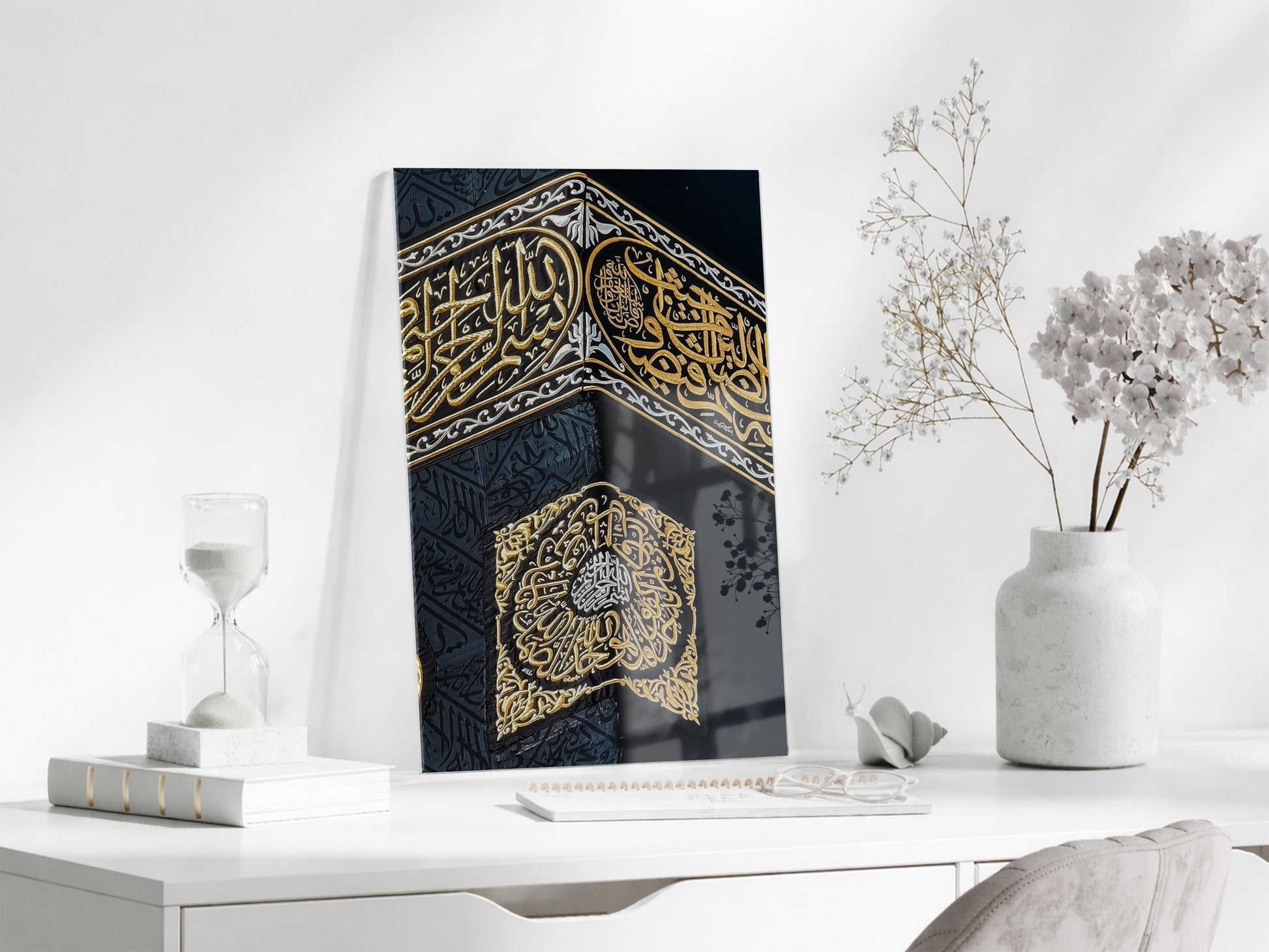 Kâbe Kisvesi Detaylı Cam Tablo – Altın Hat Sanatlı İslami Duvar Dekoru - PeonyDini141