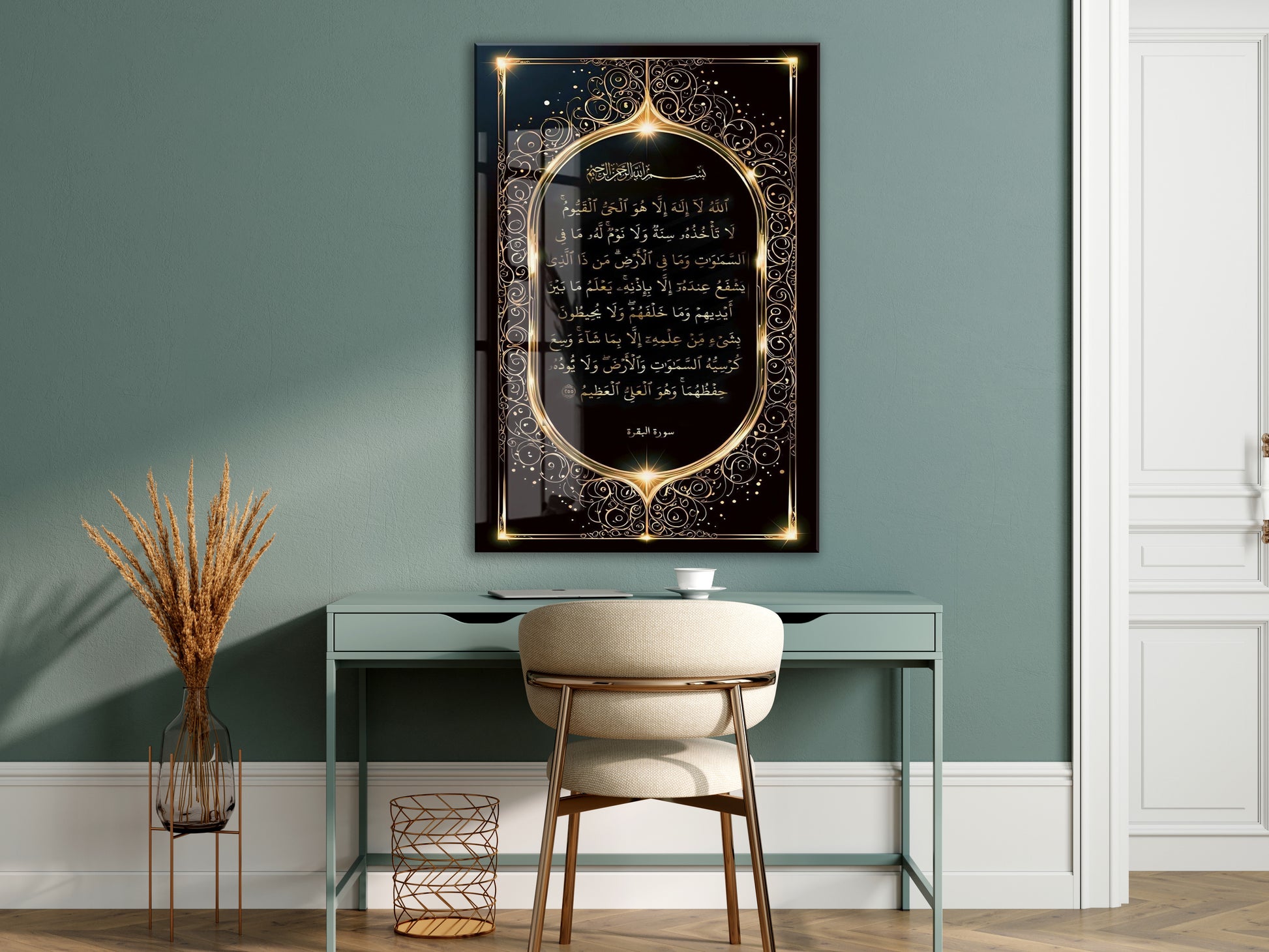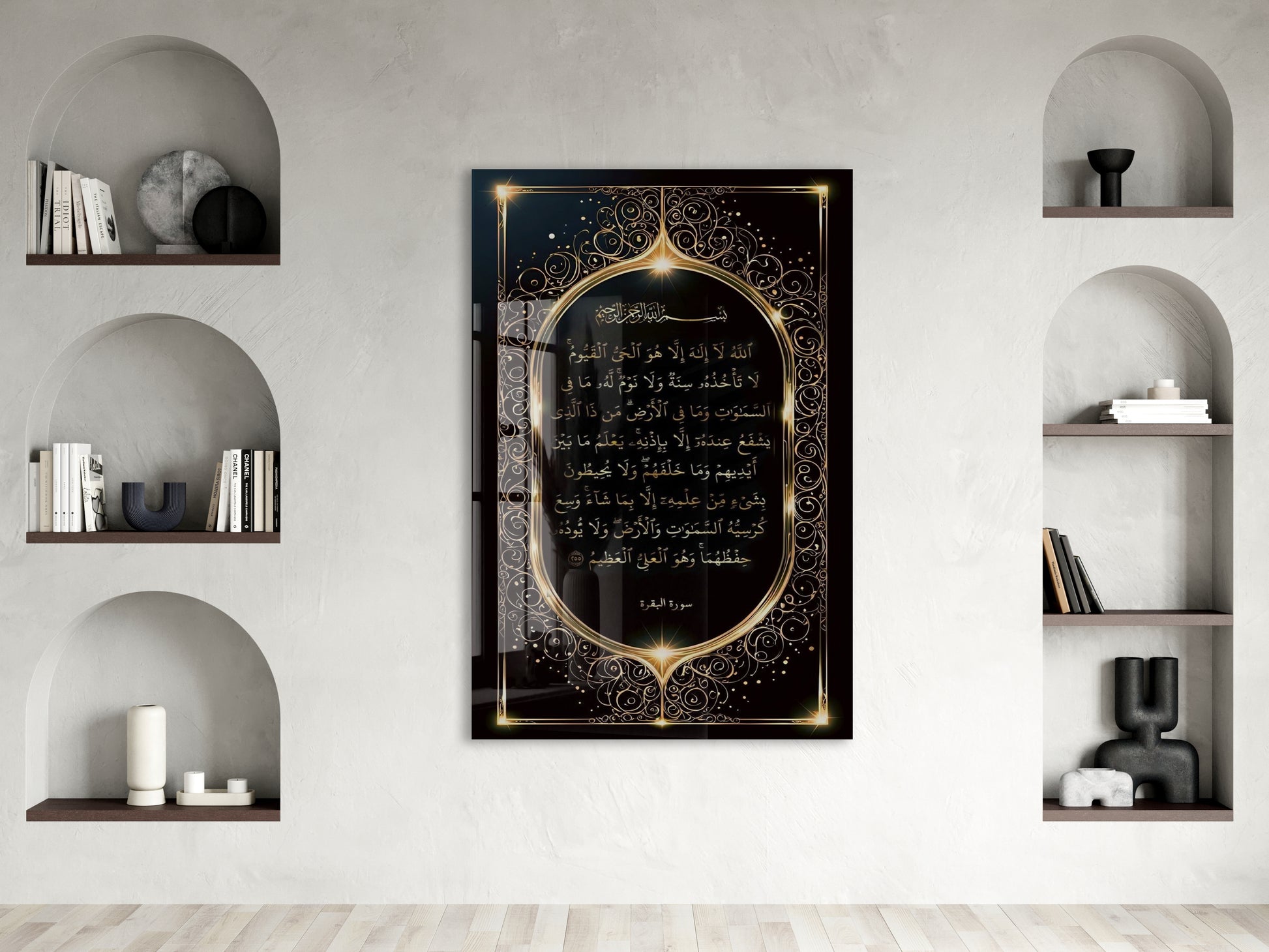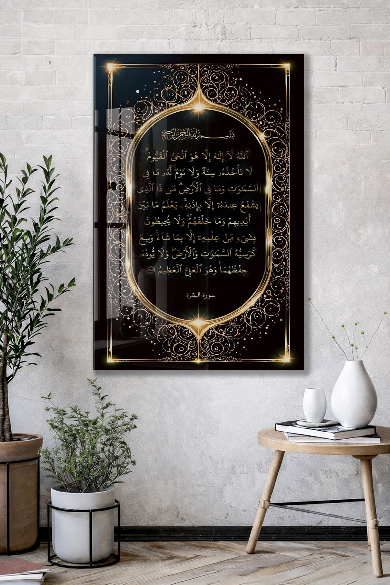 Ayet’el Kürsi Cam Tablo – Bakara 255 Altın Detaylı İslami Duvar Dekoru - PeonyDini148