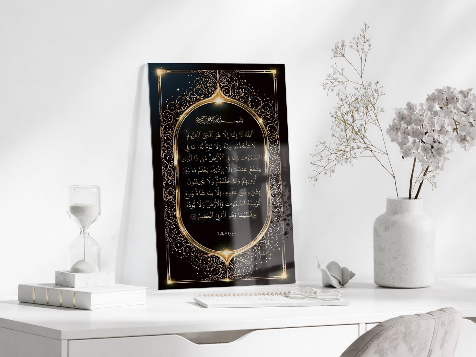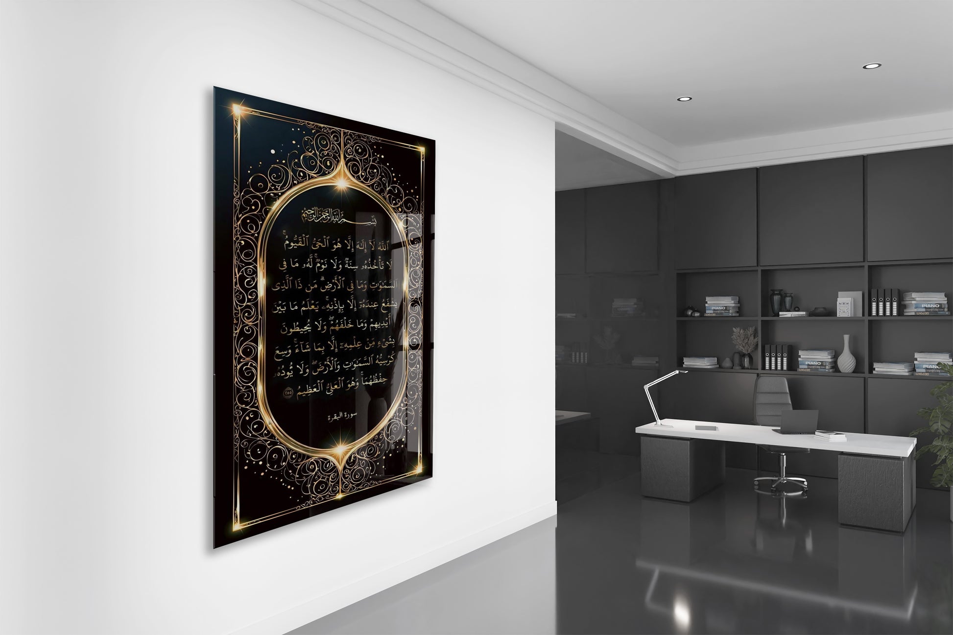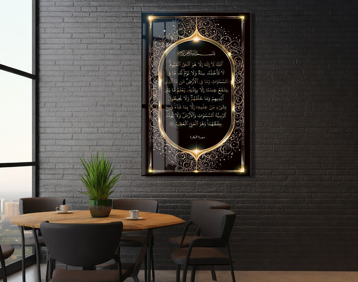 Ayet’el Kürsi Cam Tablo – Bakara 255 Altın Detaylı İslami Duvar Dekoru - PeonyDini148