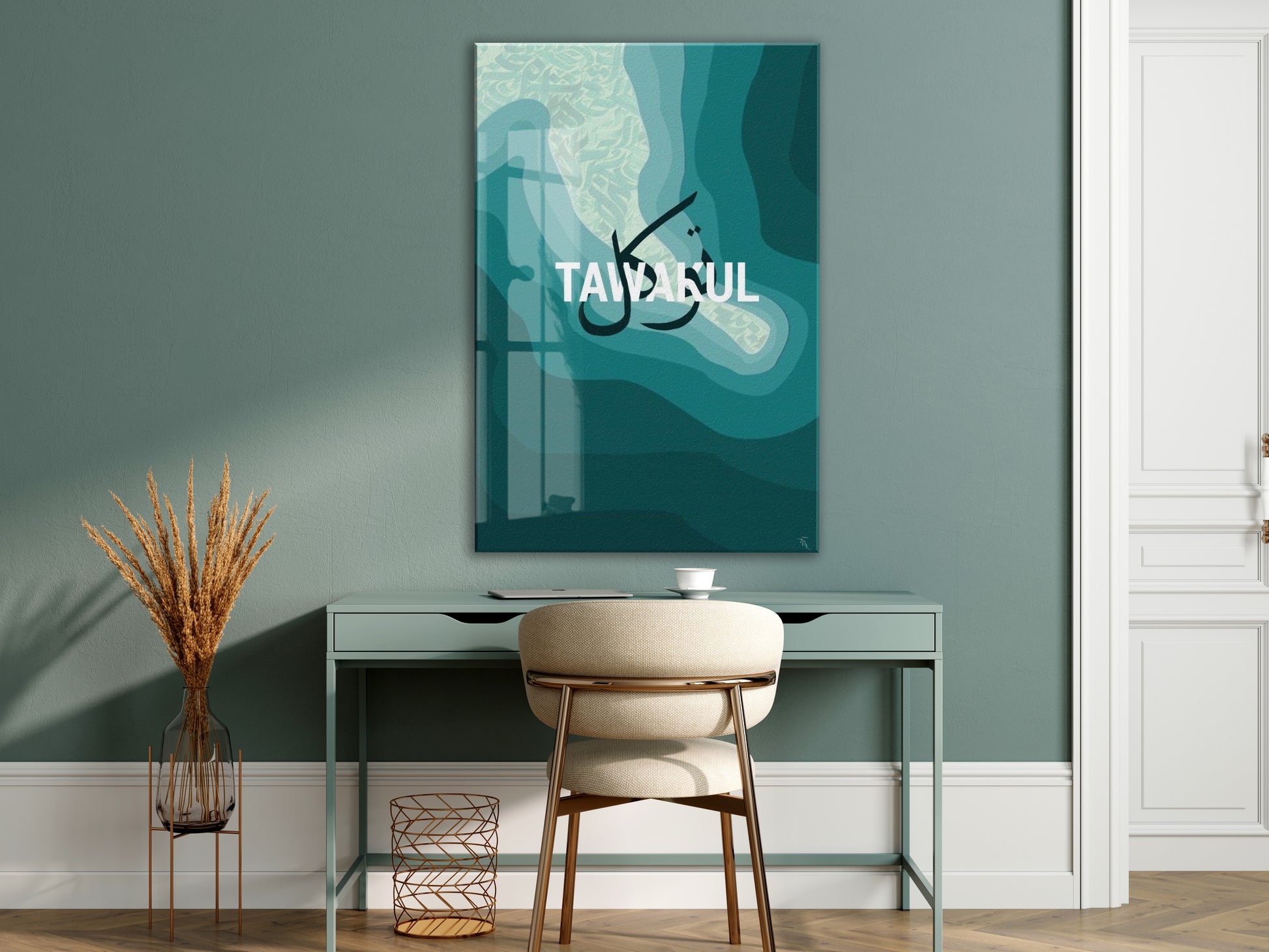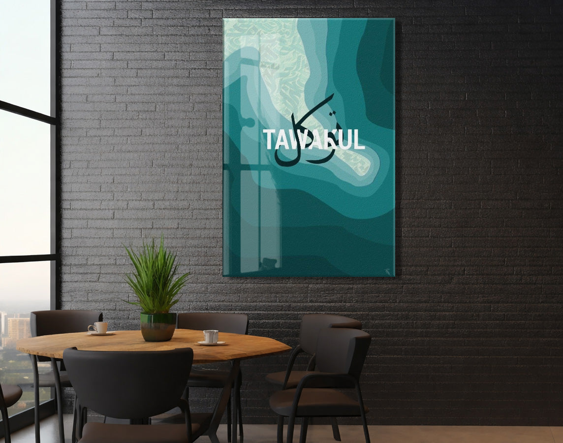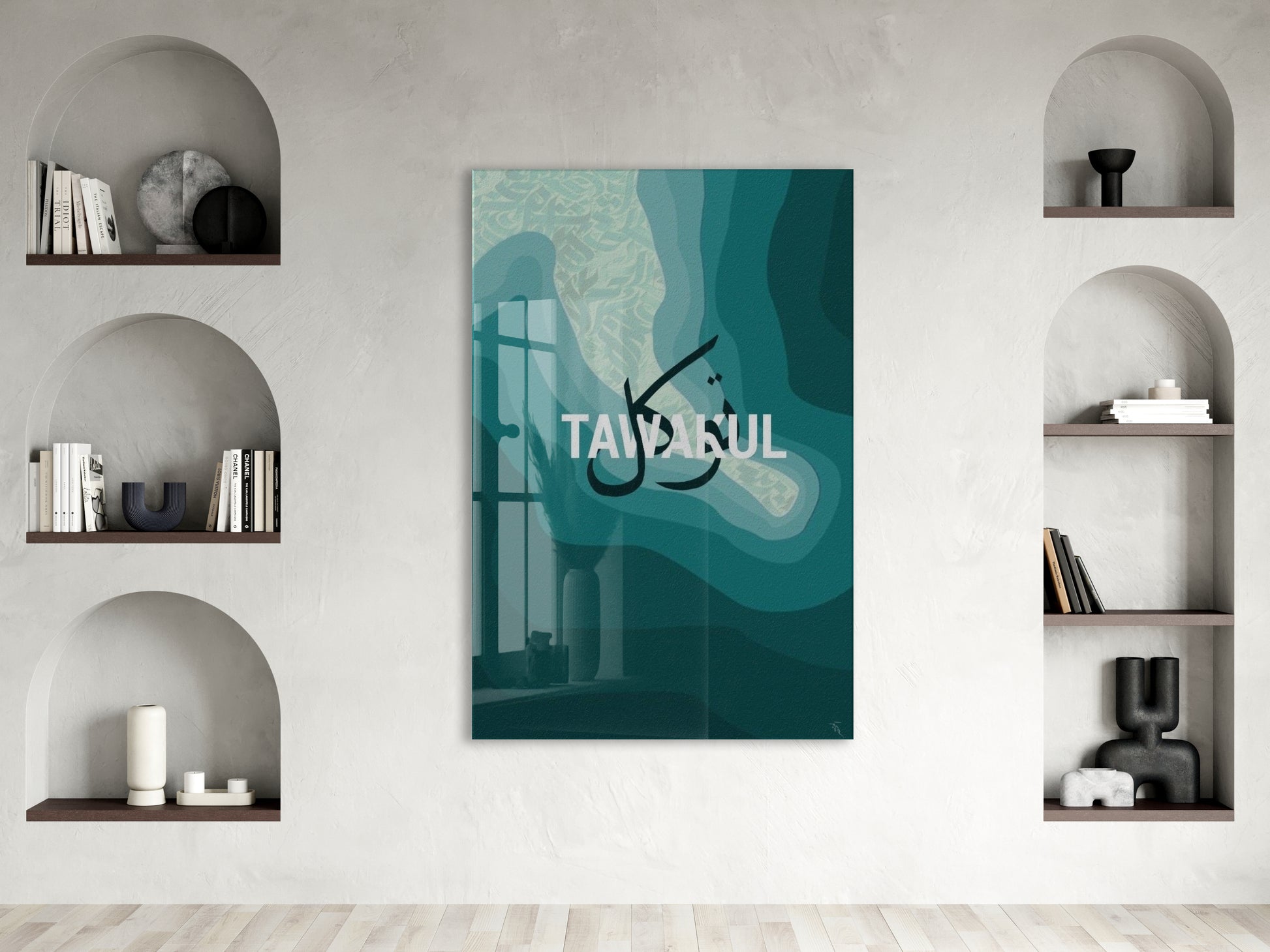 Tevekkül Temalı Minimal Cam Tablo – Turkuaz Duvar Dekoru - PeonyDini154