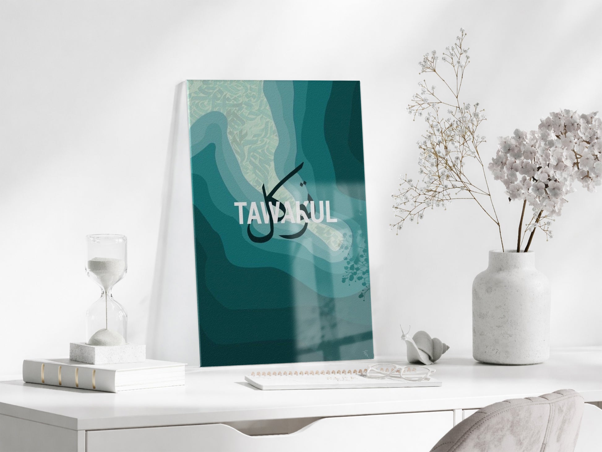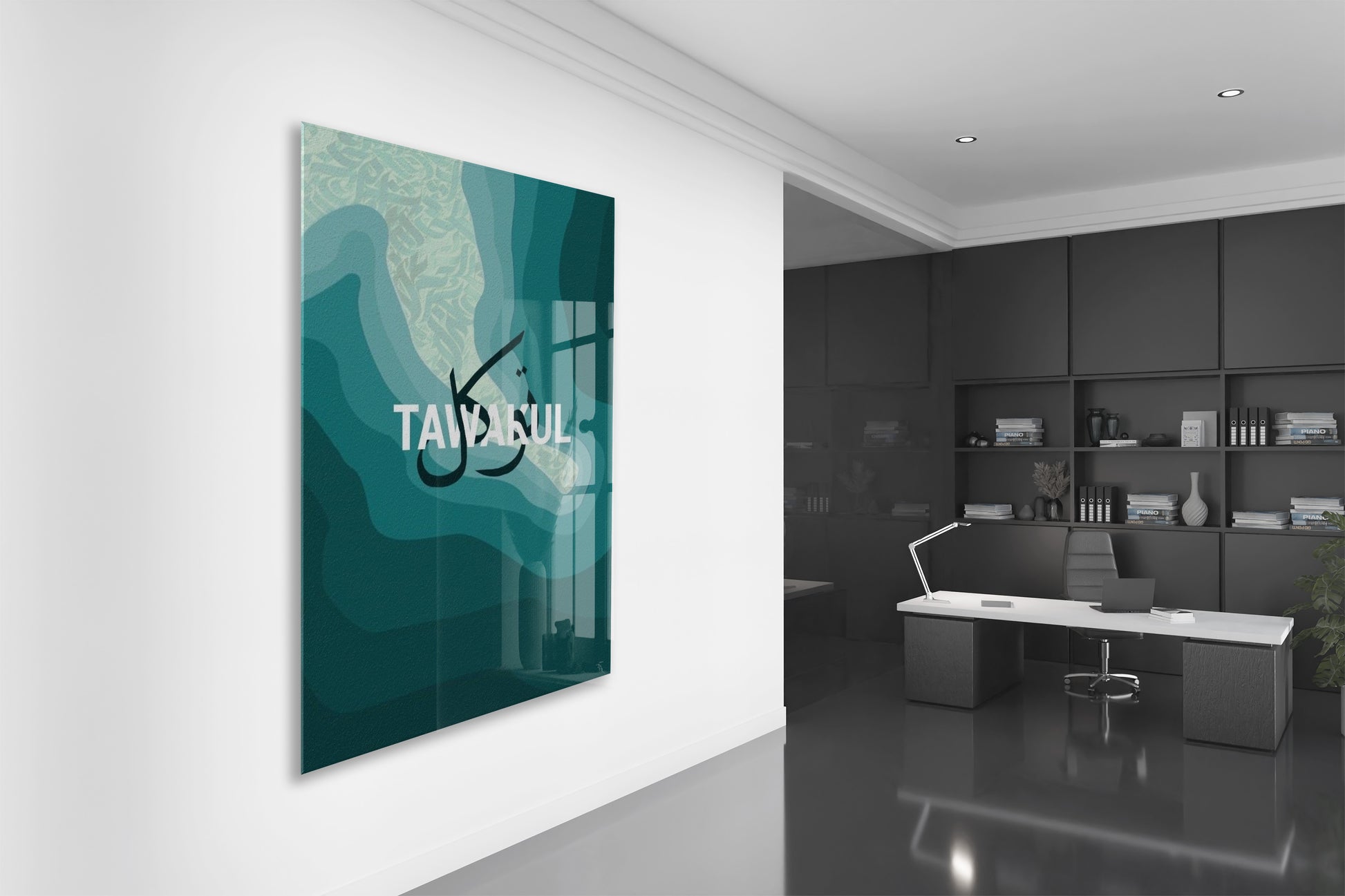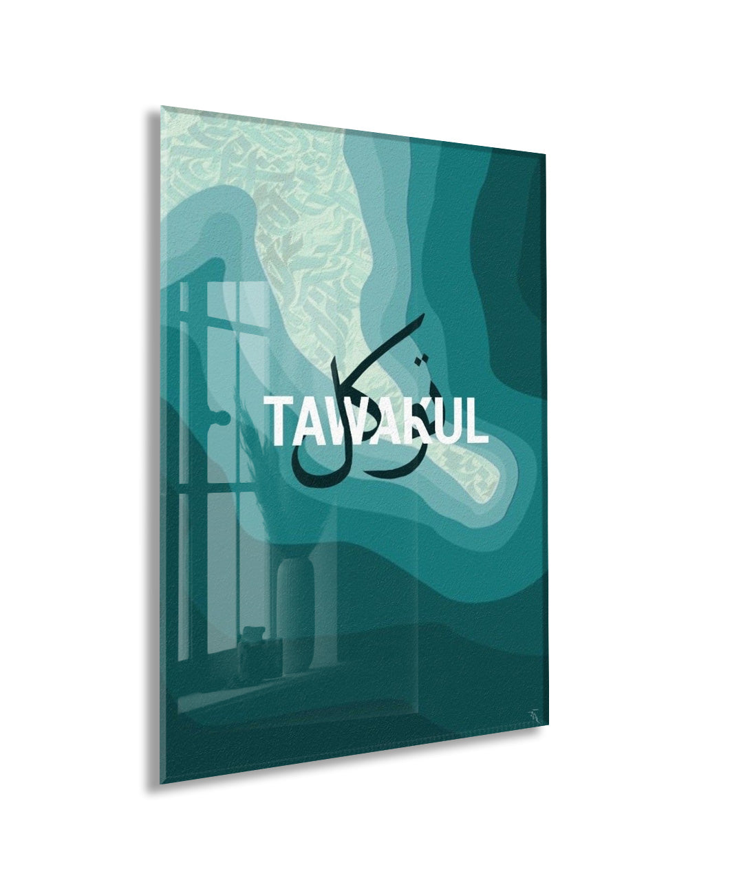 Tevekkül Temalı Minimal Cam Tablo – Turkuaz Duvar Dekoru - PeonyDini154