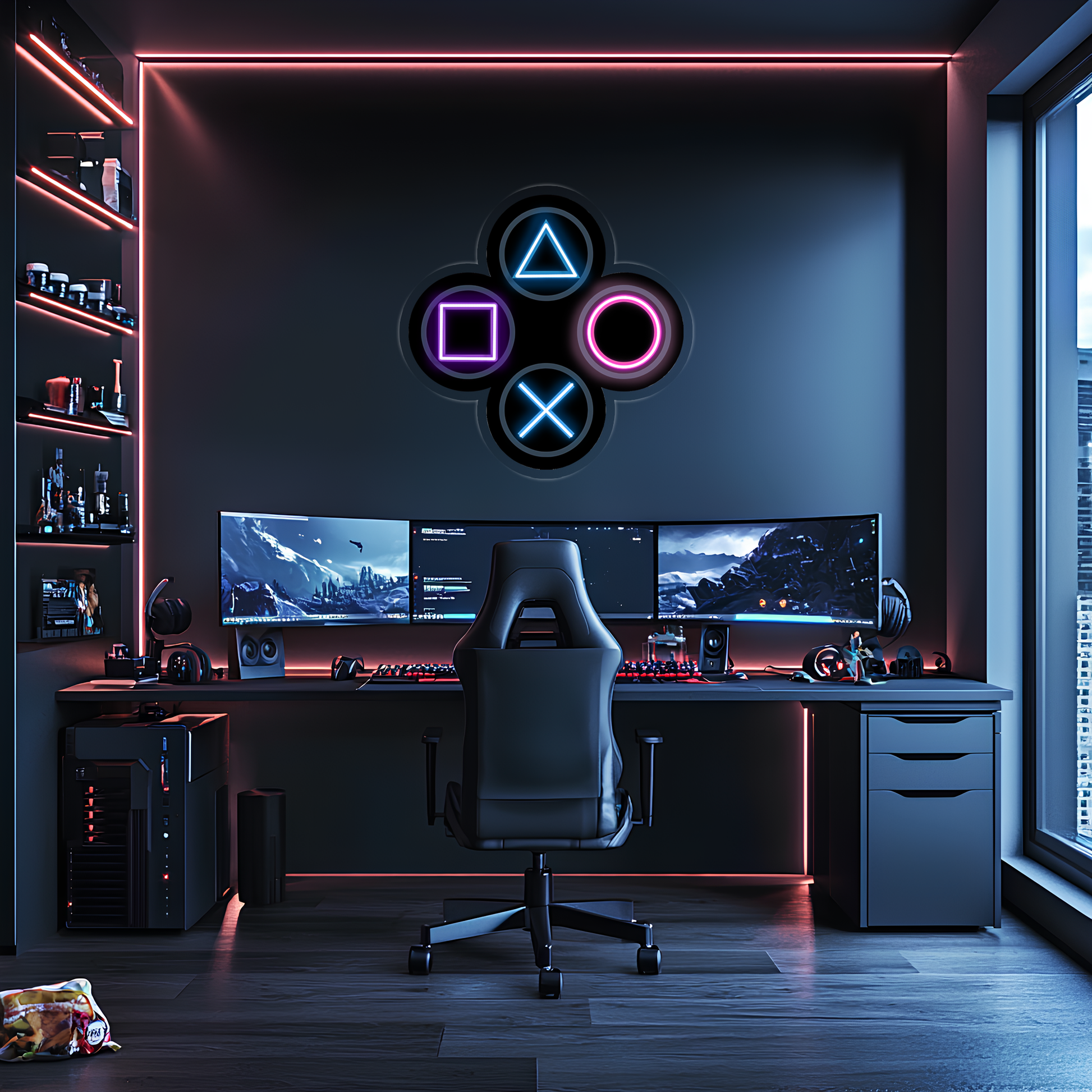 Oyun tutkunları için tasarlanan bu özel Gamer Neon Duvar Dekoru, ikonik oyun konsolu tuş sembollerini modern LED ışıklarla bir araya getiriyor. 🎮