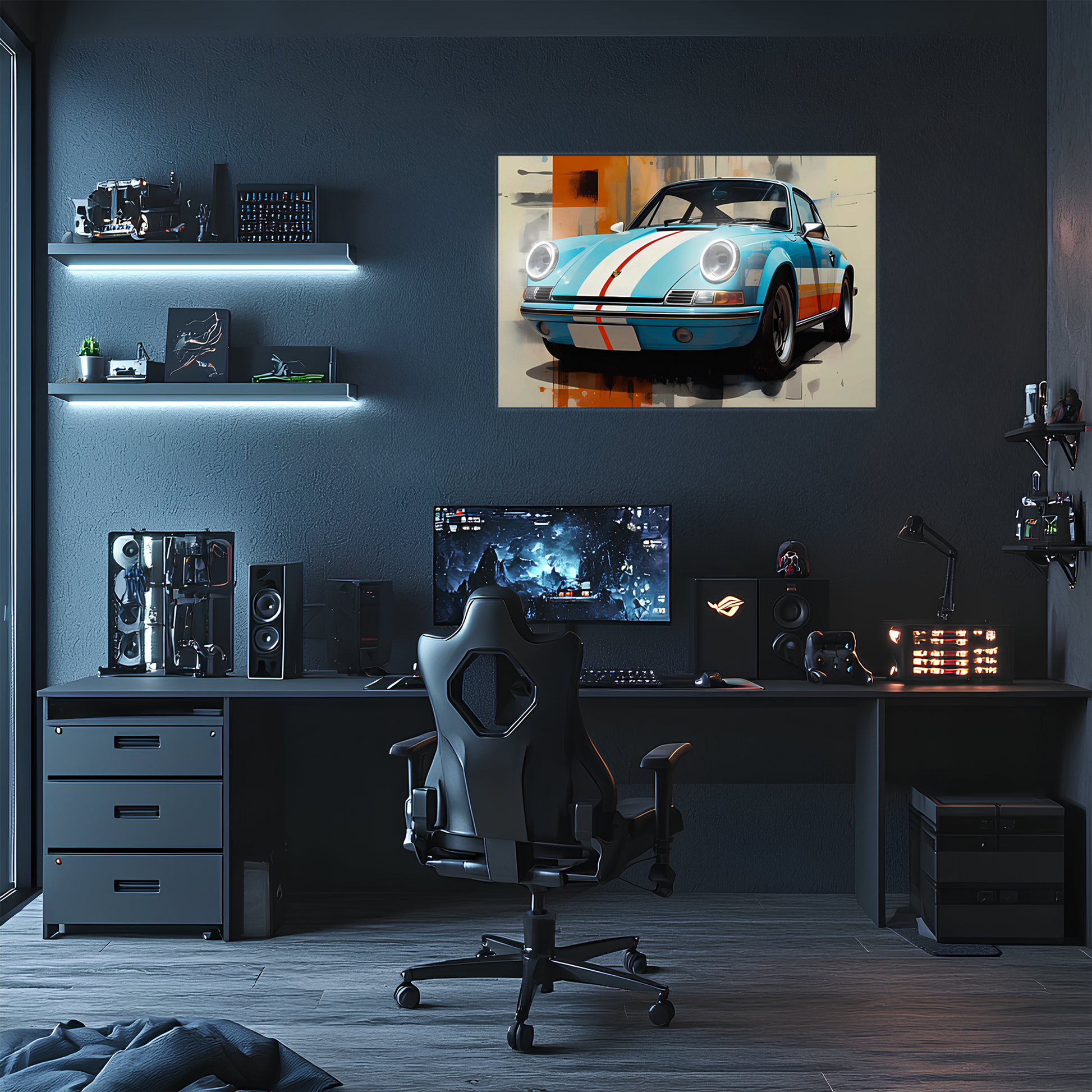Mavi Retro Yarış Araba UV Baskı Neon Duvar Dekoru | Pleksi Işıklı Tablo | Gamer Room Duvar Sanatı