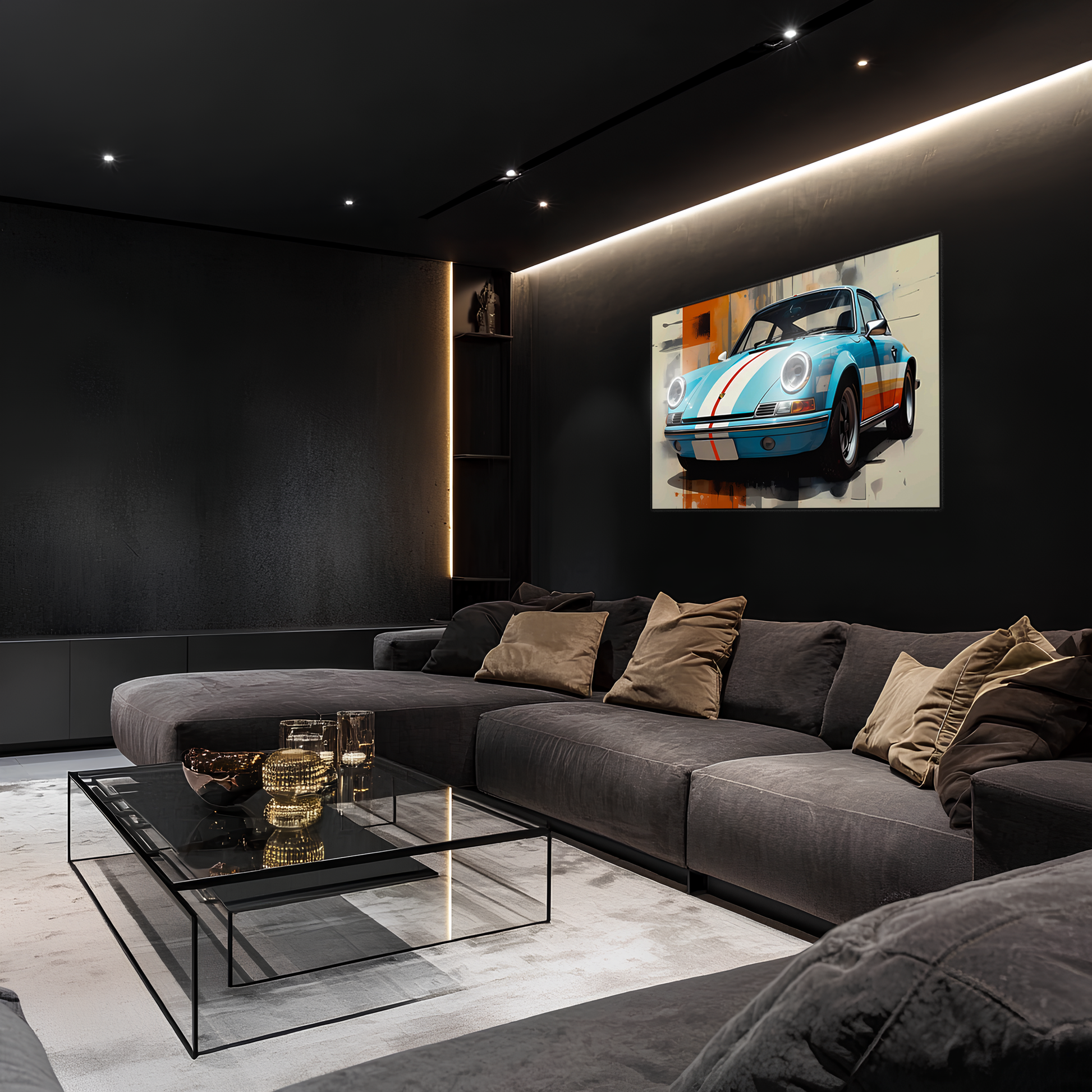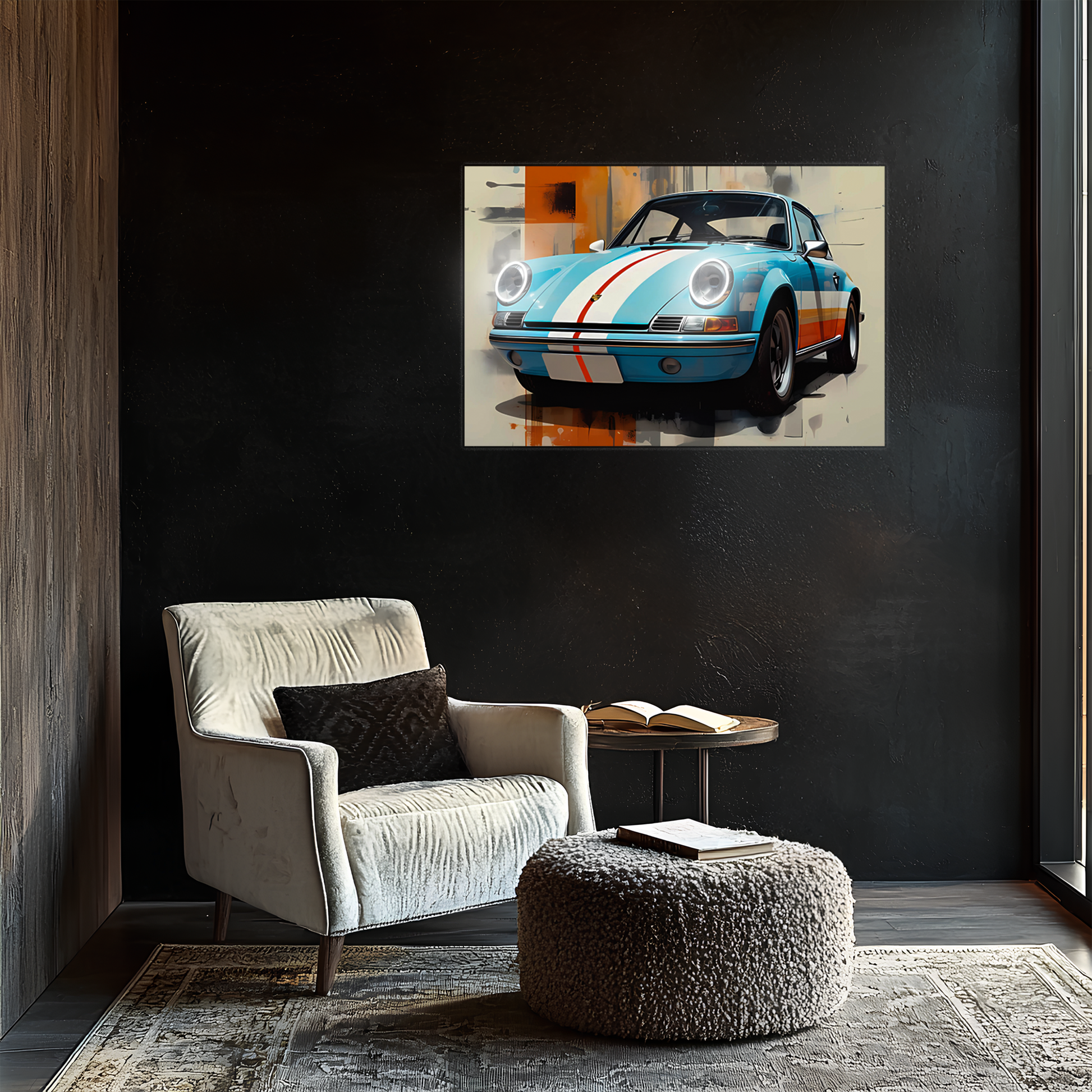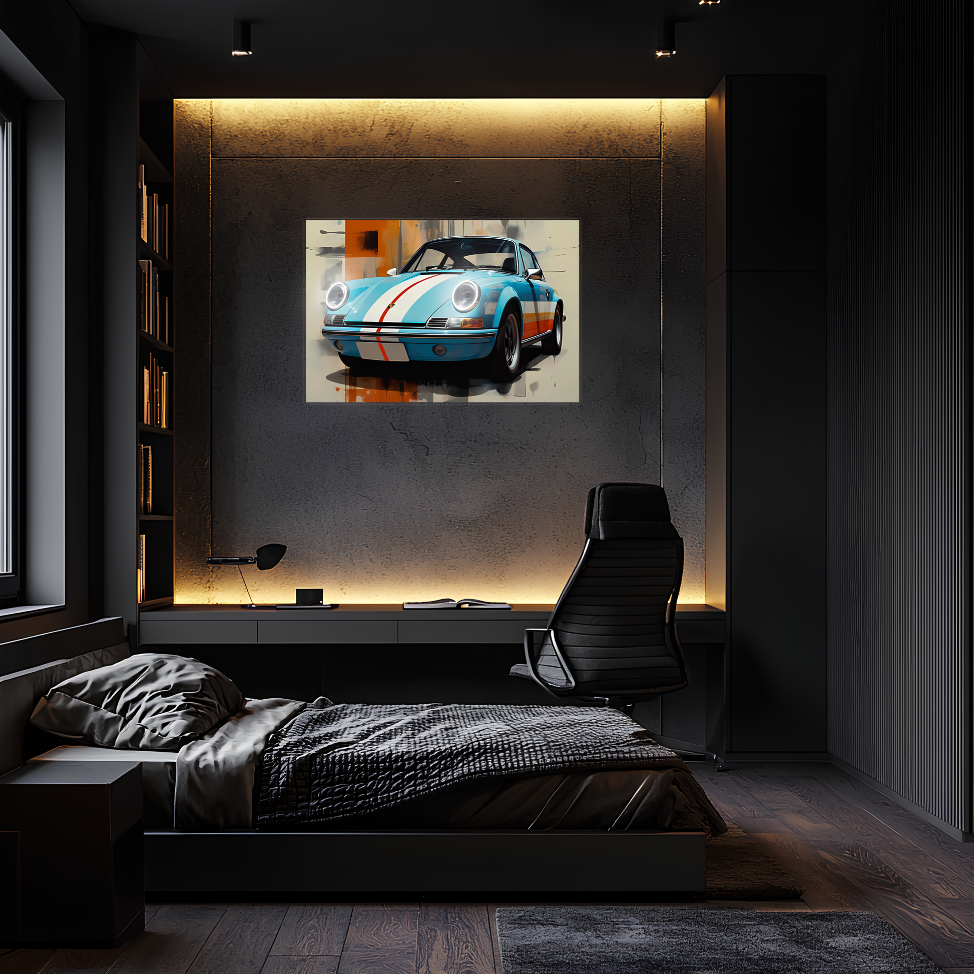 Klasik yarış ruhunu modern tasarımla buluşturan bu mavi retro araba temalı UV baskı duvar dekoru, 5 mm kalınlığındaki dayanıklı pleksi üzerine yüksek çözünürlüklü baskı ile üretilmiştir.