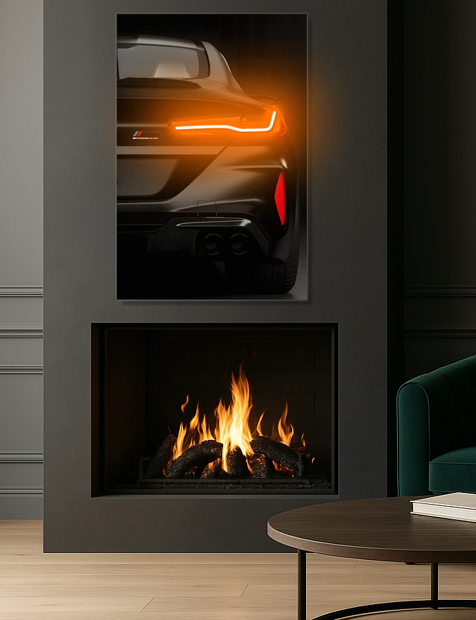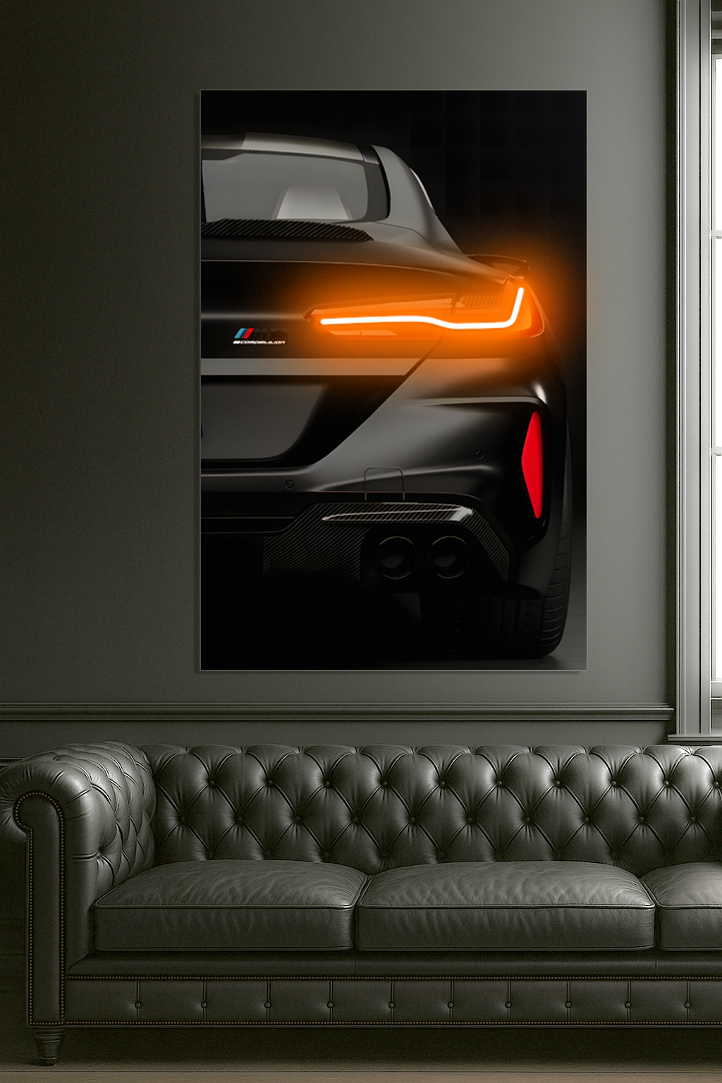Gücün, zarafetin ve mühendisliğin birleştiği bu siyah spor otomobil UV baskı tablo, LED aydınlatma efektiyle otomobil tutkusunu duvarlarınıza taşıyor.