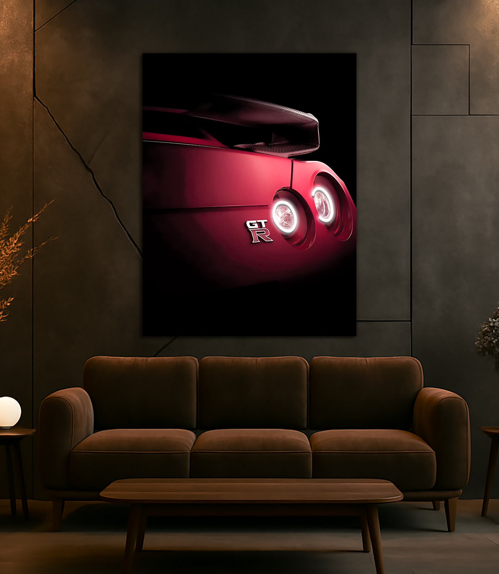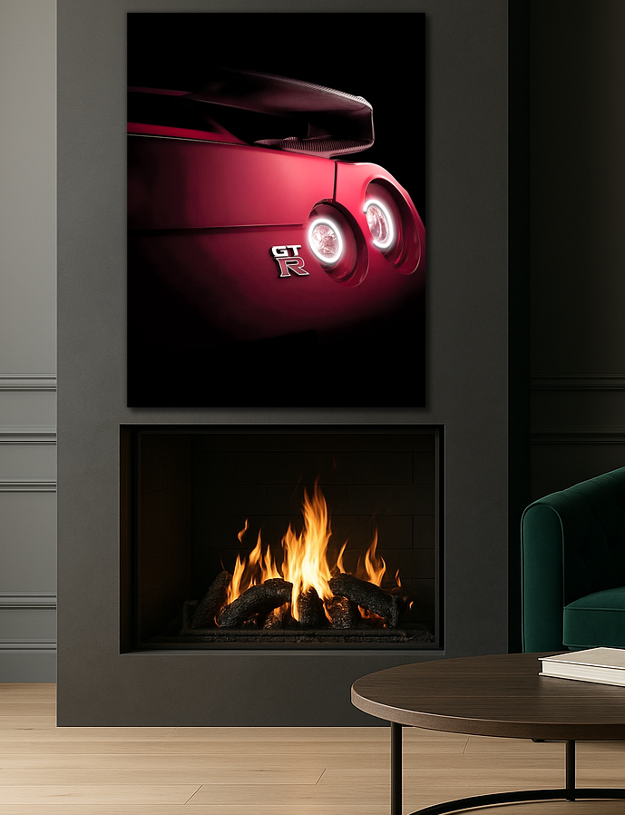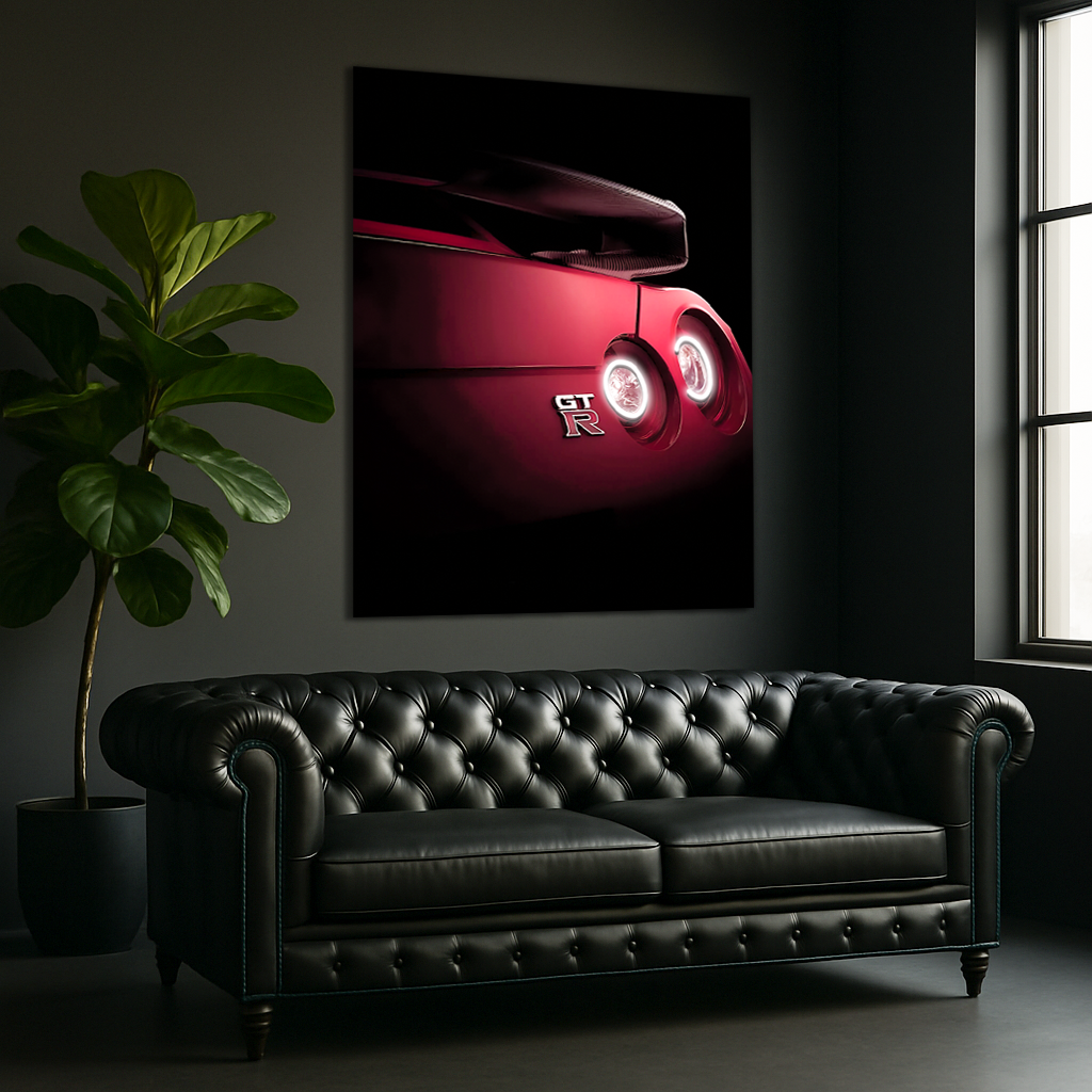 Bu kırmızı spor otomobil UV baskı neon tablo, arka stop farlarında yer alan beyaz LED hatlarıyla duvarınıza dinamik bir enerji kazandırır.